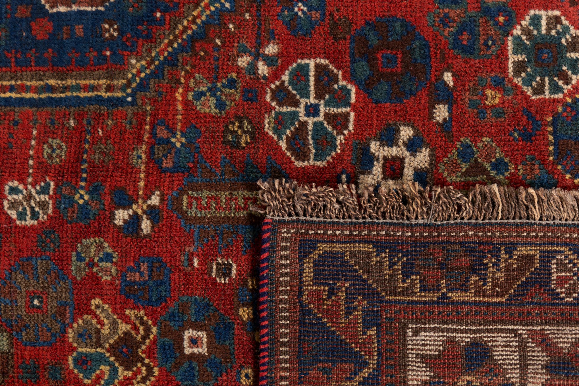Esta alfombra pertenece a alfombras de pueblos y nómadas de Irán, antiguamente Persia. Este tipo de alfombra se anuda a mano en ciudades y pueblos más pequeños según la antigua tradición. Incluso los nómadas siguen anudando alfombras persas al aire libre. Las alfombras están anudadas sin un patrón y completamente desde la cabeza. Se caracterizan por los ornamentos clásicos, que están dispuestos en patrones rectos y geométricos. Gracias a su origen cultural-tradicional, estas alfombras tienen un carácter único que encarna la antigua Persia.