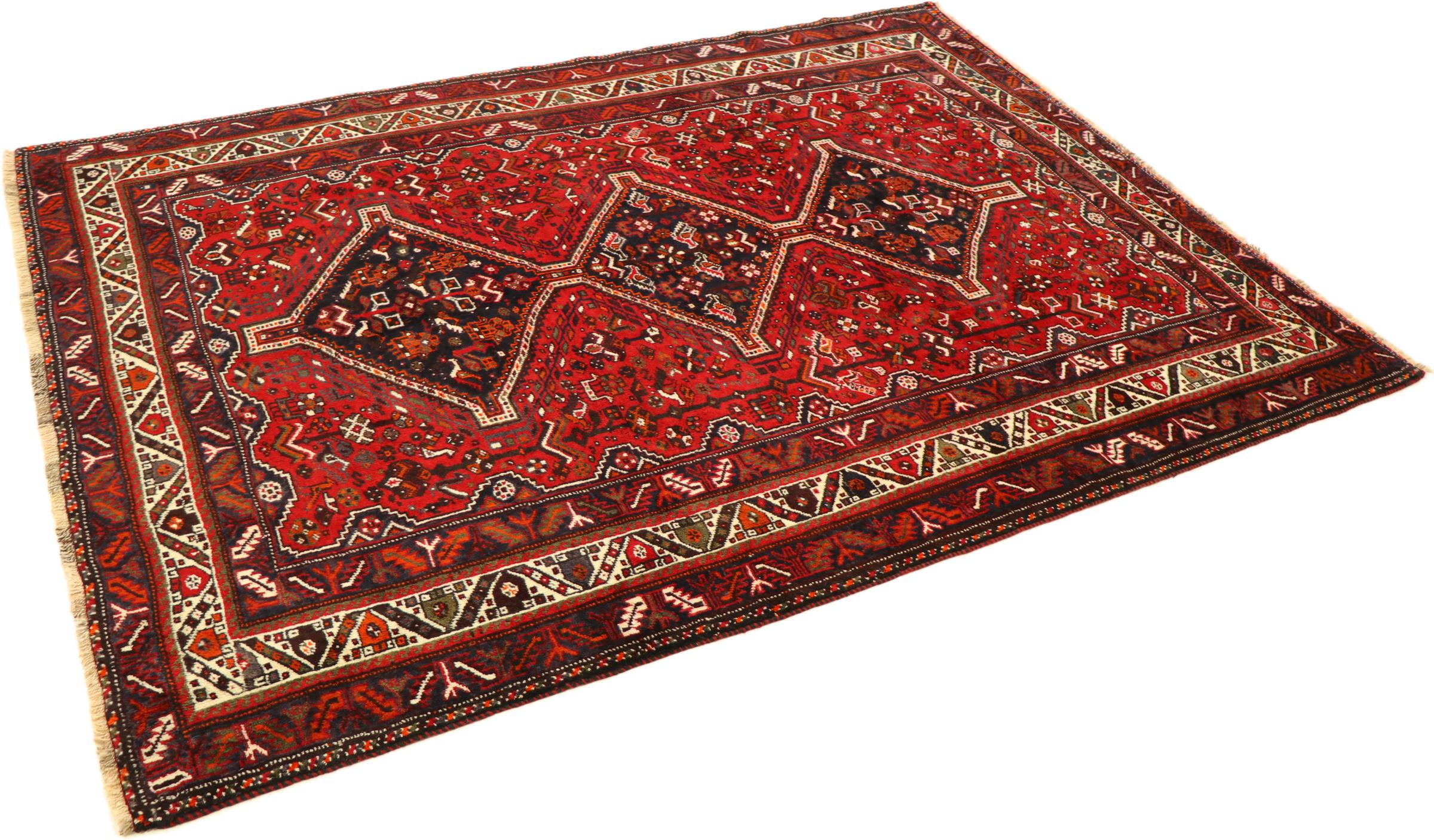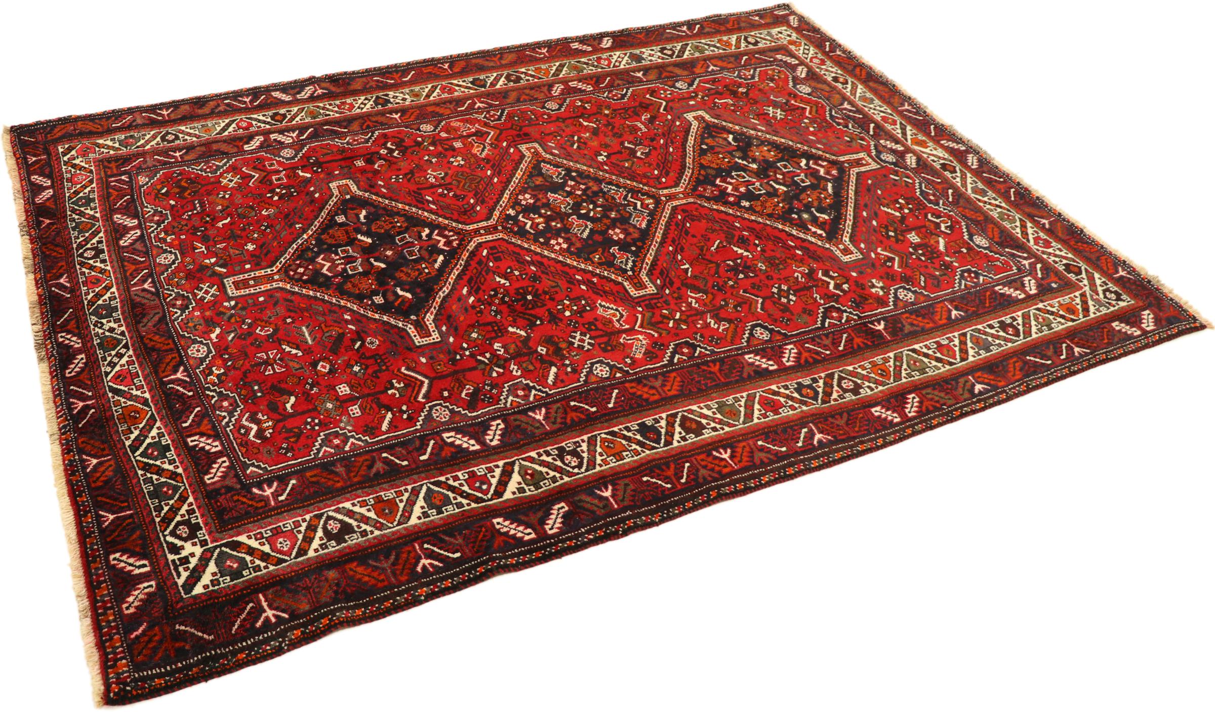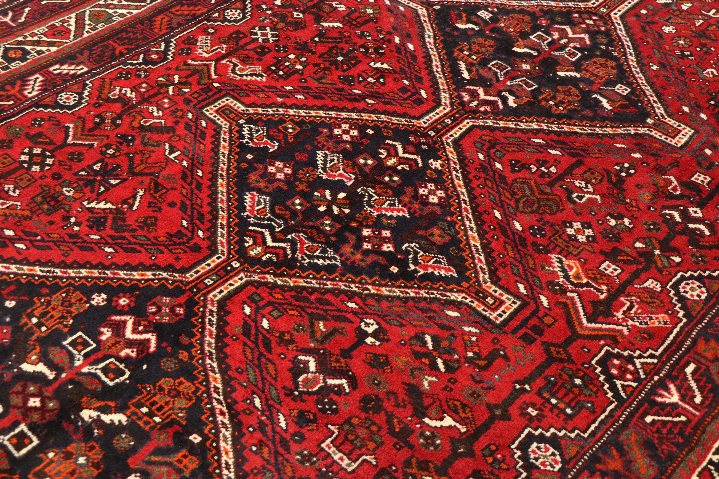Esta ghashghai es una auténtica maravilla. Sus colores y diseños reflejan la vida de los nómadas Ghashghai de Irán. Estas tribus nómadas viven principalmente en los alrededores de la ciudad de Shiraz. Deje que un pedazo de la antigua cultura persa se traslade a sus propias cuatro paredes.