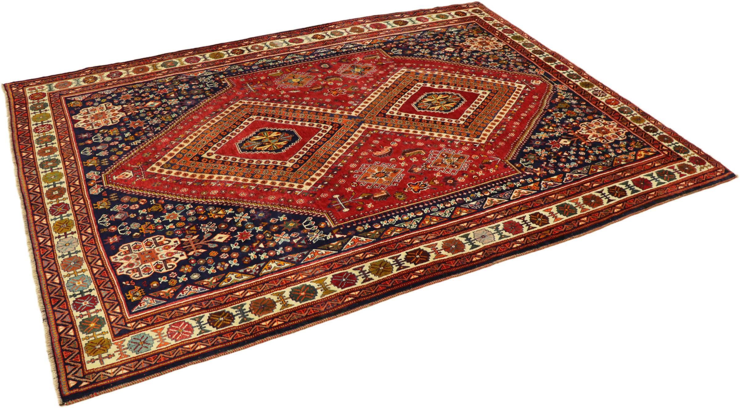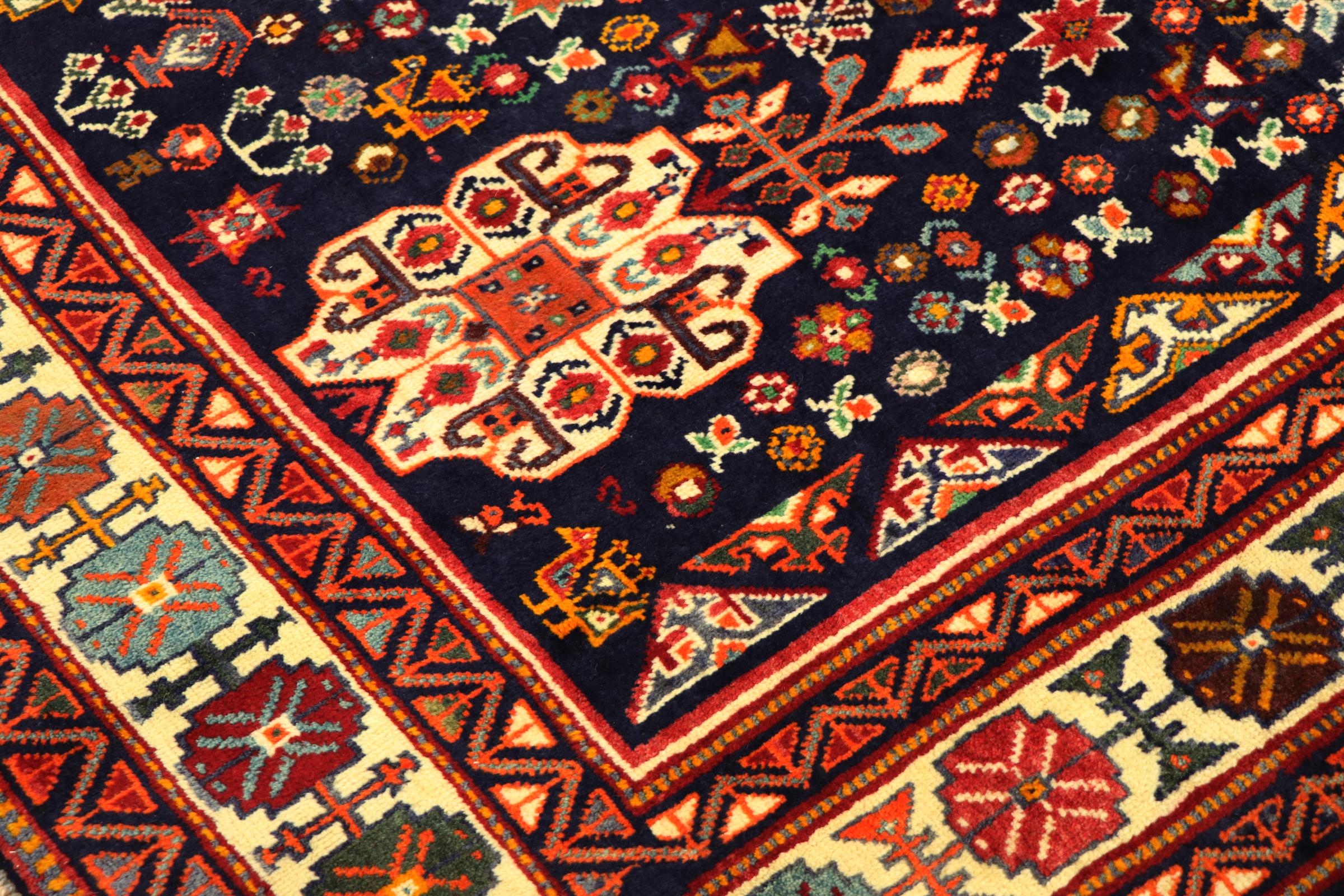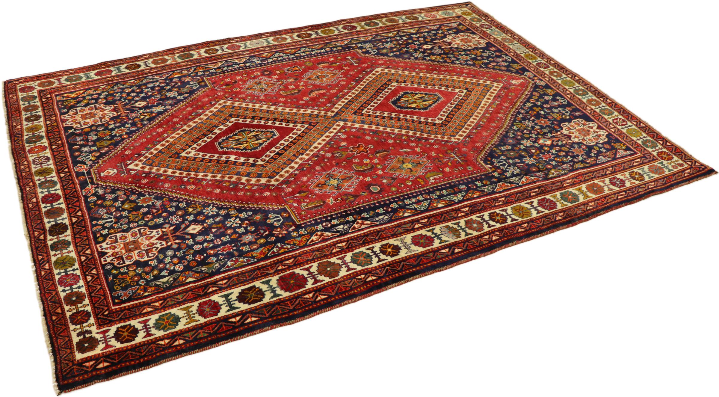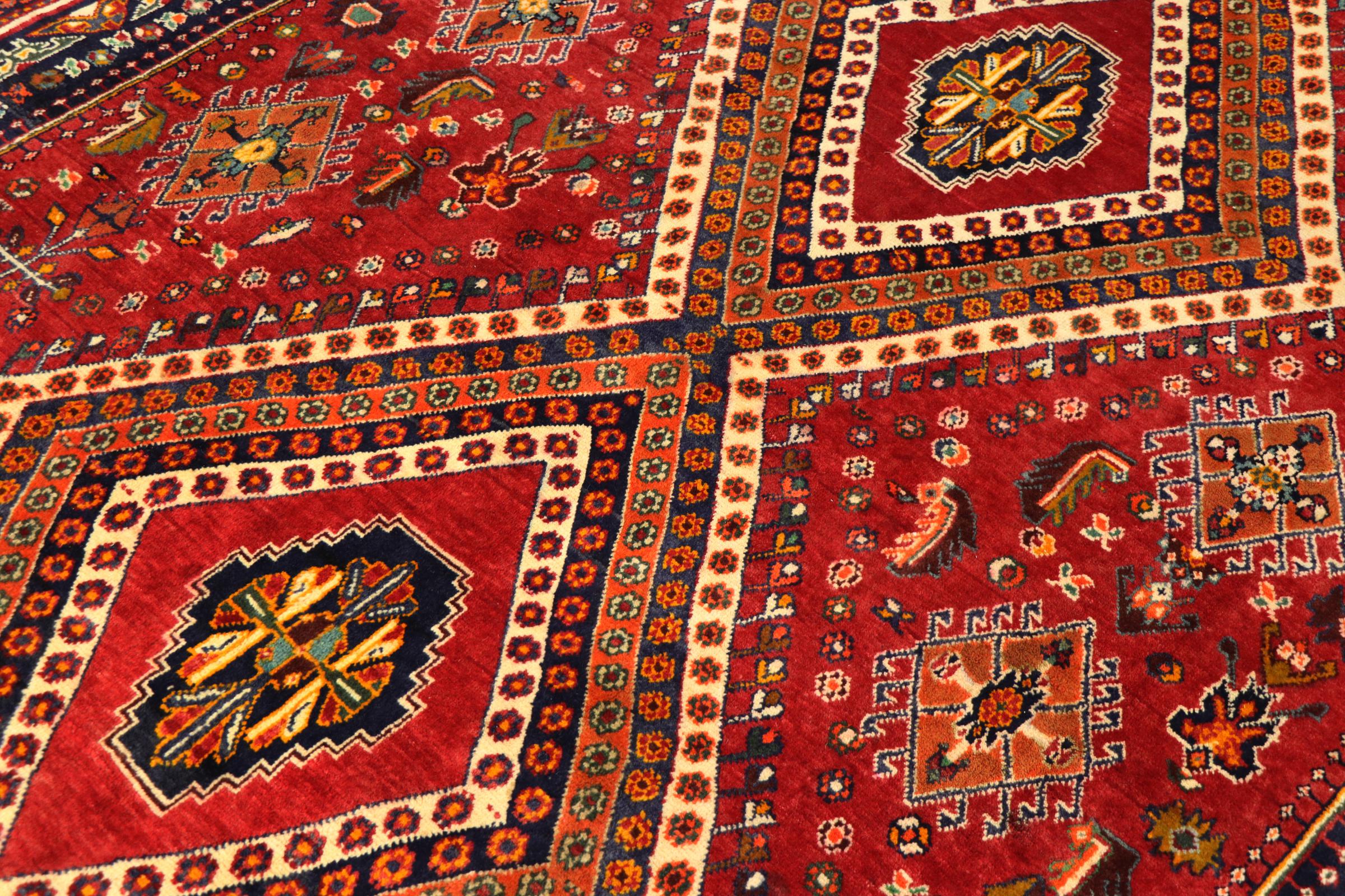 Esta ghashghai es una auténtica maravilla. Sus colores y diseños reflejan la vida de los nómadas Ghashghai de Irán. Estas tribus nómadas viven principalmente en los alrededores de la ciudad de Shiraz. Deje que un pedazo de la antigua cultura persa se traslade a sus propias cuatro paredes.