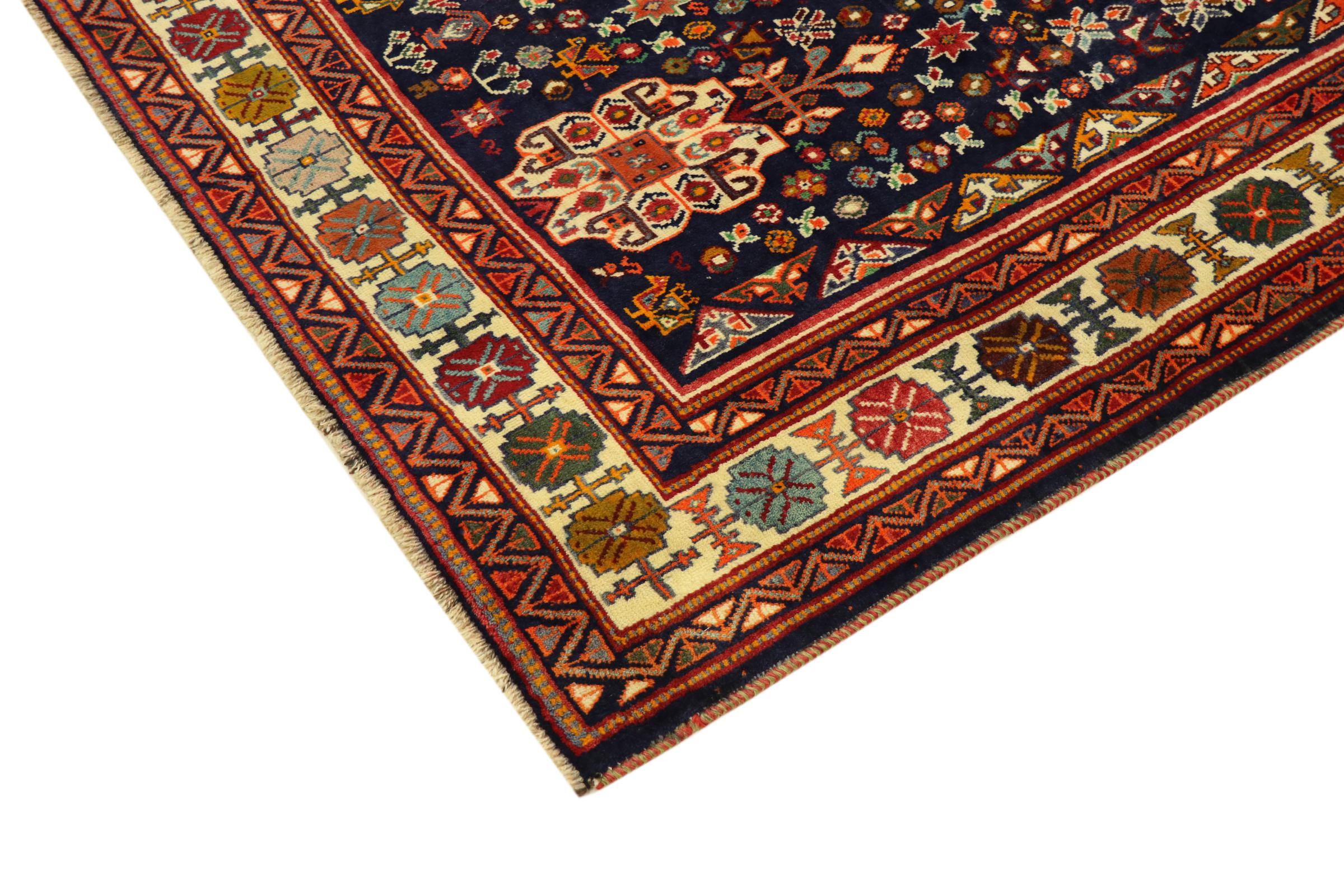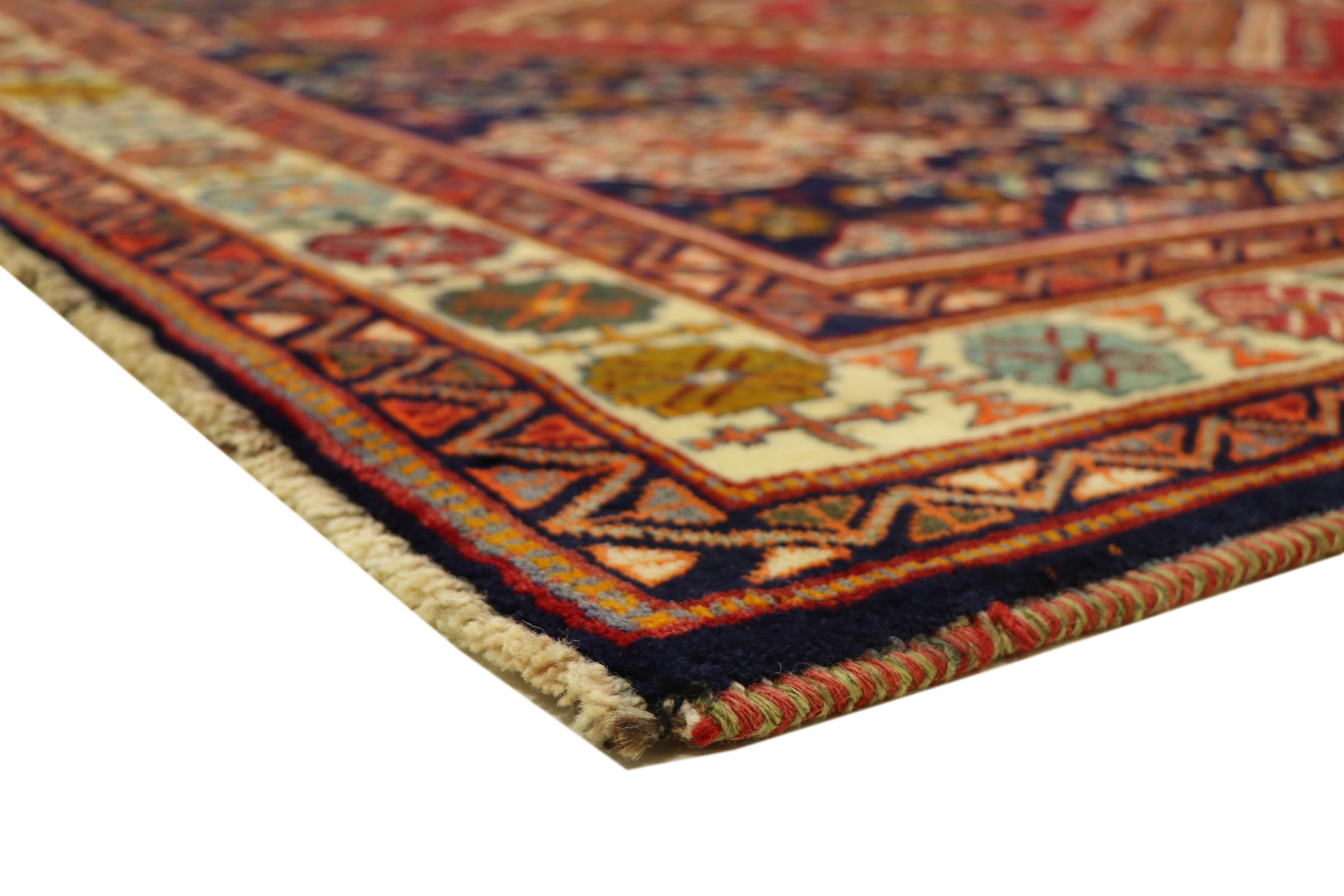 Esta alfombra pertenece a alfombras de pueblos y nómadas de Irán, antiguamente Persia. Este tipo de alfombra se anuda a mano en ciudades y pueblos más pequeños según la antigua tradición. Incluso los nómadas siguen anudando alfombras persas al aire libre. Las alfombras están anudadas sin un patrón y completamente desde la cabeza. Se caracterizan por los ornamentos clásicos, que están dispuestos en patrones rectos y geométricos. Gracias a su origen cultural-tradicional, estas alfombras tienen un carácter único que encarna la antigua Persia.