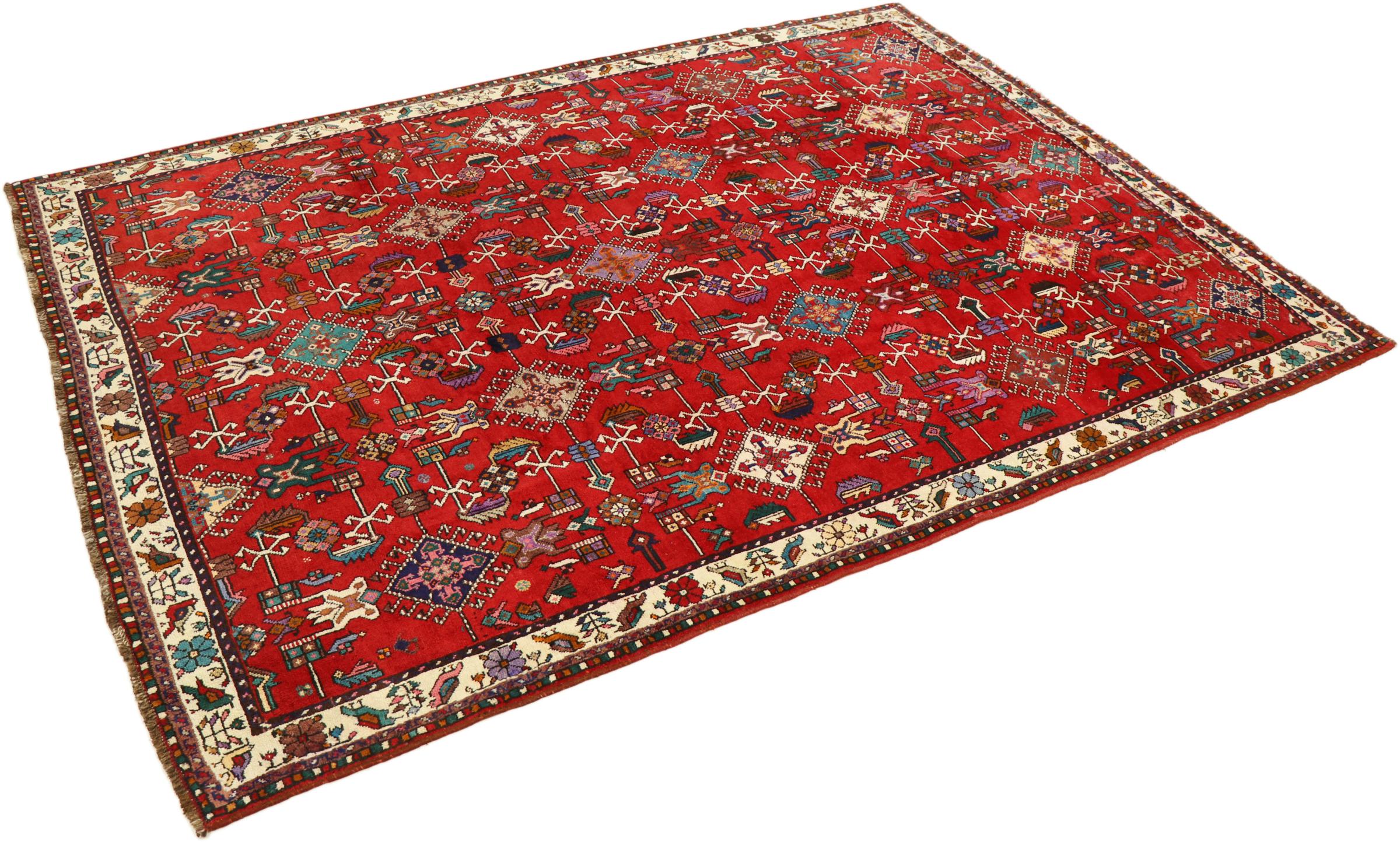 Esta ghashghai es una auténtica maravilla. Sus colores y diseños reflejan la vida de los nómadas Ghashghai de Irán. Estas tribus nómadas viven principalmente en los alrededores de la ciudad de Shiraz. Deje que un pedazo de la antigua cultura persa se traslade a sus propias cuatro paredes.
