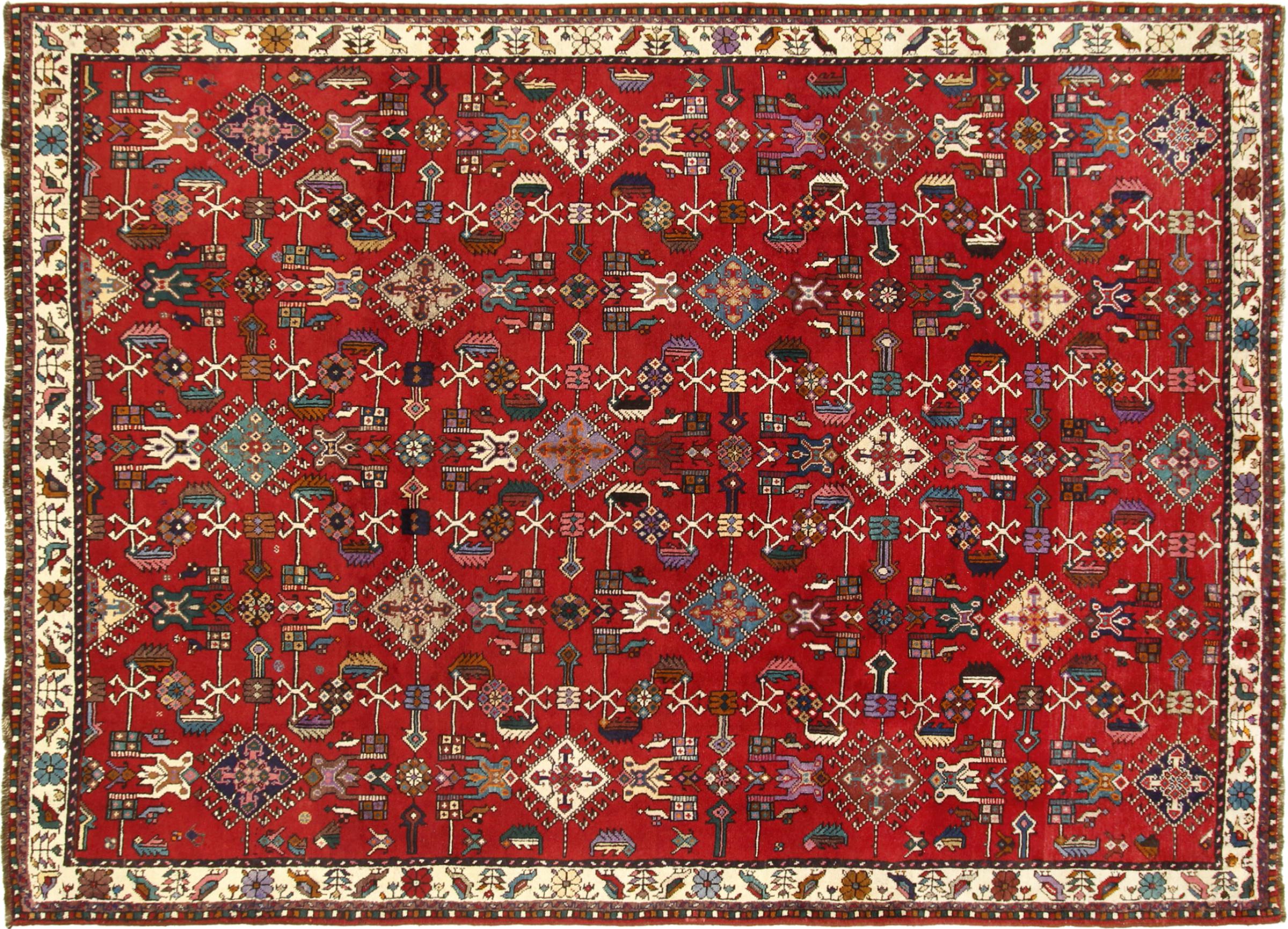 Esta alfombra pertenece a alfombras de pueblos y nómadas de Irán, antiguamente Persia. Este tipo de alfombra se anuda a mano en ciudades y pueblos más pequeños según la antigua tradición. Incluso los nómadas siguen anudando alfombras persas al aire libre. Las alfombras están anudadas sin un patrón y completamente desde la cabeza. Se caracterizan por los ornamentos clásicos, que están dispuestos en patrones rectos y geométricos. Gracias a su origen cultural-tradicional, estas alfombras tienen un carácter único que encarna la antigua Persia.