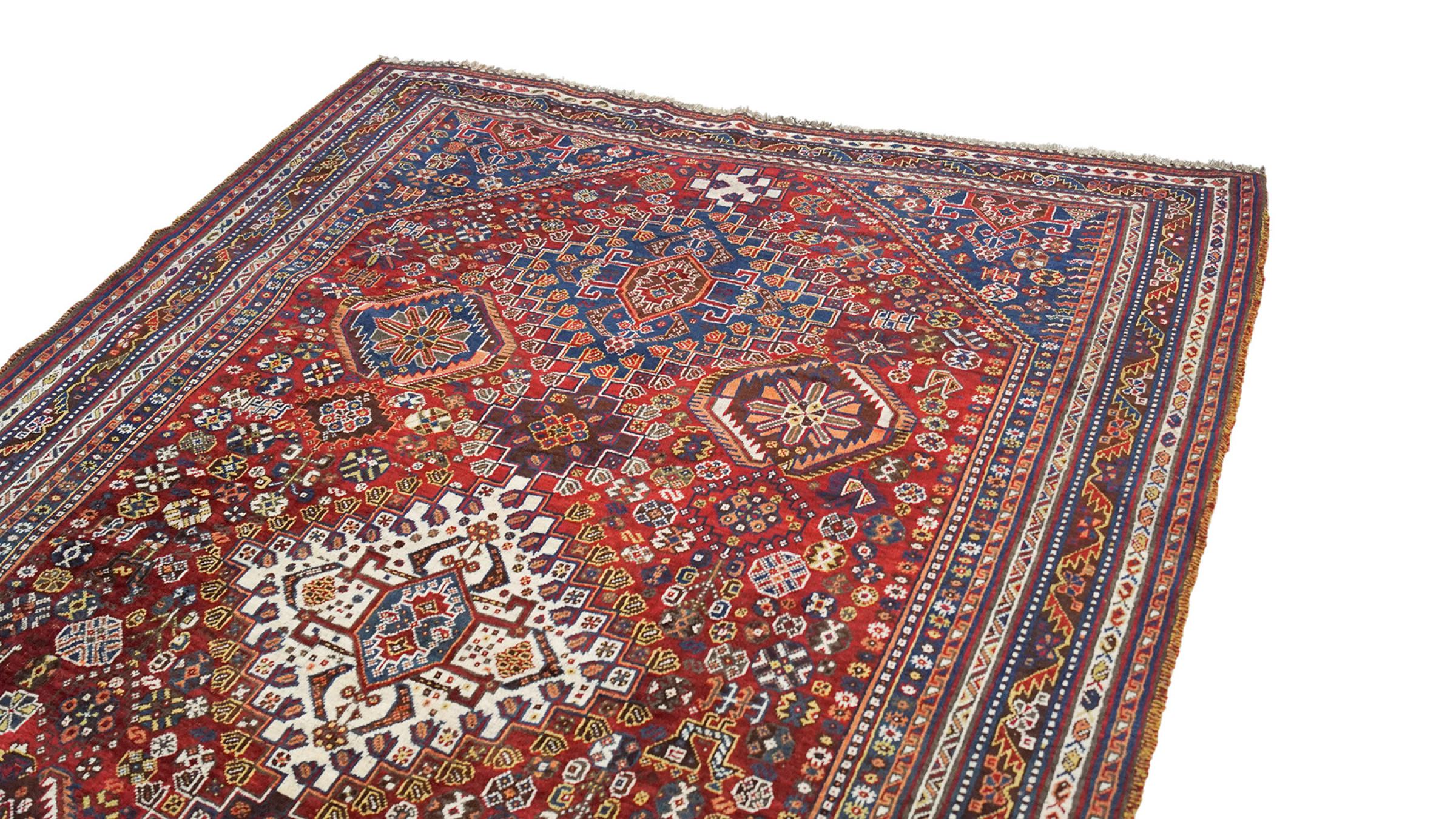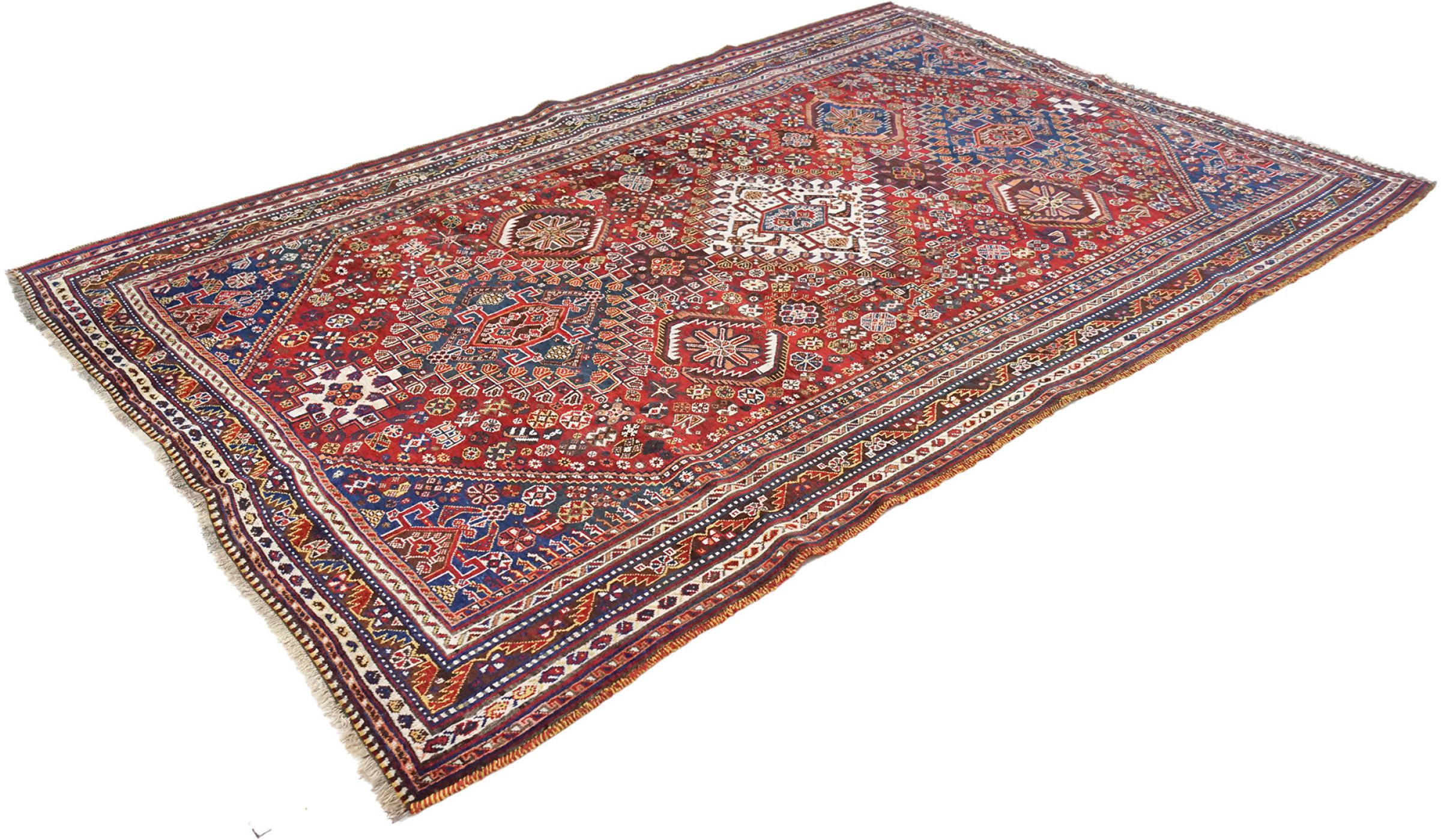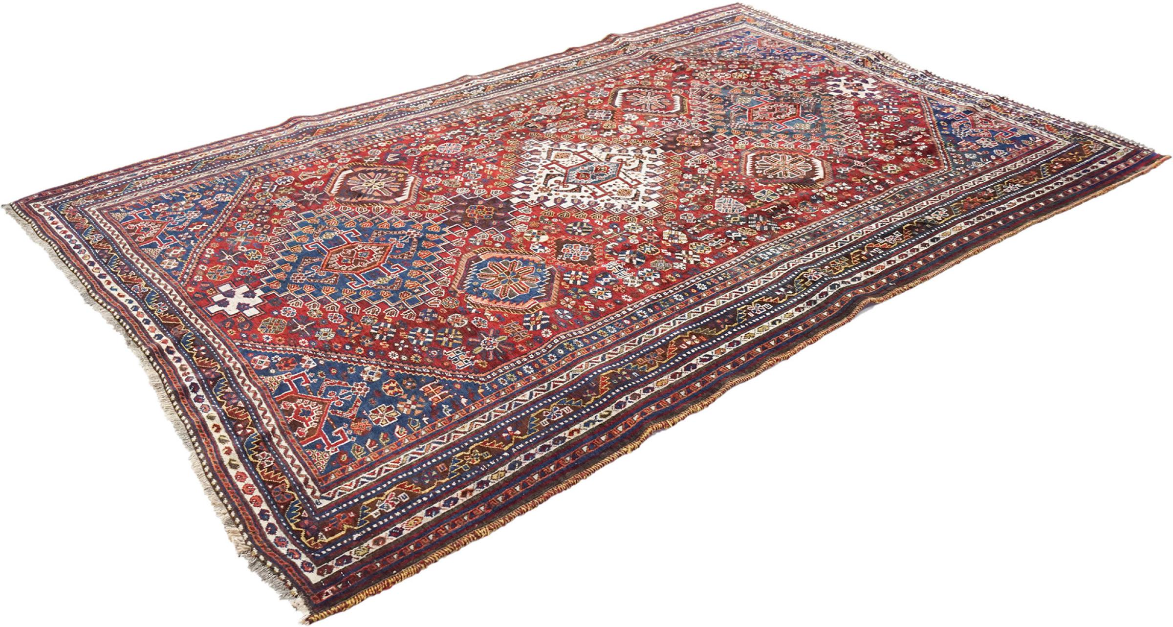 Alfombra número: 316216009785911 Tamaño: 274x179 cm Espesor: alrededor de 12 mm Nudos: 128 000 - 160 000 / m² Elaboración: Anudado a mano Crespón: Lana hilada a mano Urdimbre: Algodón Estado / Conservación Perfecta Origen: Persia / Iran Edad: Antigua, mayor de 80 años Peso: alrededor de 20 kg También conocido como Qashqai, Gaschgai, Gashghai, Kashgai Cantidad en stock: Única - Solo 1 en stock