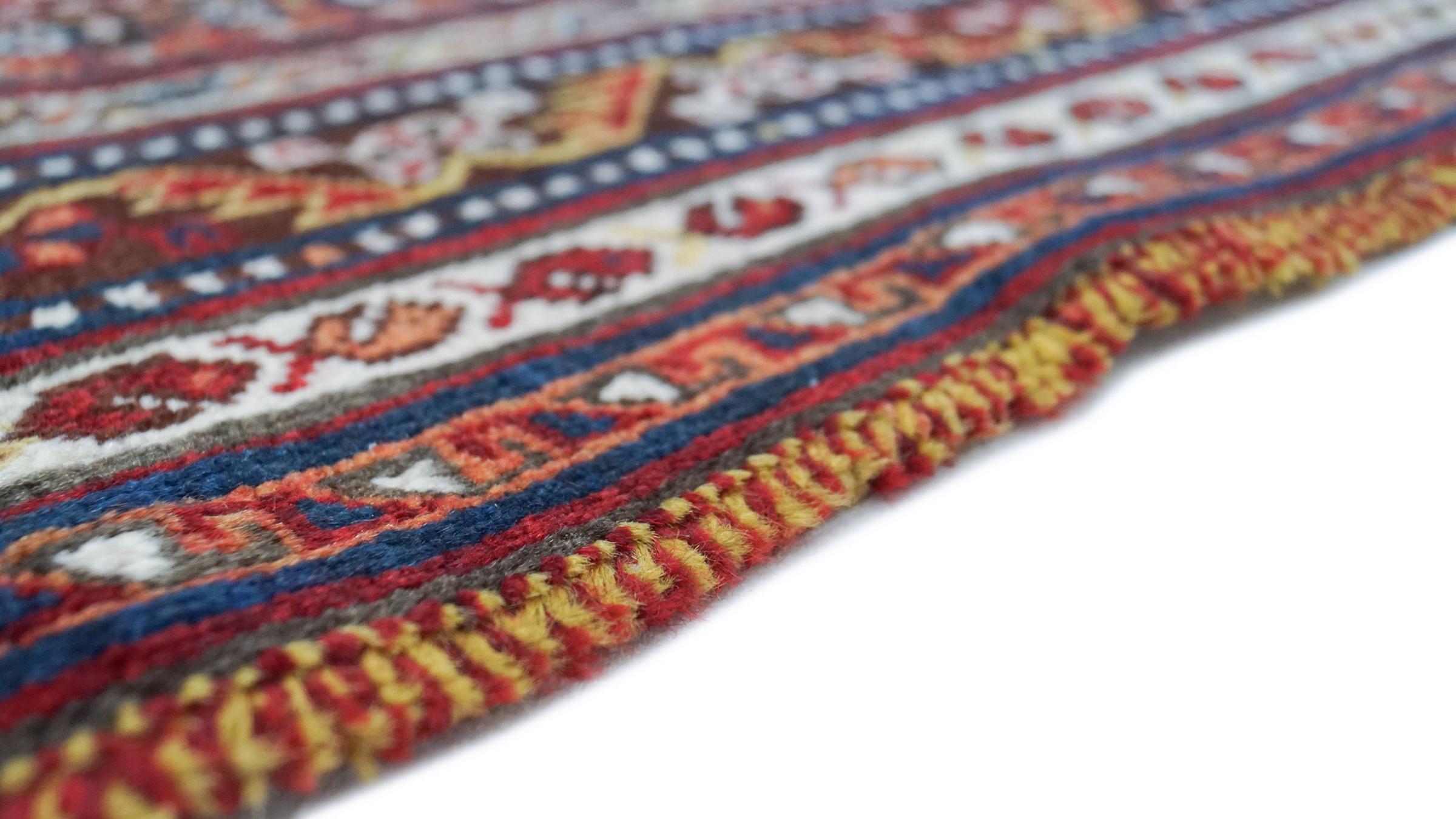Esta ghashghai es una auténtica maravilla. Sus colores y diseños reflejan la vida de los nómadas Ghashghai de Irán. Estas tribus nómadas viven principalmente en los alrededores de la ciudad de Shiraz. Deje que un pedazo de la antigua cultura persa se traslade a sus propias cuatro paredes.