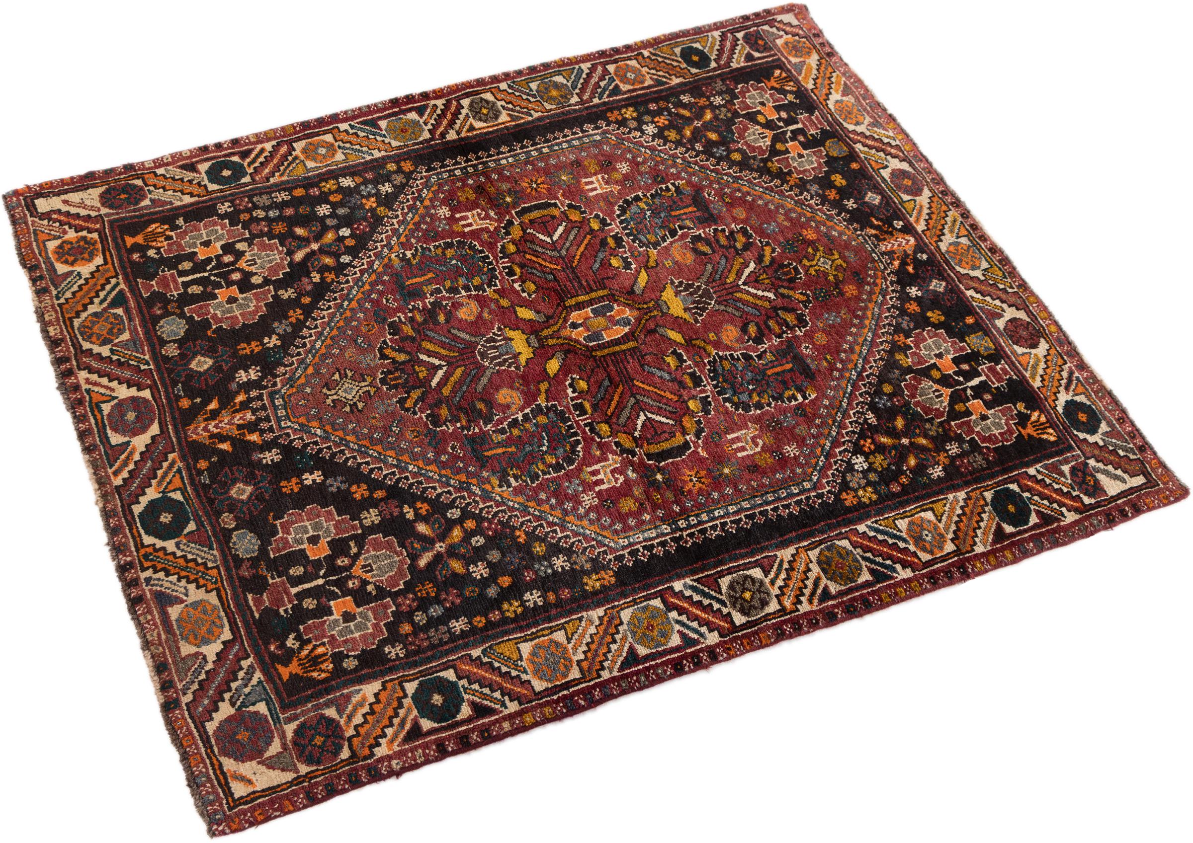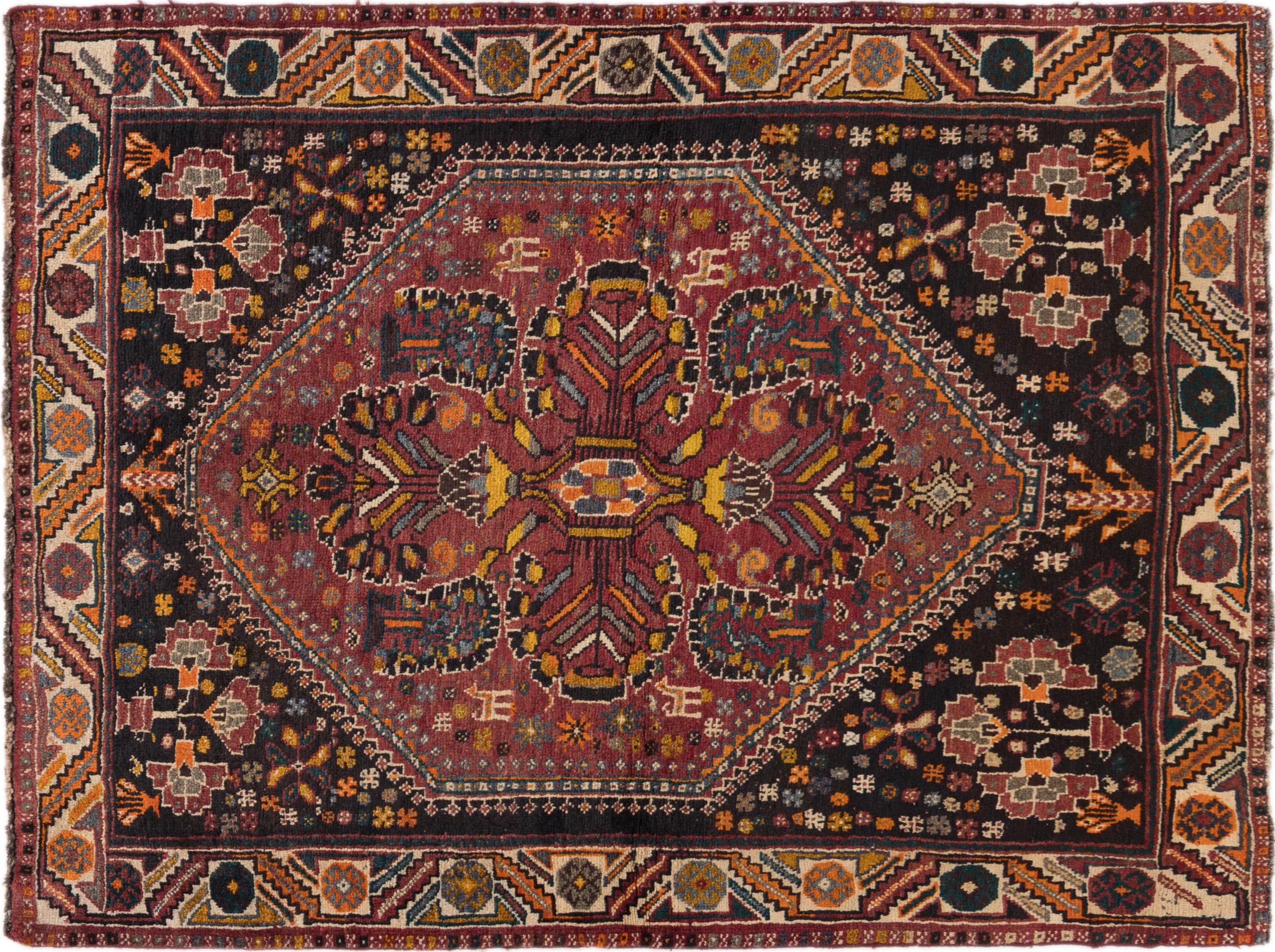 Alfombra número: 298347003765 Tamaño: 153x115 cm Espesor: alrededor de 12 mm Nudos: 72 000 - 90 000 / m² Elaboración: Anudado a mano Crespón: Lana hilada a mano Urdimbre: Lana de oveja Origen: Persia / Iran Edad: Vieja/Semi-Antigua, mayor de 50 años Peso: alrededor de 6 kg También conocido como Qashqai, Gaschgai, Gashghai, Kashgai Cantidad en stock: Única - Solo 1 en stock