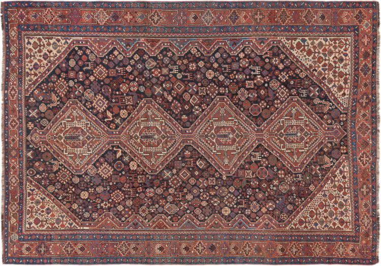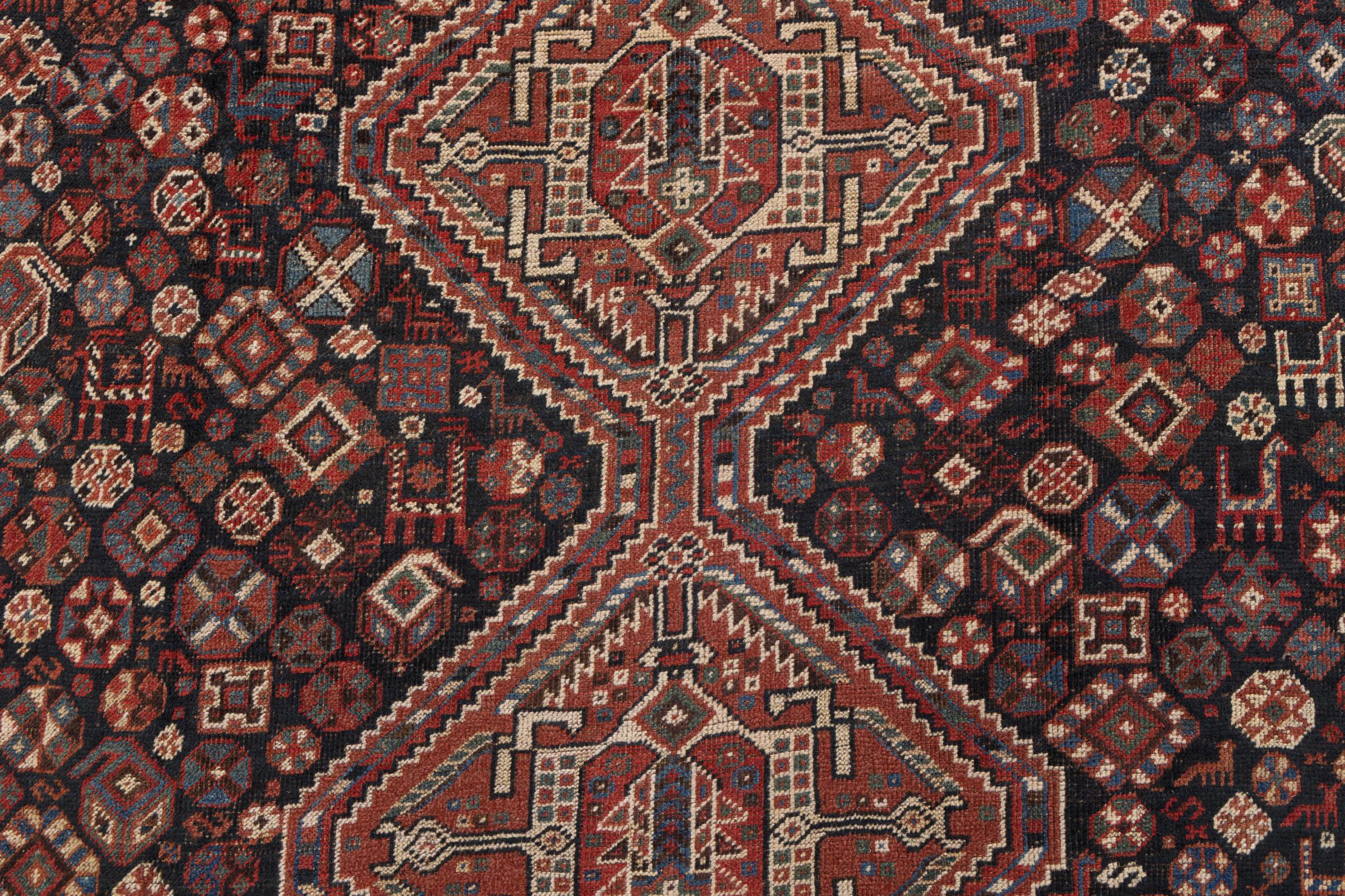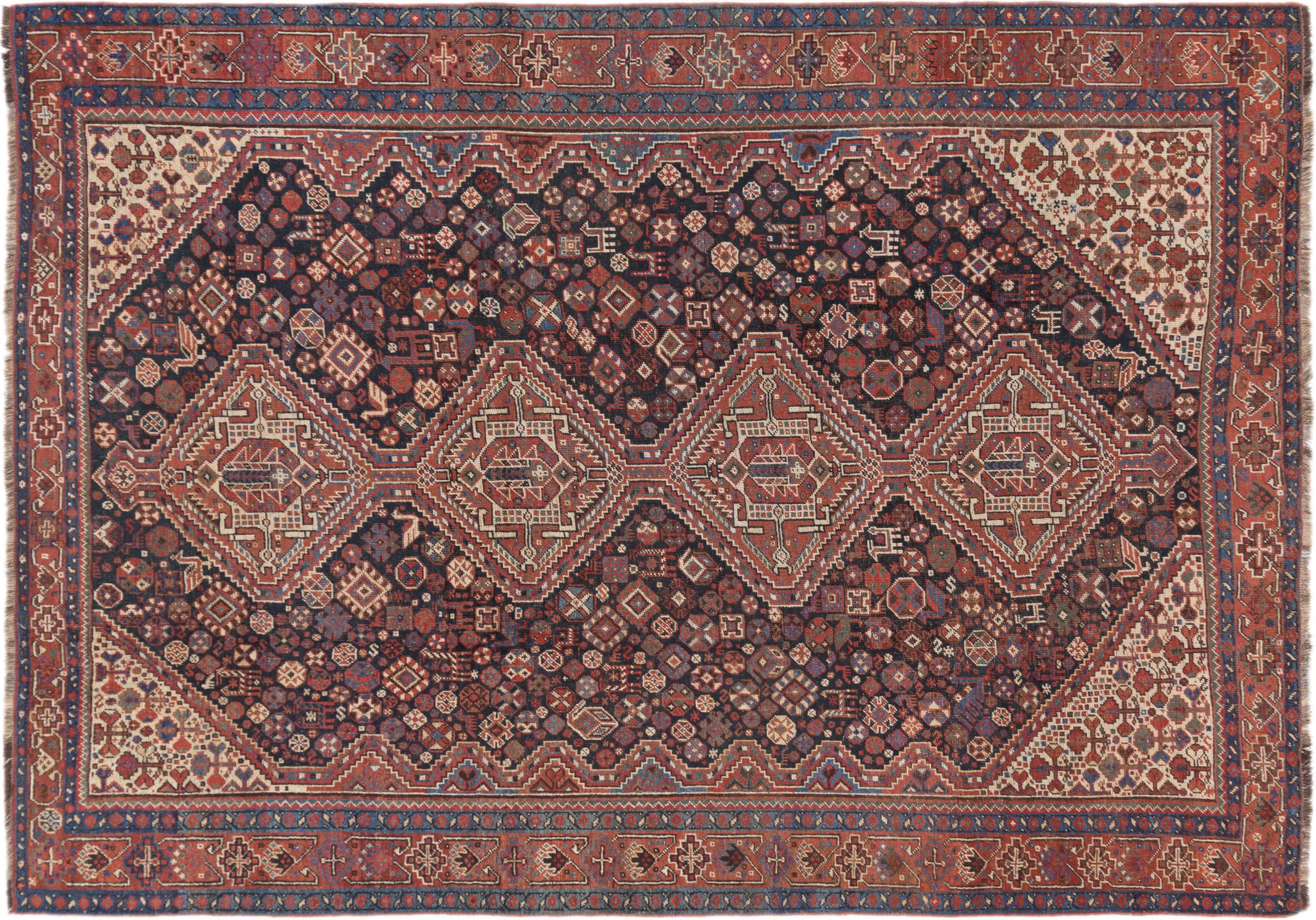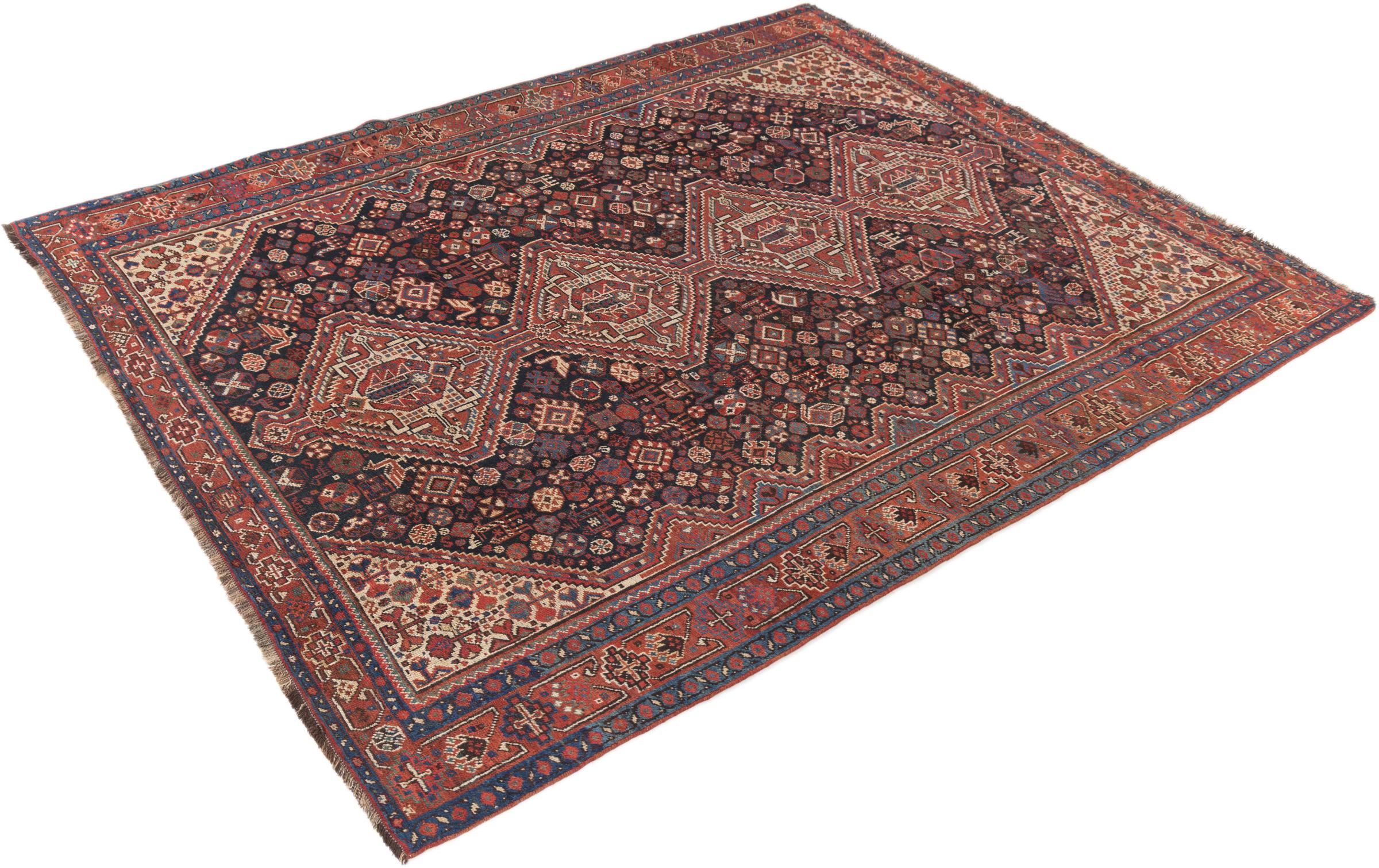 Alfombra número: 296203002601 Tamaño: 293x208 cm Espesor: alrededor de 12 mm Nudos: 128 000 - 160 000 / m² Elaboración: Anudado a mano Crespón: Lana hilada a mano Urdimbre: Algodón Origen: Persia / Iran Edad: Vieja/Semi-Antigua, mayor de 50 años Peso: alrededor de 21 kg También conocido como Qashqai, Gaschgai, Gashghai, Kashgai Cantidad en stock: Única - Solo 1 en stock