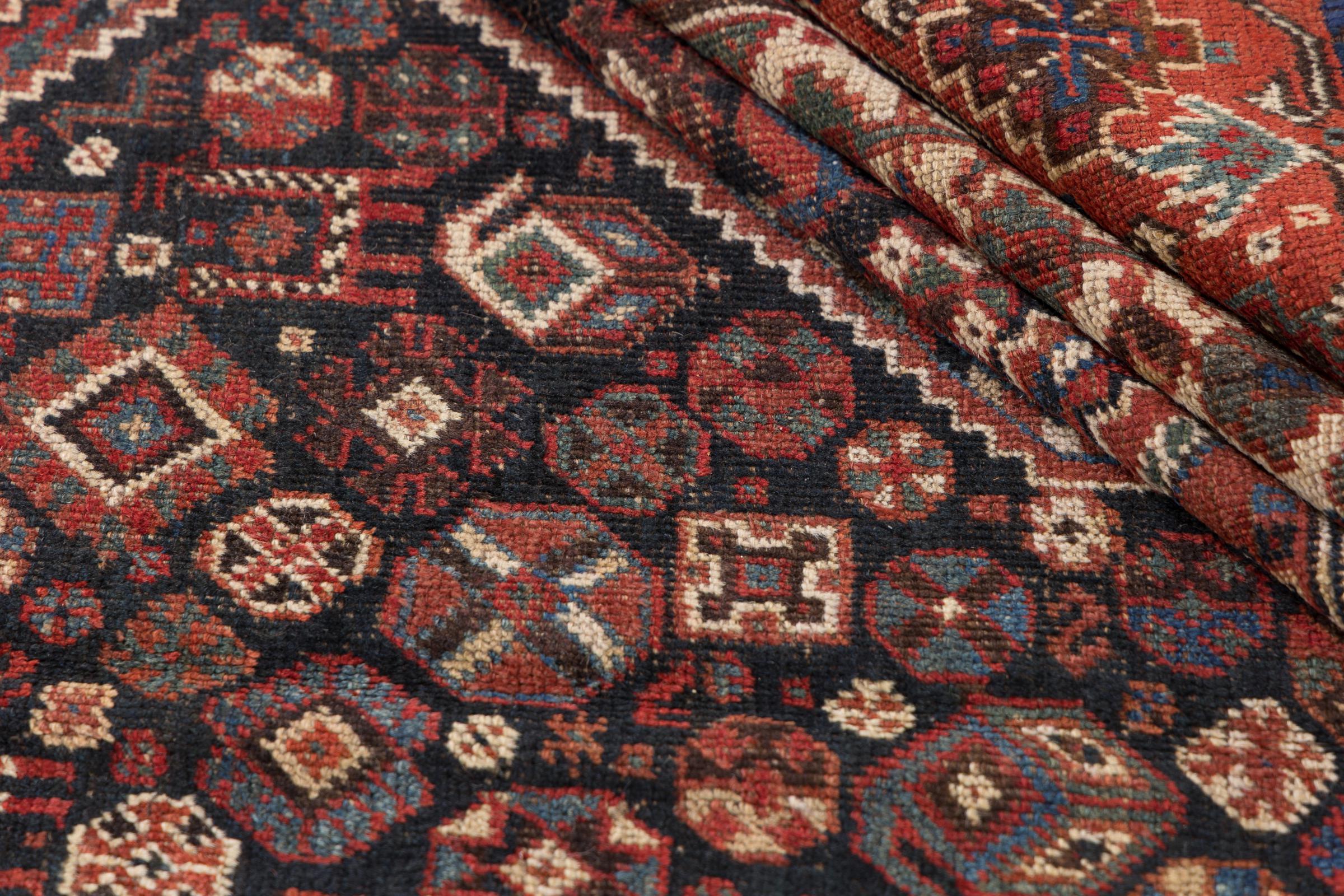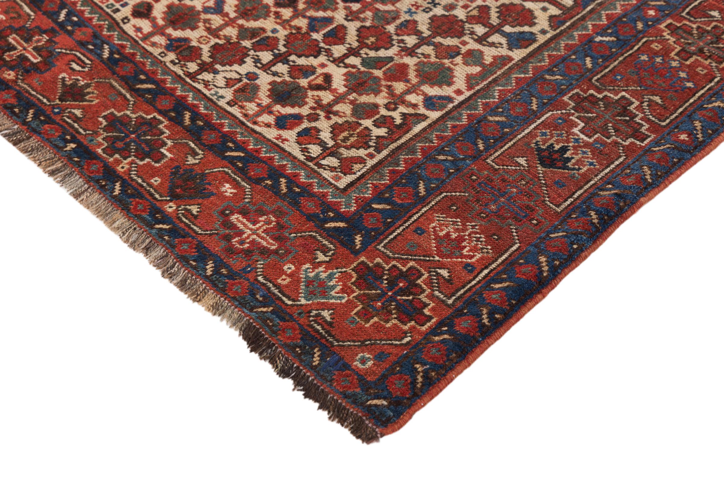 Esta alfombra pertenece a alfombras de pueblos y nómadas de Irán, antiguamente Persia. Este tipo de alfombra se anuda a mano en ciudades y pueblos más pequeños según la antigua tradición. Incluso los nómadas siguen anudando alfombras persas al aire libre. Las alfombras están anudadas sin un patrón y completamente desde la cabeza. Se caracterizan por los ornamentos clásicos, que están dispuestos en patrones rectos y geométricos. Gracias a su origen cultural-tradicional, estas alfombras tienen un carácter único que encarna la antigua Persia.