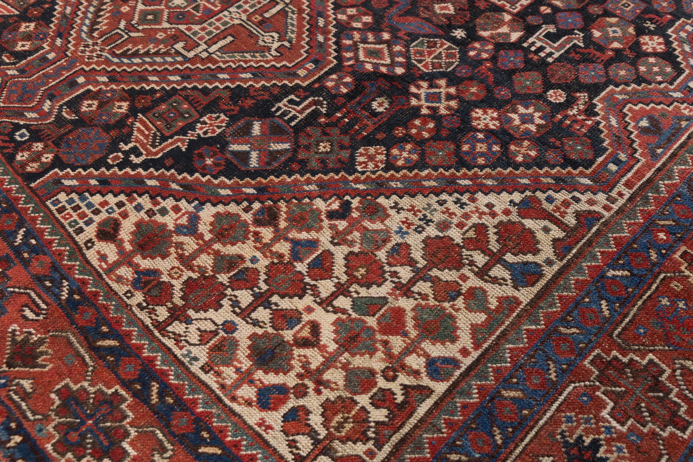 Esta ghashghai es una auténtica maravilla. Sus colores y diseños reflejan la vida de los nómadas Ghashghai de Irán. Estas tribus nómadas viven principalmente en los alrededores de la ciudad de Shiraz. Deje que un pedazo de la antigua cultura persa se traslade a sus propias cuatro paredes.