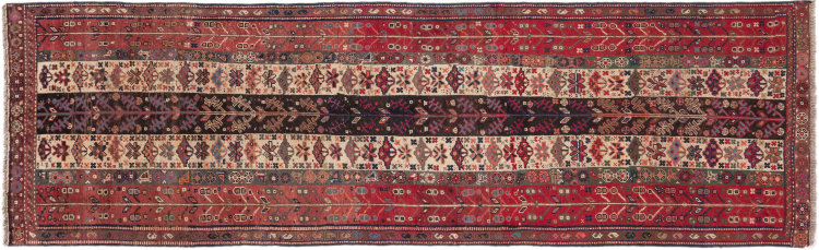 Alfombra número: 298436005967 Tamaño: 300x88 cm Espesor: alrededor de 12 mm Nudos: 200 000 - 250 000 / m² Elaboración: Anudado a mano Crespón: Lana hilada a mano Urdimbre: Lana de oveja Origen: Persia / Iran Edad: Vieja/Semi-Antigua, mayor de 50 años Peso: alrededor de 9 kg También conocido como Qashqai, Gaschgai, Gashghai, Kashgai Cantidad en stock: Única - Solo 1 en stock