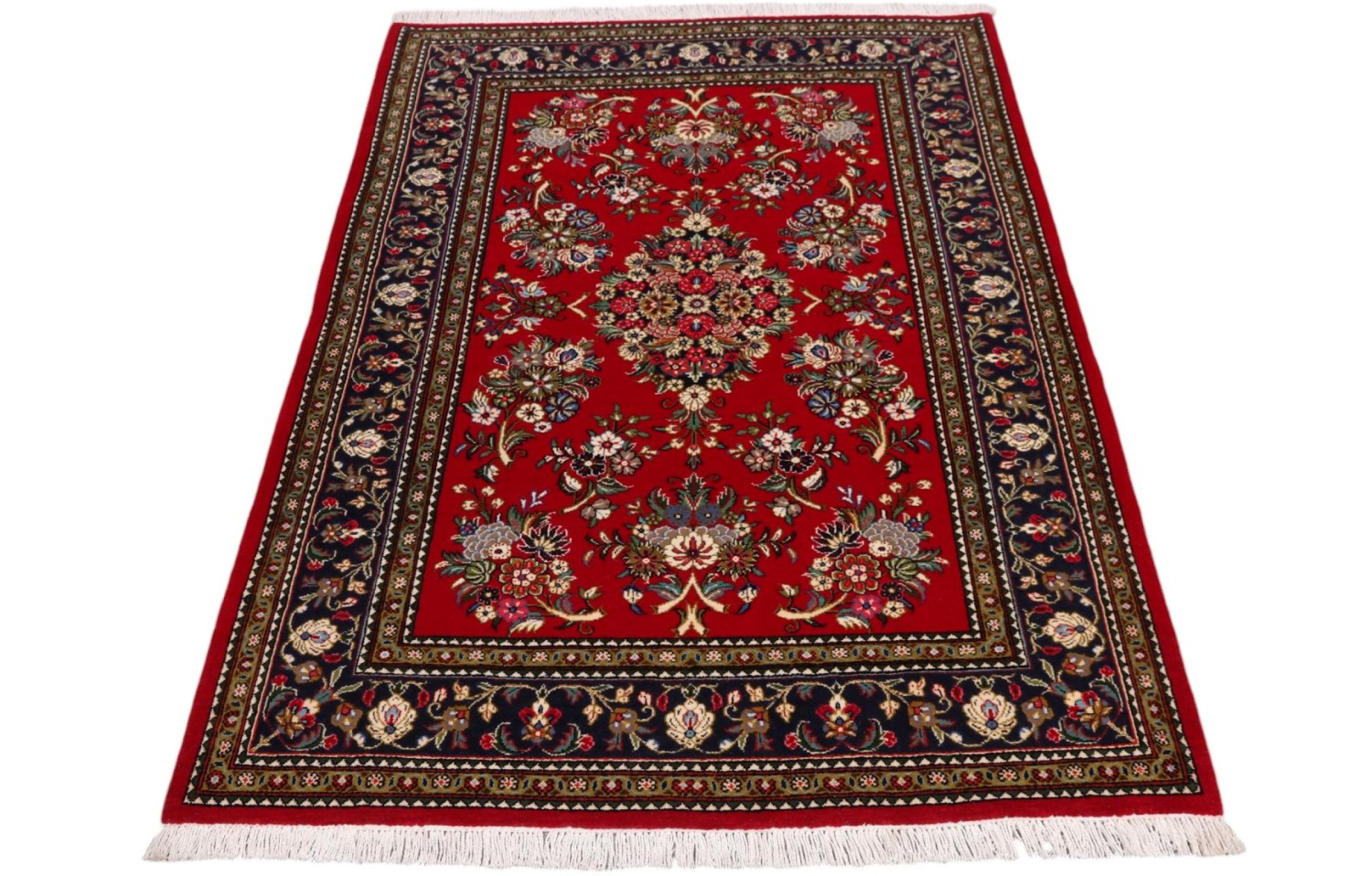 Esta Ghom Cork es una verdadera obra de arte de la artesanía. Su fino terciopelo y su urdimbre complacen a cualquier conocedor de alfombras. Esta alfombra persa fue elaborada en la ciudad santa de Ghom, con la más fina lana de corcho existente. Sus motivos y diseño hacen palpitar corazones. Una alfombra persa no podría ser más hermosa.