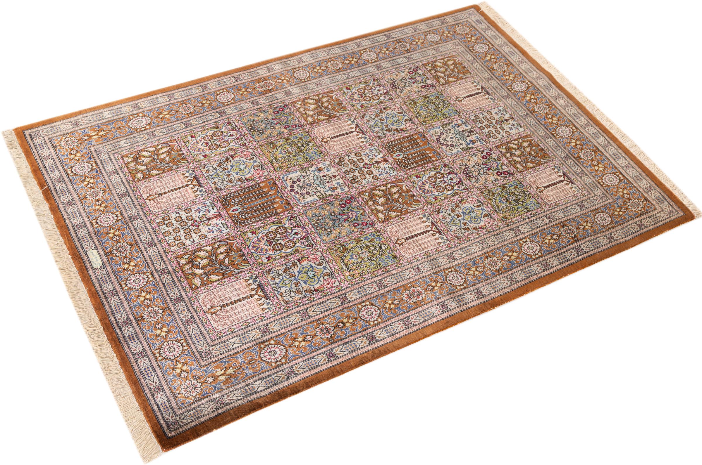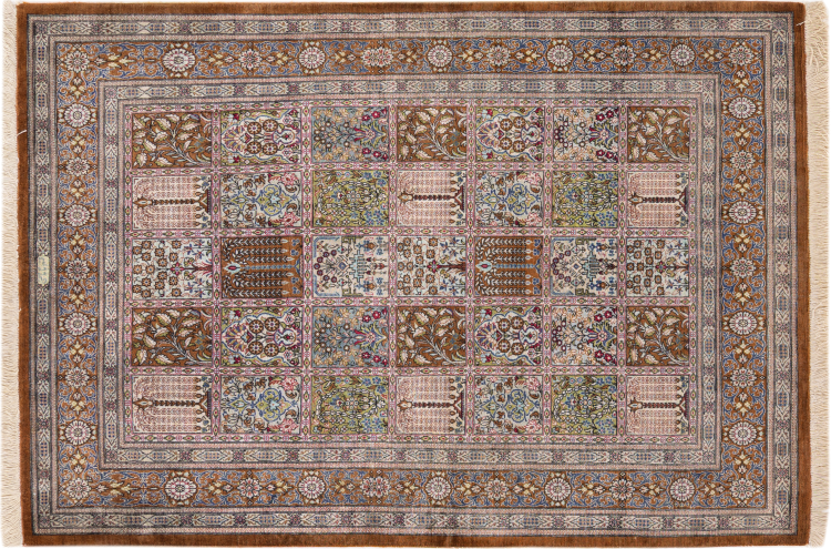 Alfombra número: 122090062 Tamaño: 143x98 cm Espesor: alrededor de 4 mm Nudos: 1 000 000 / m² Elaboración: Anudado a mano Crespón: Seda Urdimbre: Seda Origen: Persia / Iran Edad: Nuevo Peso: alrededor de 3 kg Cantidad en stock: Única - Solo 1 en stock