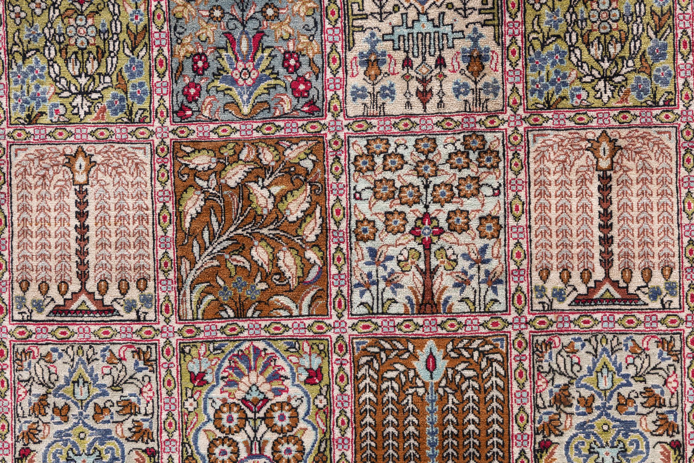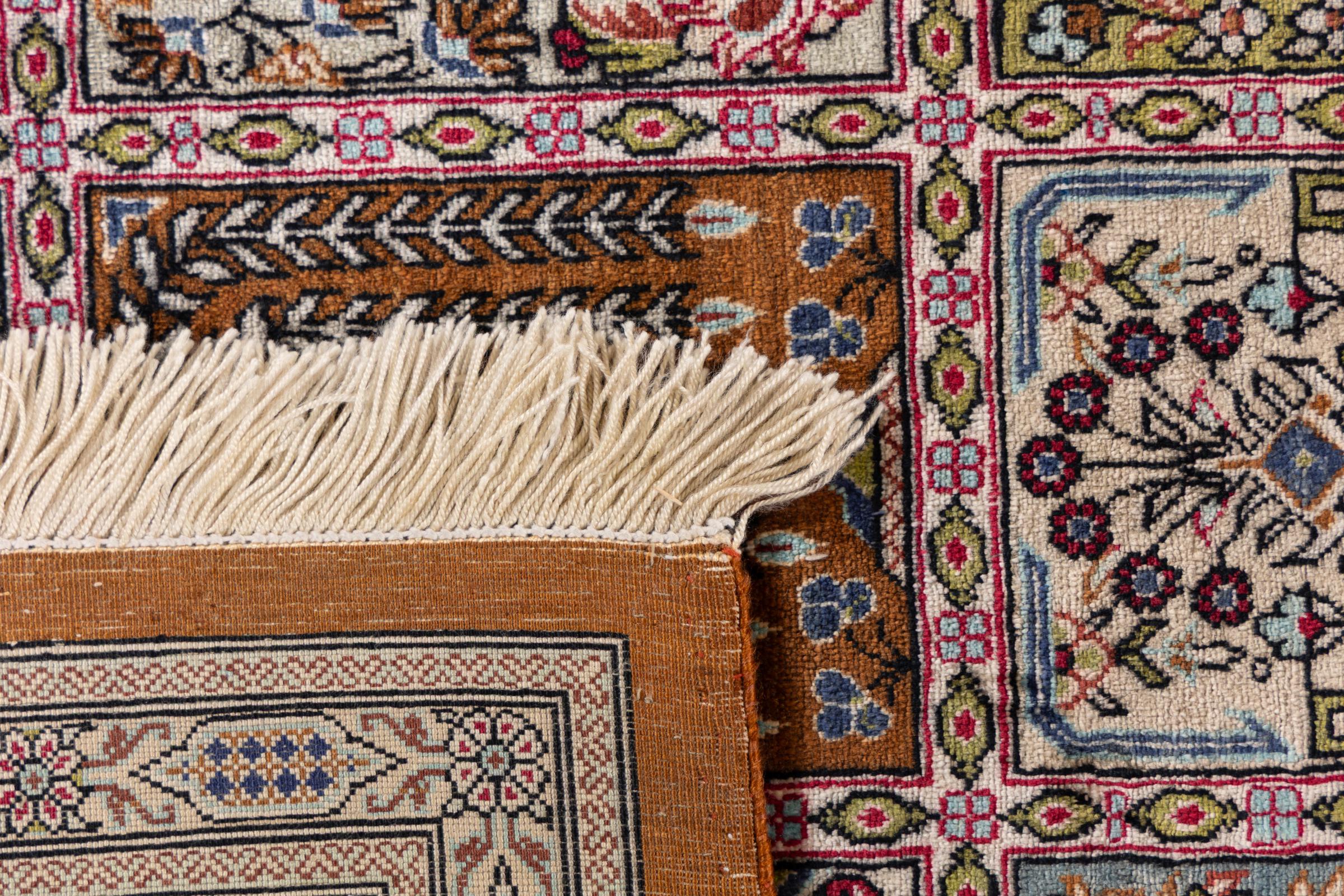 Esta alfombra de seda Ghom es puro lujo. Sus adornos y su pura seda natural lo dicen todo. Aquí encontrará Oriente en toda su perfección para su hogar. Una alfombra de seda de Ghom impresiona incluso a los coleccionistas de arte de alfombras persas. La seda permite que los colores brillen en las más diversas facetas según la incidencia de la luz. Esto convierte a esta alfombra persa en una atracción inolvidable y hará que su habitación brille en un ambiente acogedor y de gran calidad.