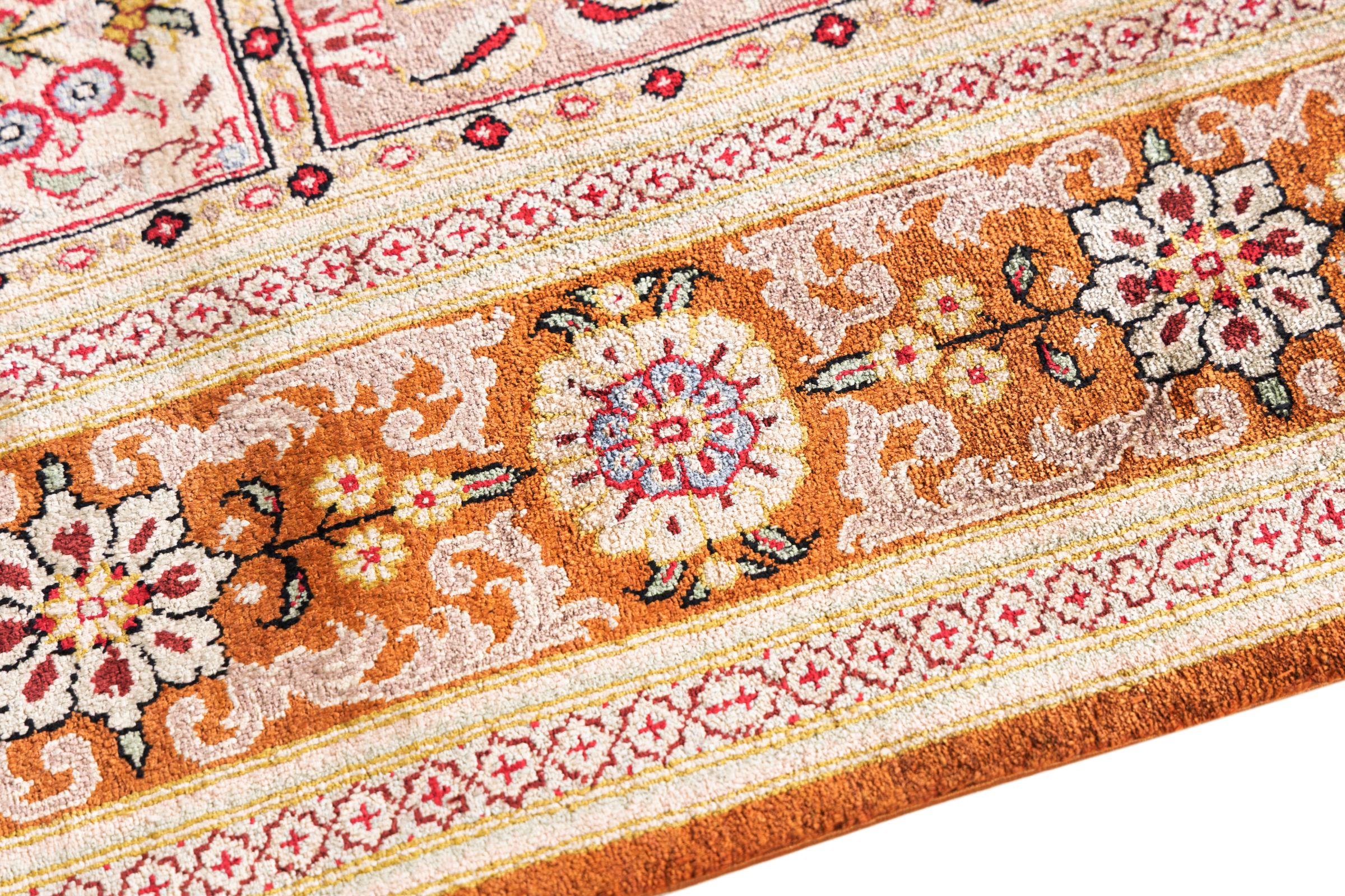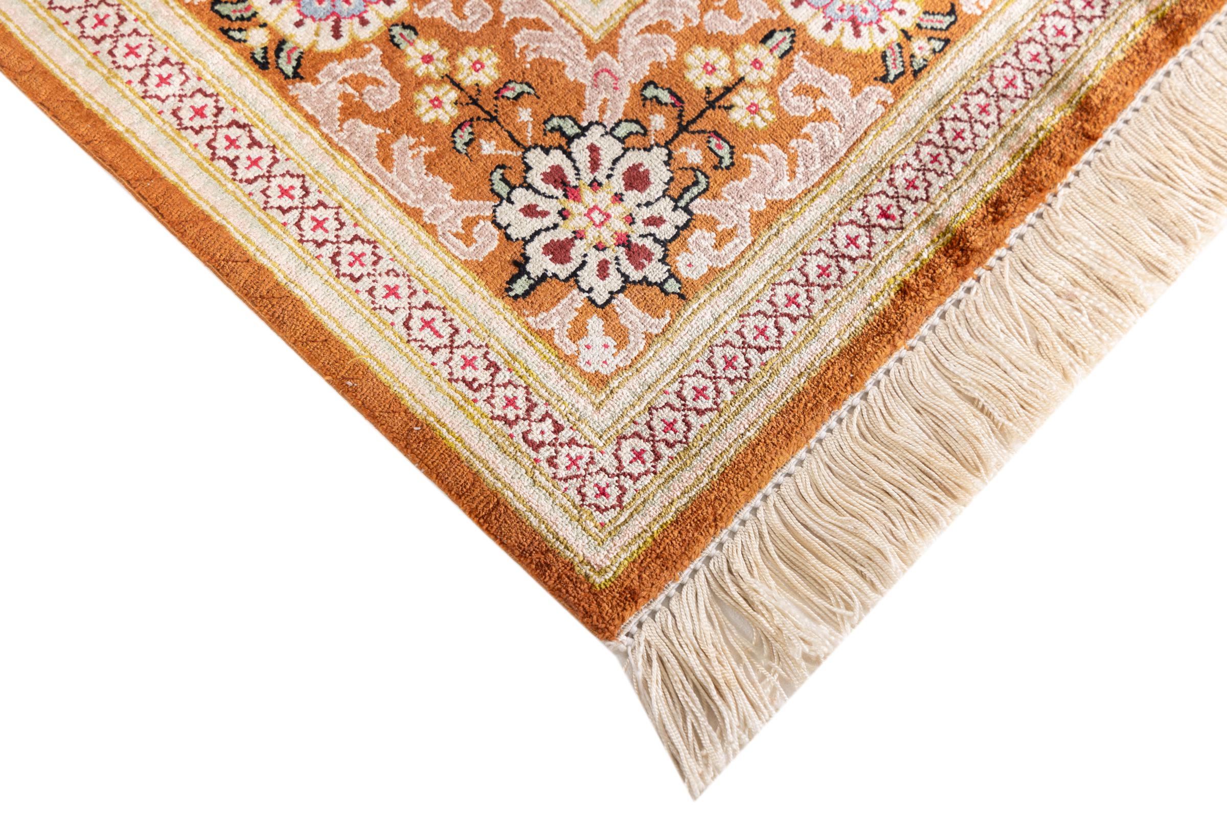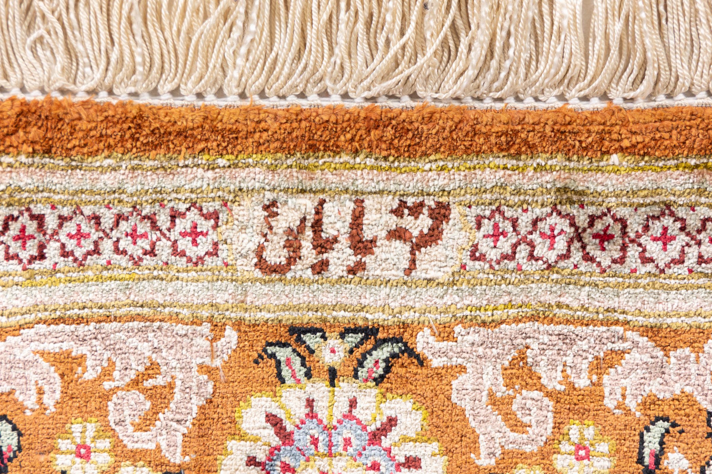 Esta alfombra de seda Ghom es puro lujo. Sus adornos y su pura seda natural lo dicen todo. Aquí encontrará Oriente en toda su perfección para su hogar. Una alfombra de seda de Ghom impresiona incluso a los coleccionistas de arte de alfombras persas. La seda permite que los colores brillen en las más diversas facetas según la incidencia de la luz. Esto convierte a esta alfombra persa en una atracción inolvidable y hará que su habitación brille en un ambiente acogedor y de gran calidad.