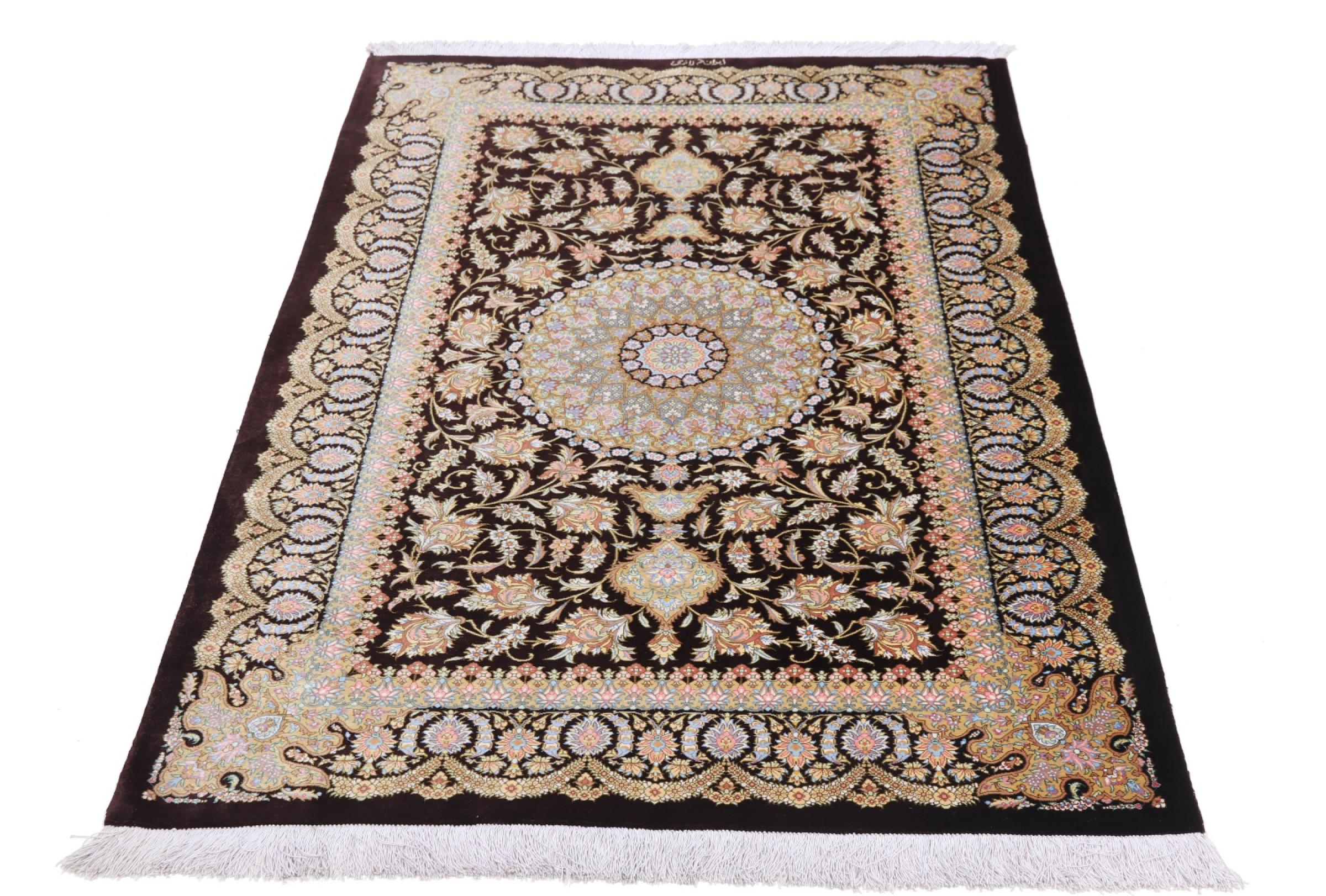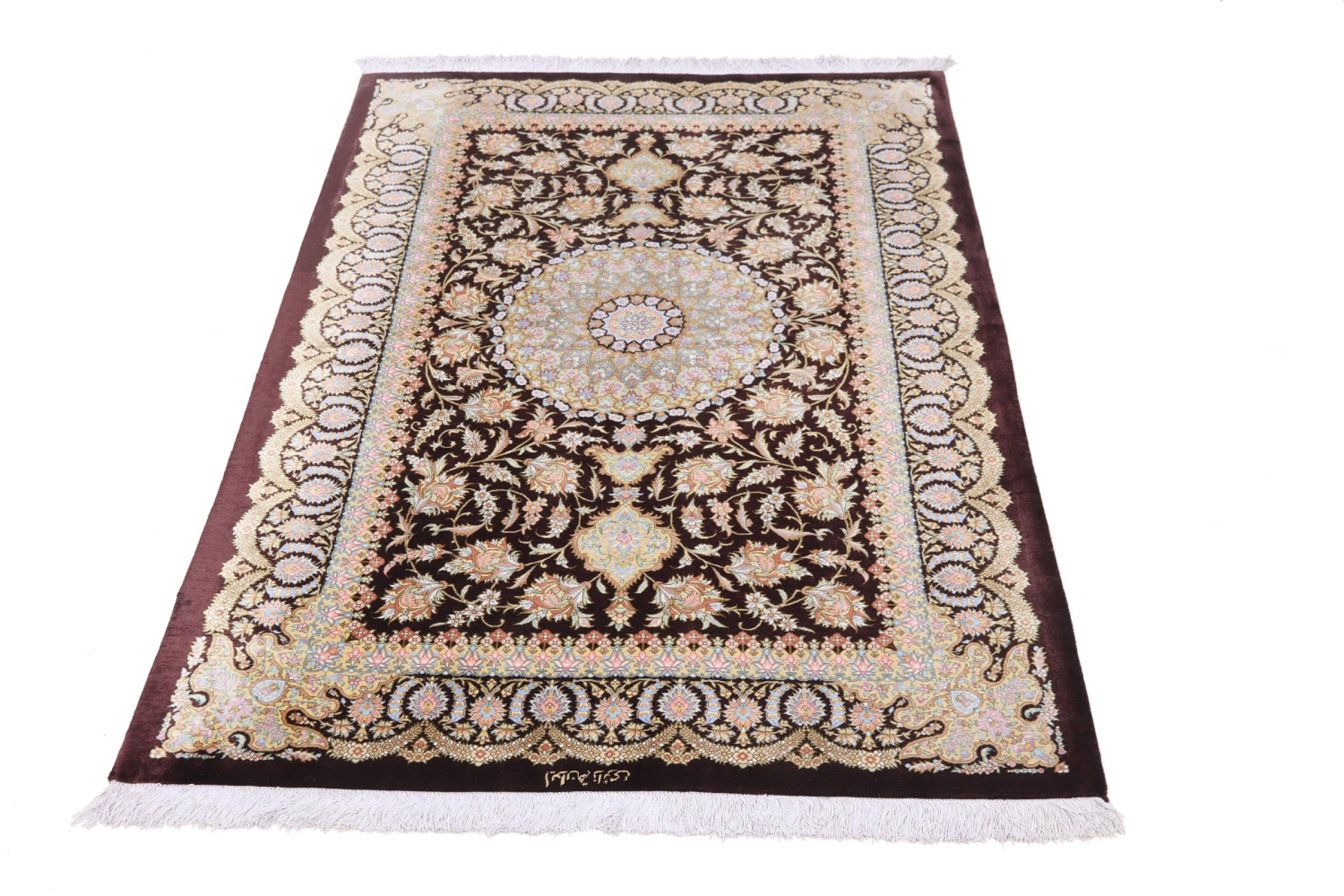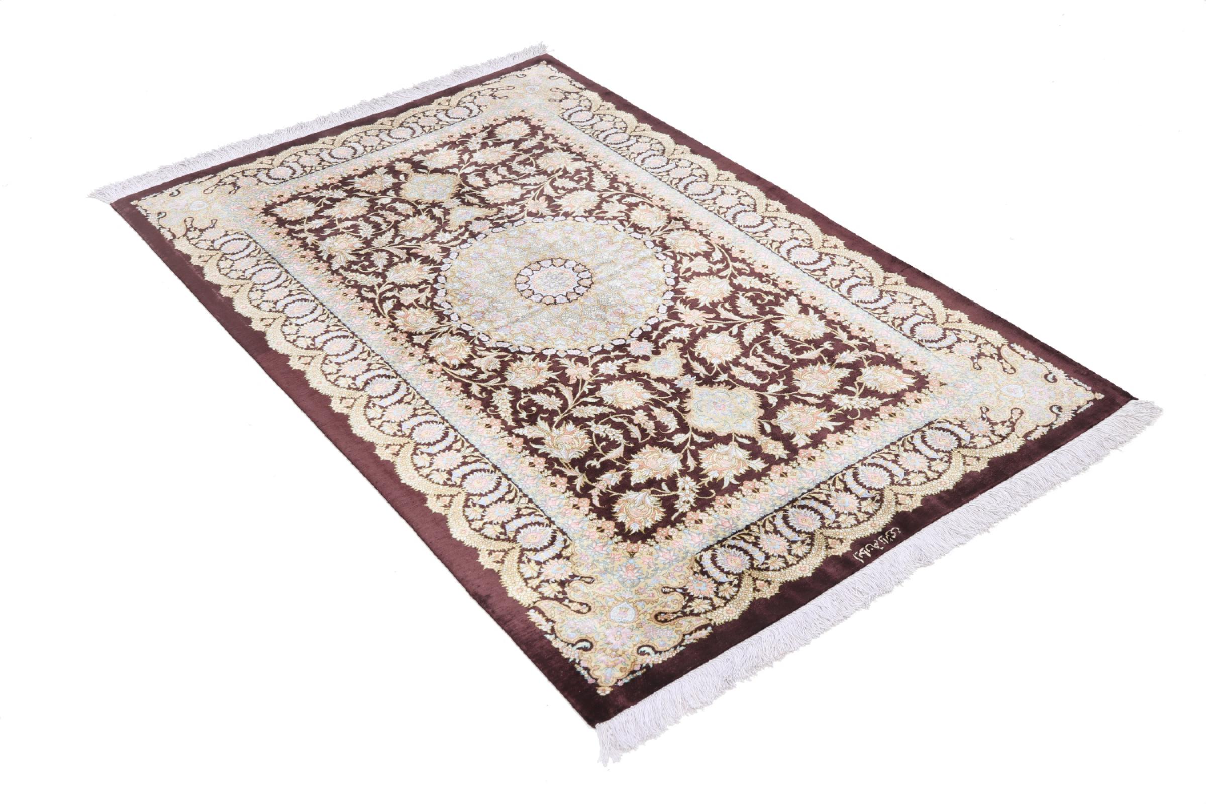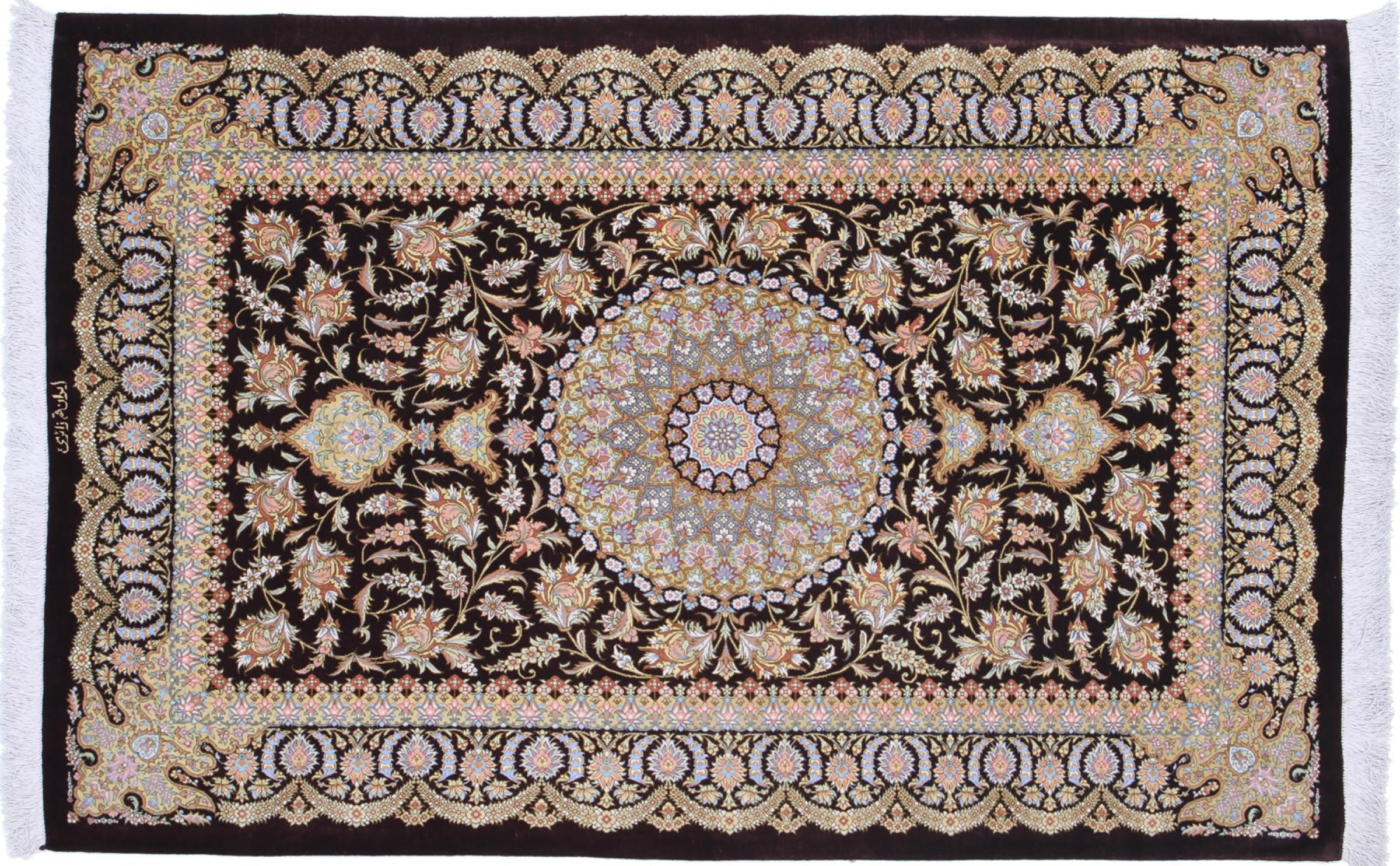 Alfombra número: 45500055646 Tamaño: 153x100 cm Espesor: alrededor de 4 mm Nudos: 1 000 000 / m² Elaboración: Anudado a mano Crespón: Seda Urdimbre: Seda Origen: Persia / Iran Edad: Nuevo Peso: alrededor de 3 kg Cantidad en stock: Única - Solo 1 en stock