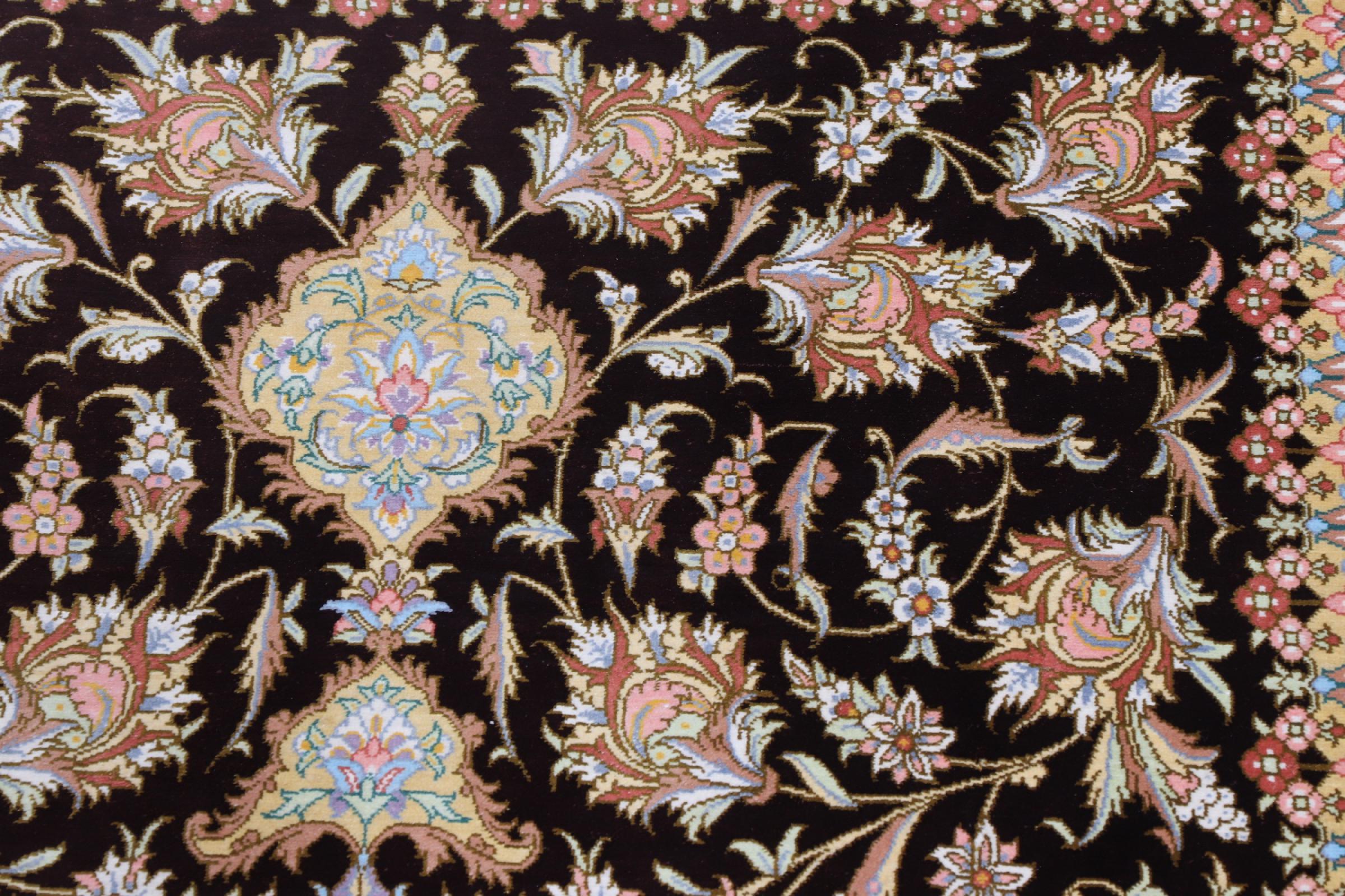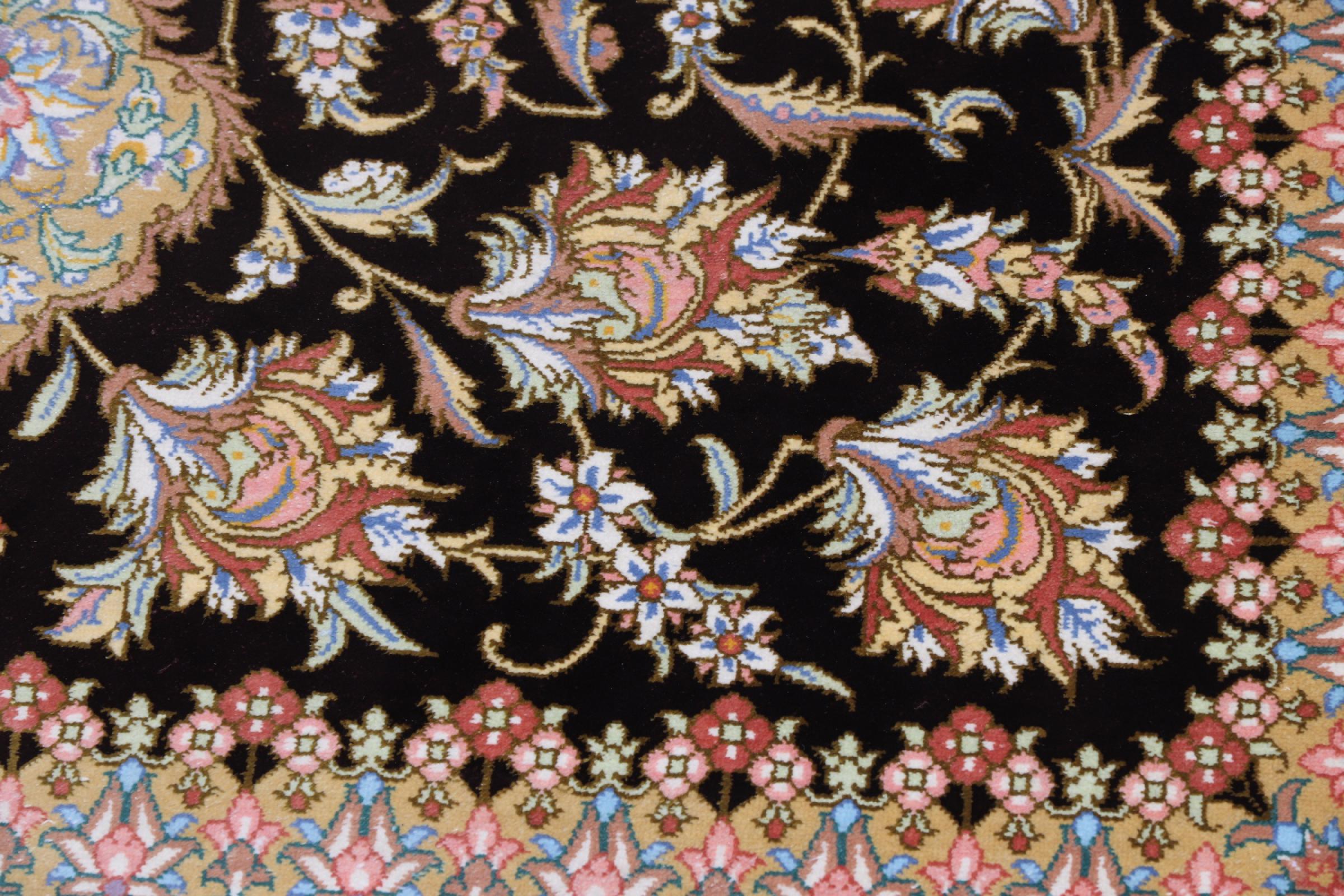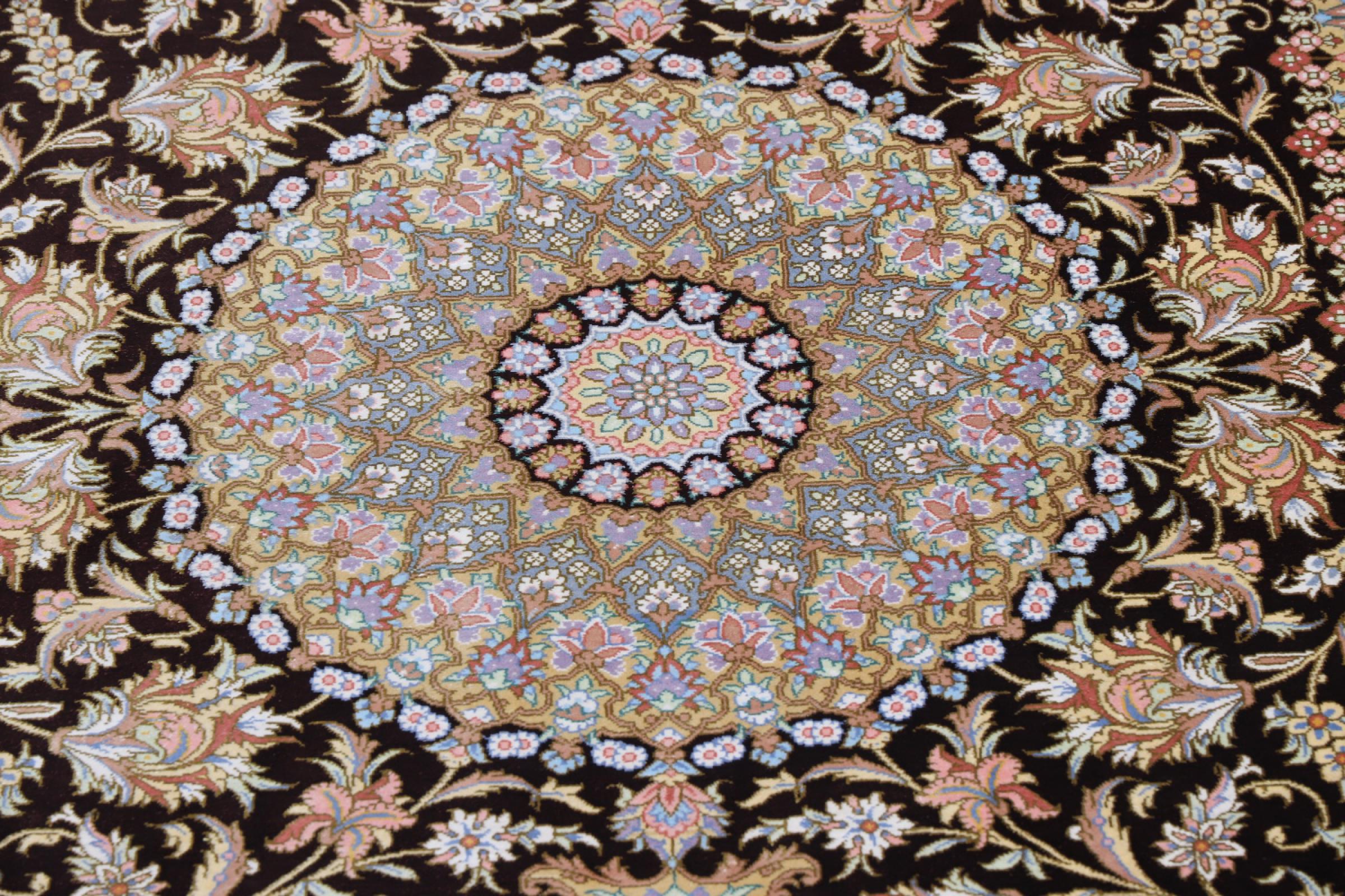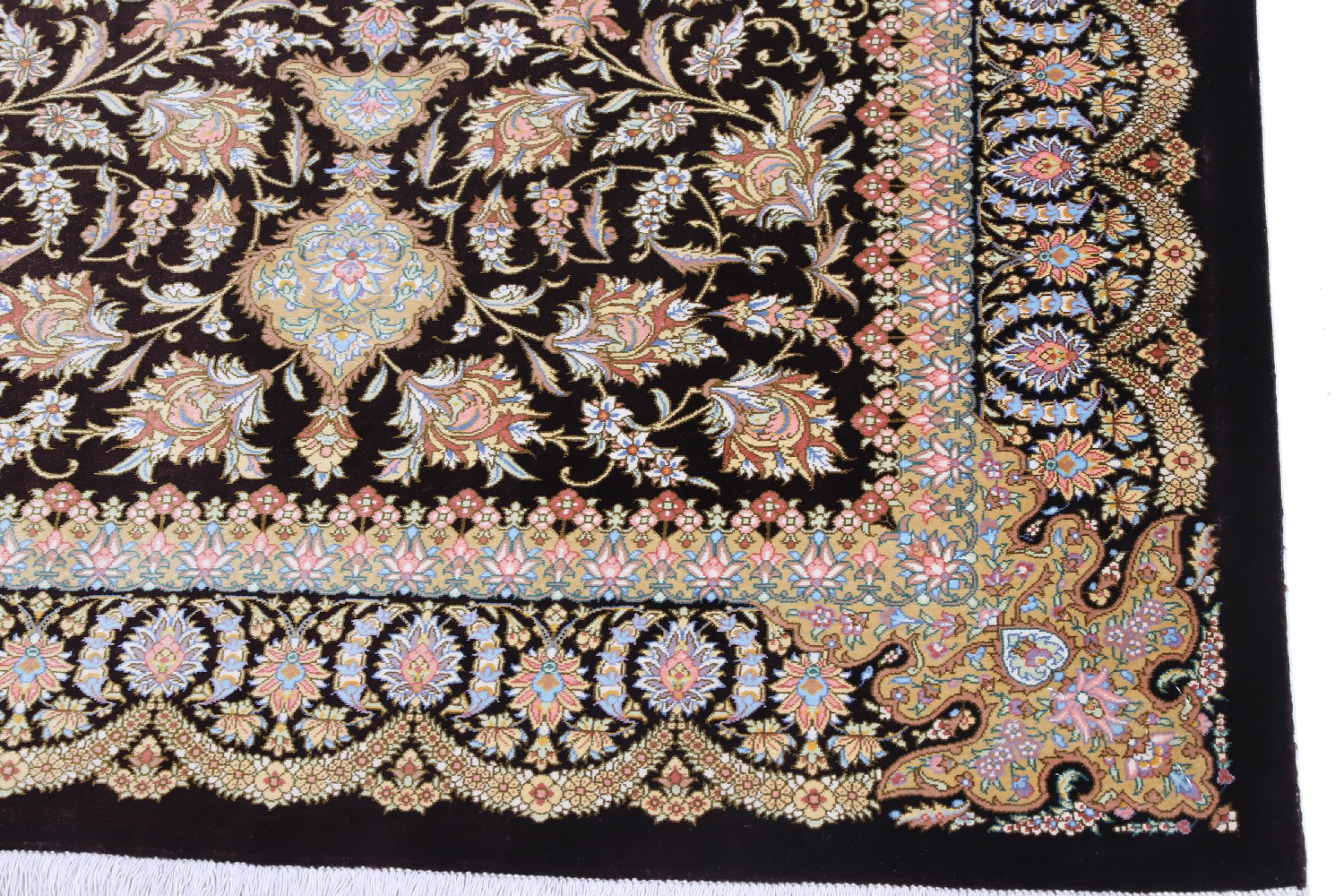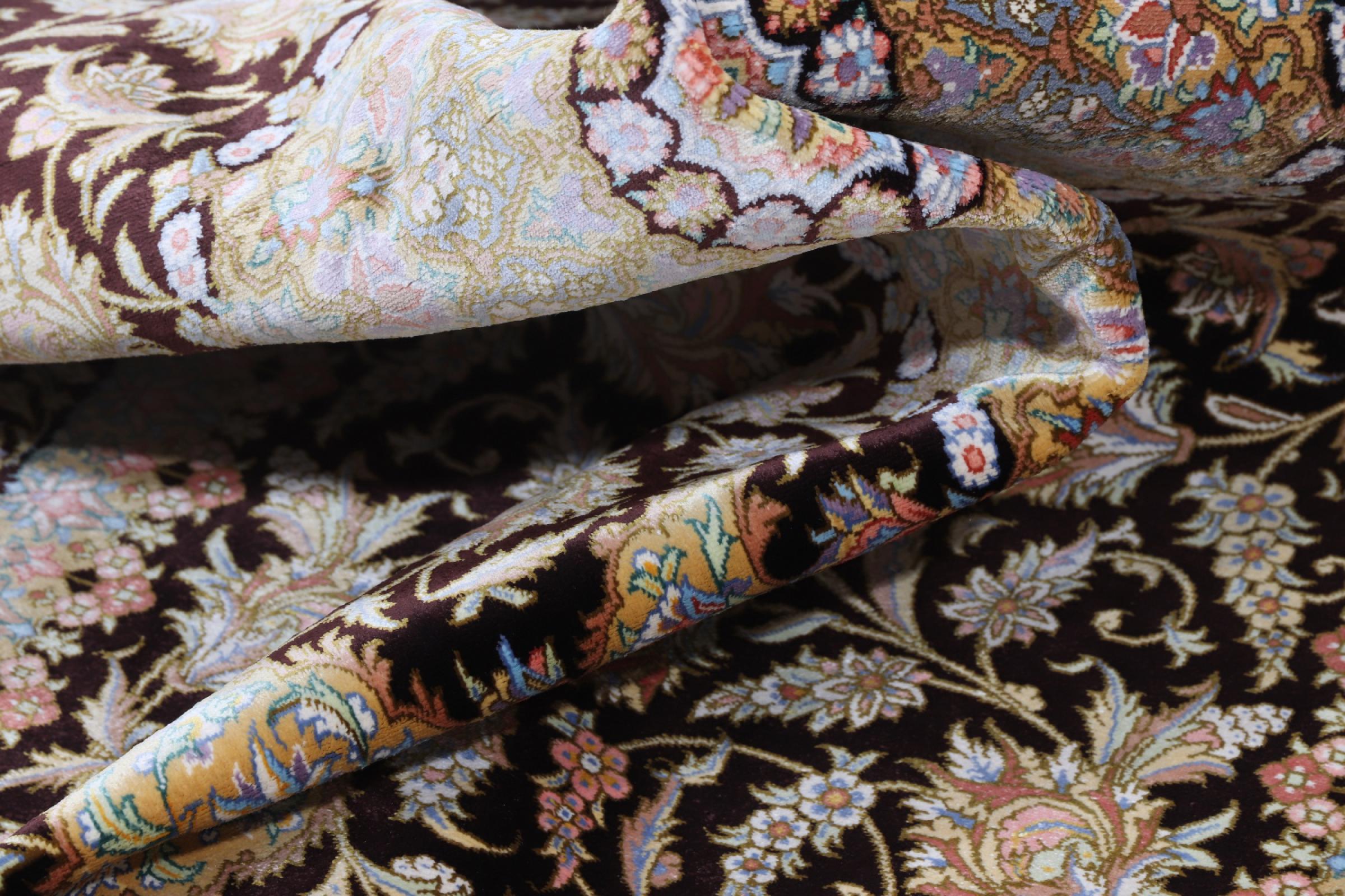 Esta alfombra de seda Ghom es puro lujo. Sus adornos y su pura seda natural lo dicen todo. Aquí encontrará Oriente en toda su perfección para su hogar. Una alfombra de seda de Ghom impresiona incluso a los coleccionistas de arte de alfombras persas. La seda permite que los colores brillen en las más diversas facetas según la incidencia de la luz. Esto convierte a esta alfombra persa en una atracción inolvidable y hará que su habitación brille en un ambiente acogedor y de gran calidad.