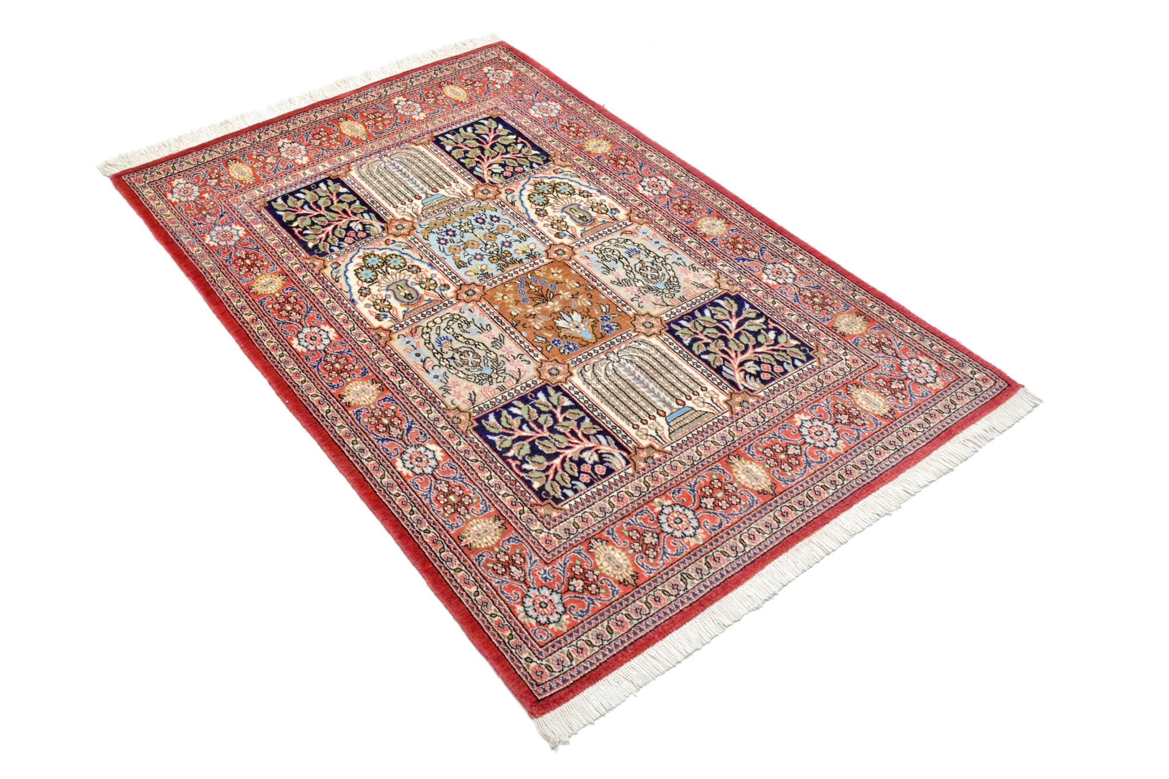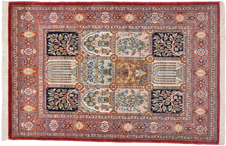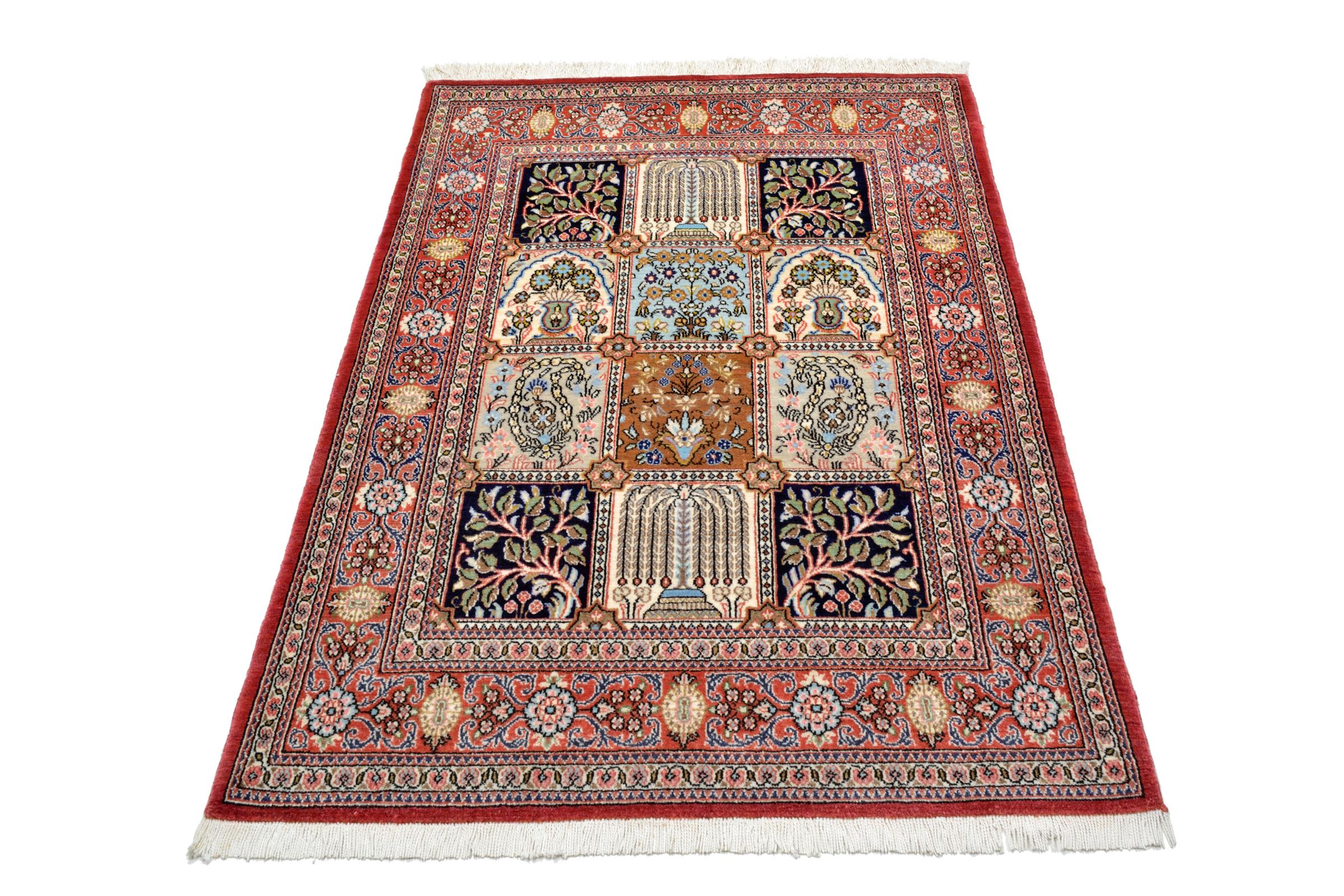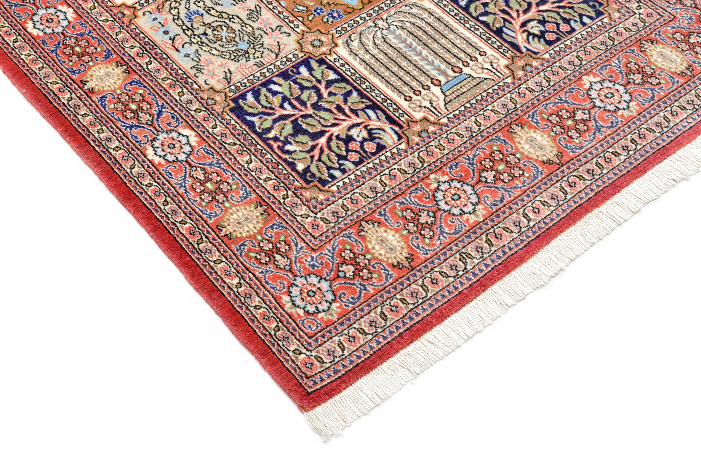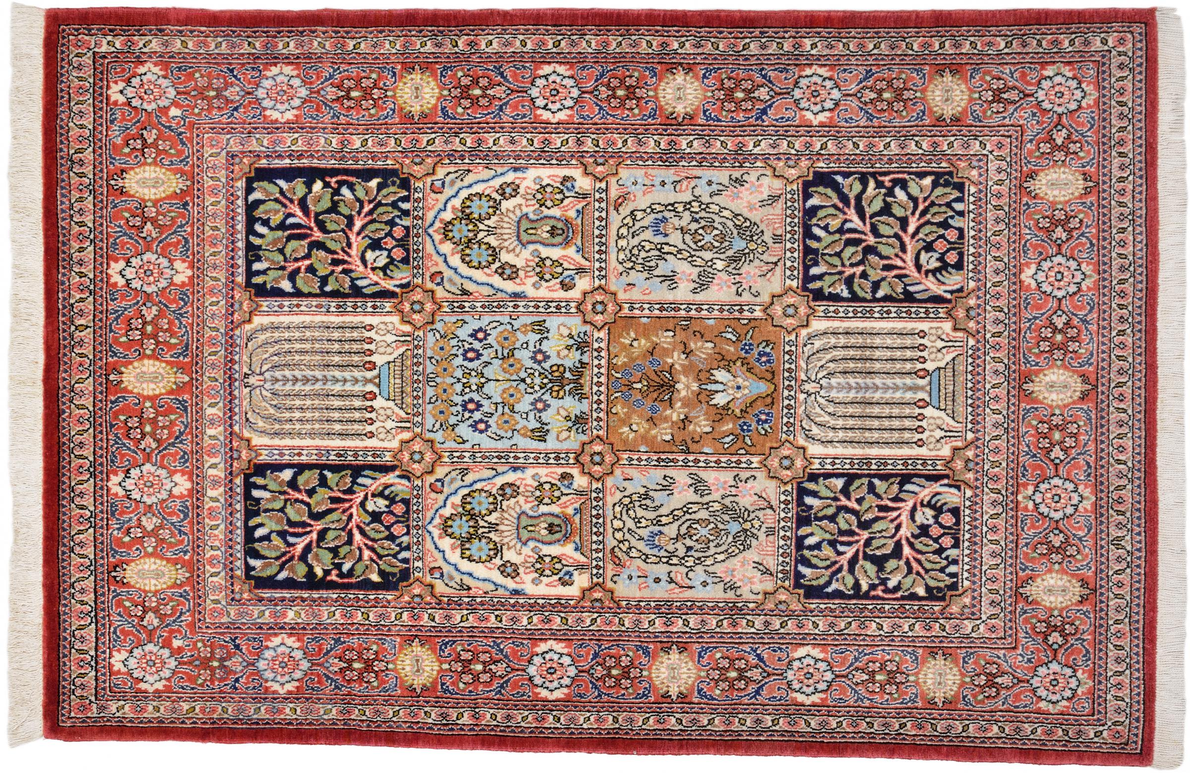 Esta Ghom Cork es una verdadera obra de arte de la artesanía. Su fino terciopelo y su urdimbre complacen a cualquier conocedor de alfombras. Esta alfombra persa fue elaborada en la ciudad santa de Ghom, con la más fina lana de corcho existente. Sus motivos y diseño hacen palpitar corazones. Una alfombra persa no podría ser más hermosa.