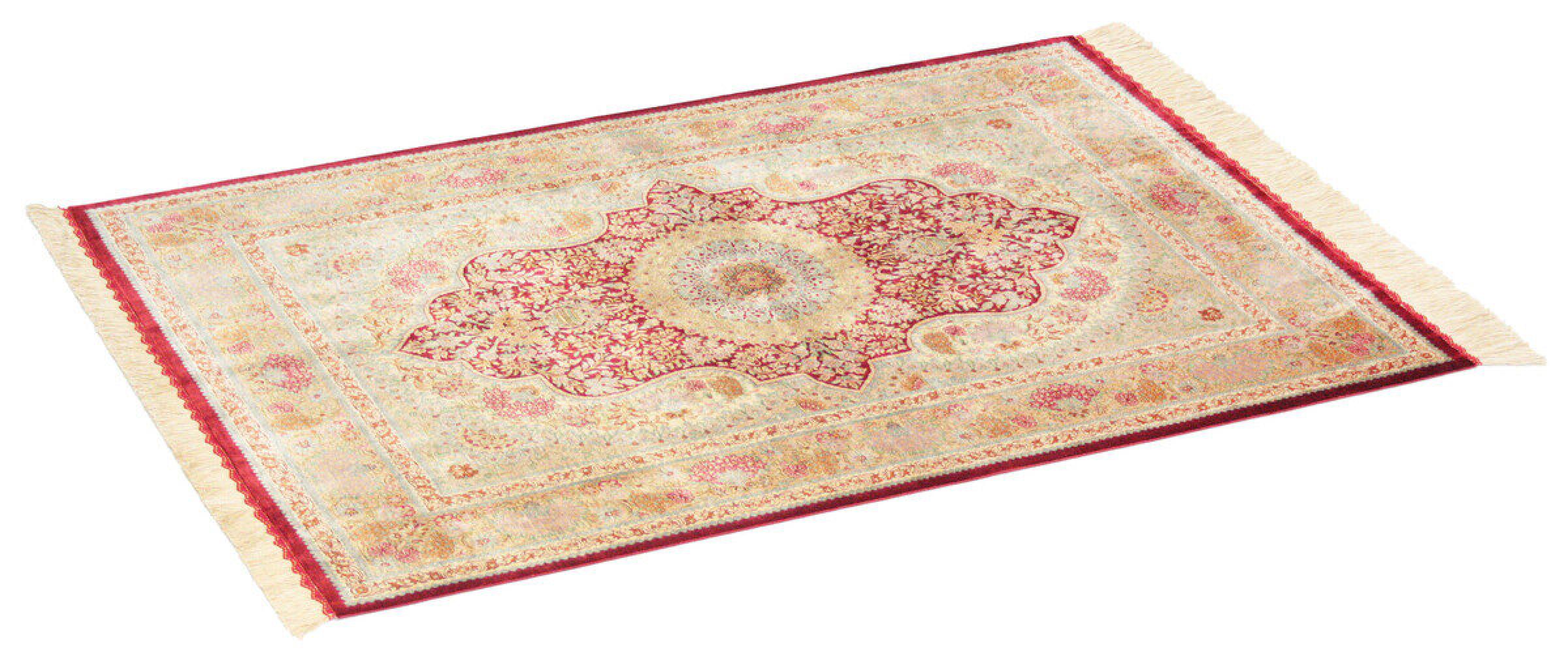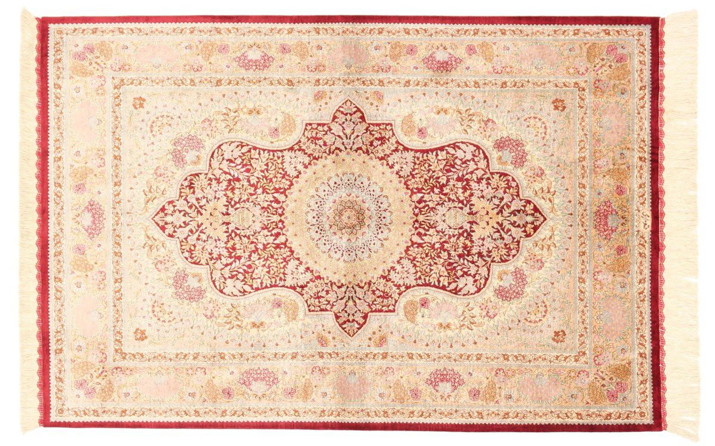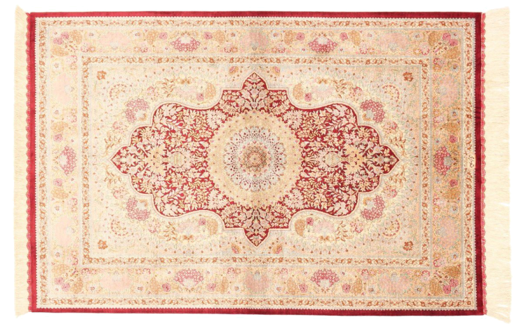 Alfombra número: 24412001157226 Tamaño: 147x100 cm Espesor: alrededor de 3 mm Nudos: 1 000 000 / m² Elaboración: Anudado a mano Crespón: Seda Urdimbre: Seda Origen: Persia / Iran Edad: Nuevo Peso: alrededor de 3 kg Cantidad en stock: Única - Solo 1 en stock