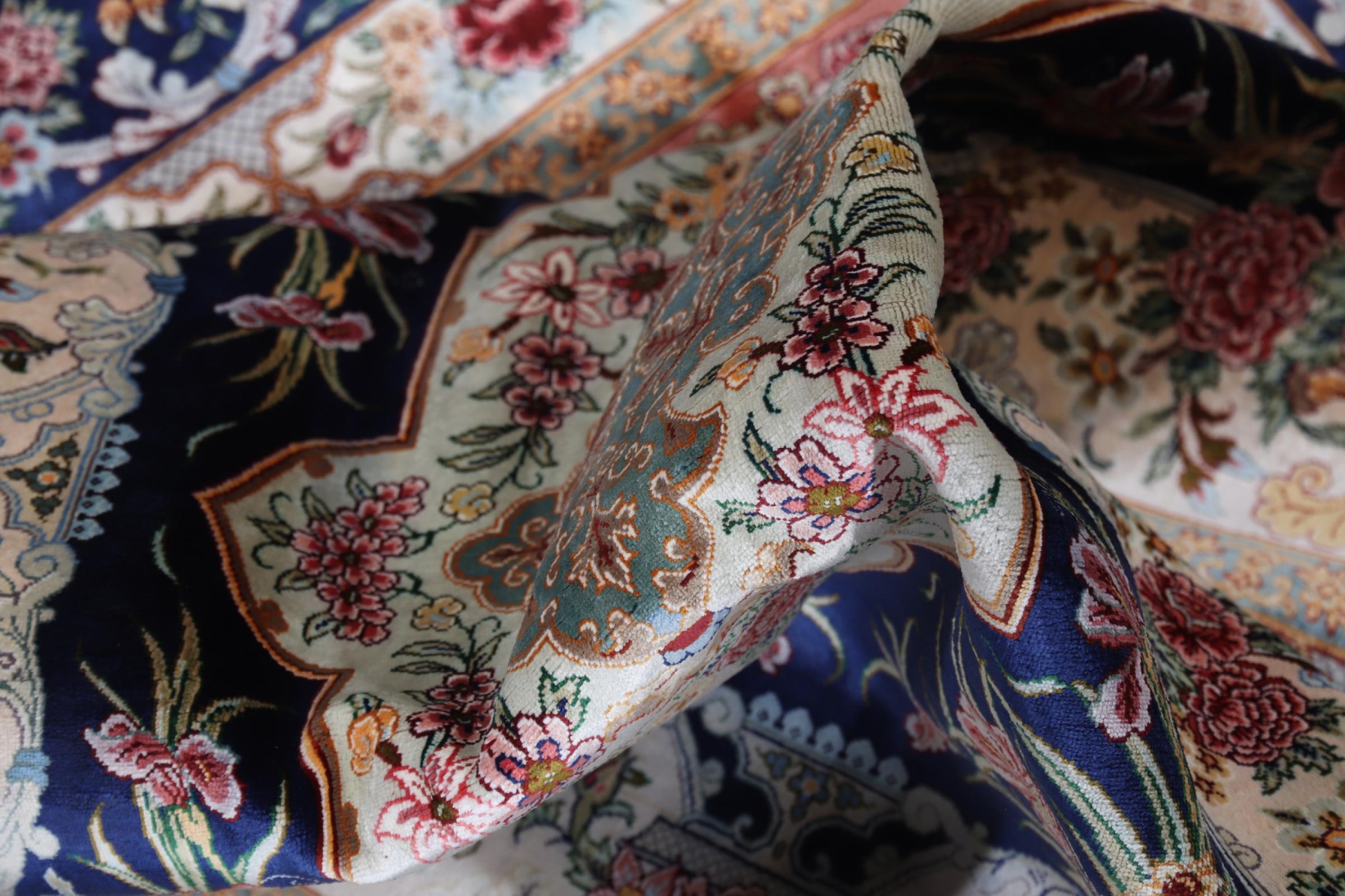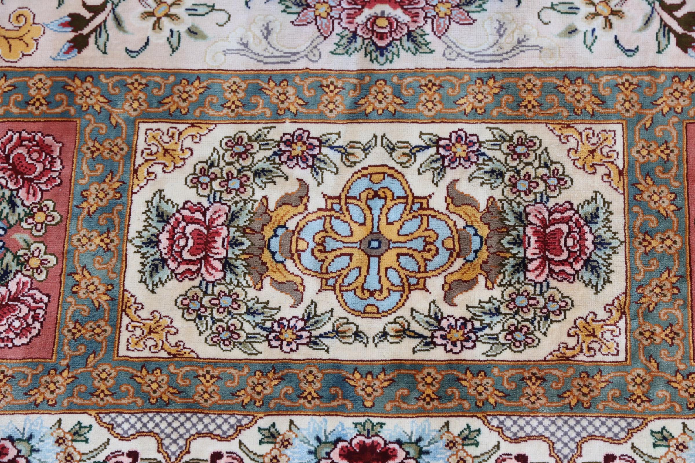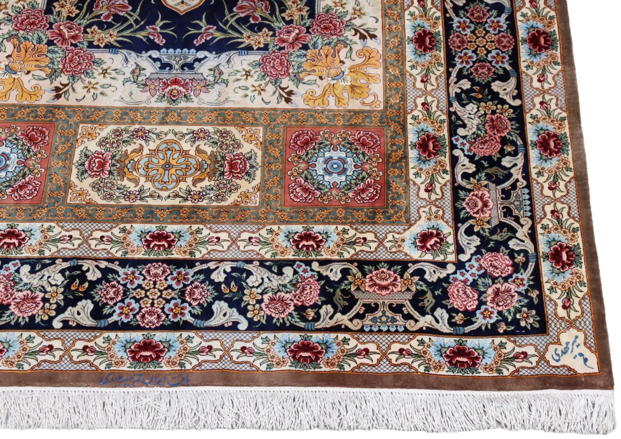 Esta alfombra de seda Ghom es puro lujo. Sus adornos y su pura seda natural lo dicen todo. Aquí encontrará Oriente en toda su perfección para su hogar. Una alfombra de seda de Ghom impresiona incluso a los coleccionistas de arte de alfombras persas. La seda permite que los colores brillen en las más diversas facetas según la incidencia de la luz. Esto convierte a esta alfombra persa en una atracción inolvidable y hará que su habitación brille en un ambiente acogedor y de gran calidad.
