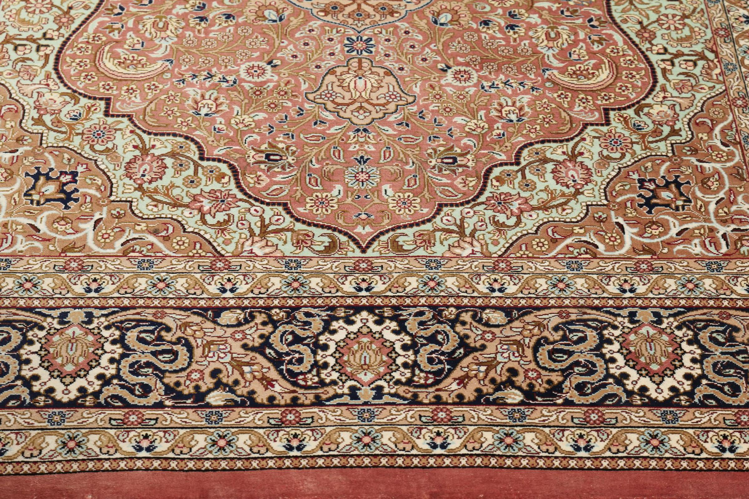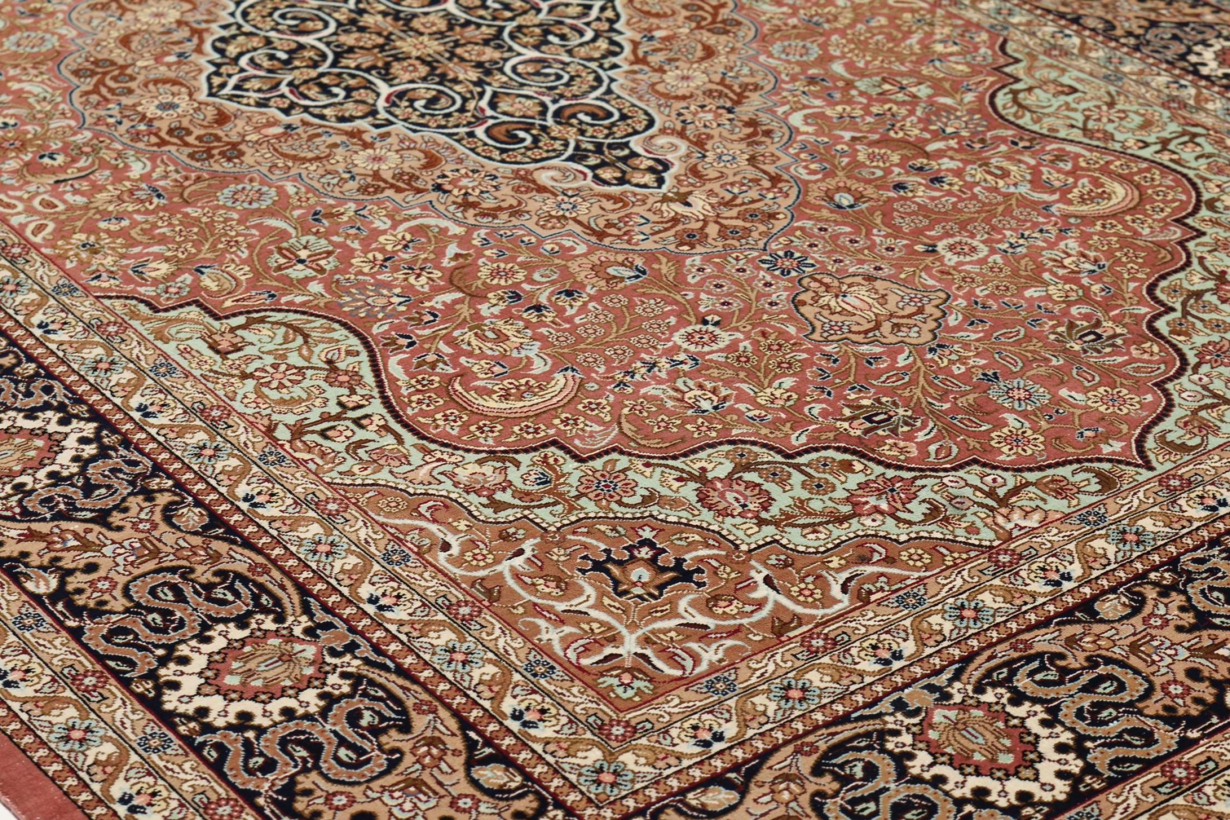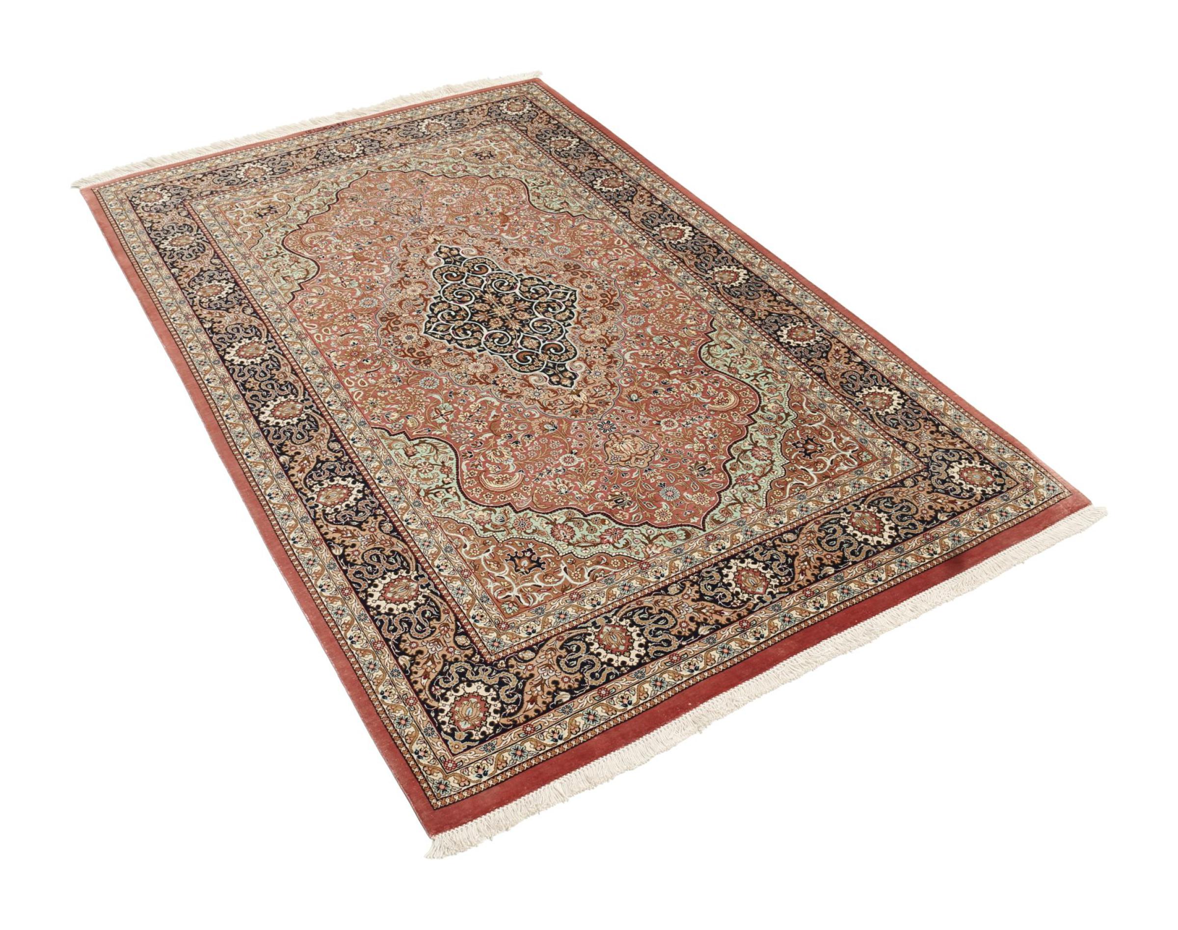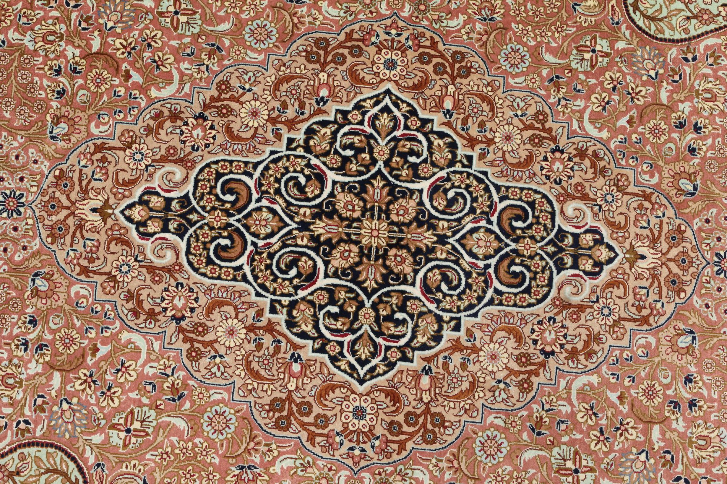 Esta alfombra de seda Ghom es puro lujo. Sus adornos y su pura seda natural lo dicen todo. Aquí encontrará Oriente en toda su perfección para su hogar. Una alfombra de seda de Ghom impresiona incluso a los coleccionistas de arte de alfombras persas. La seda permite que los colores brillen en las más diversas facetas según la incidencia de la luz. Esto convierte a esta alfombra persa en una atracción inolvidable y hará que su habitación brille en un ambiente acogedor y de gran calidad.