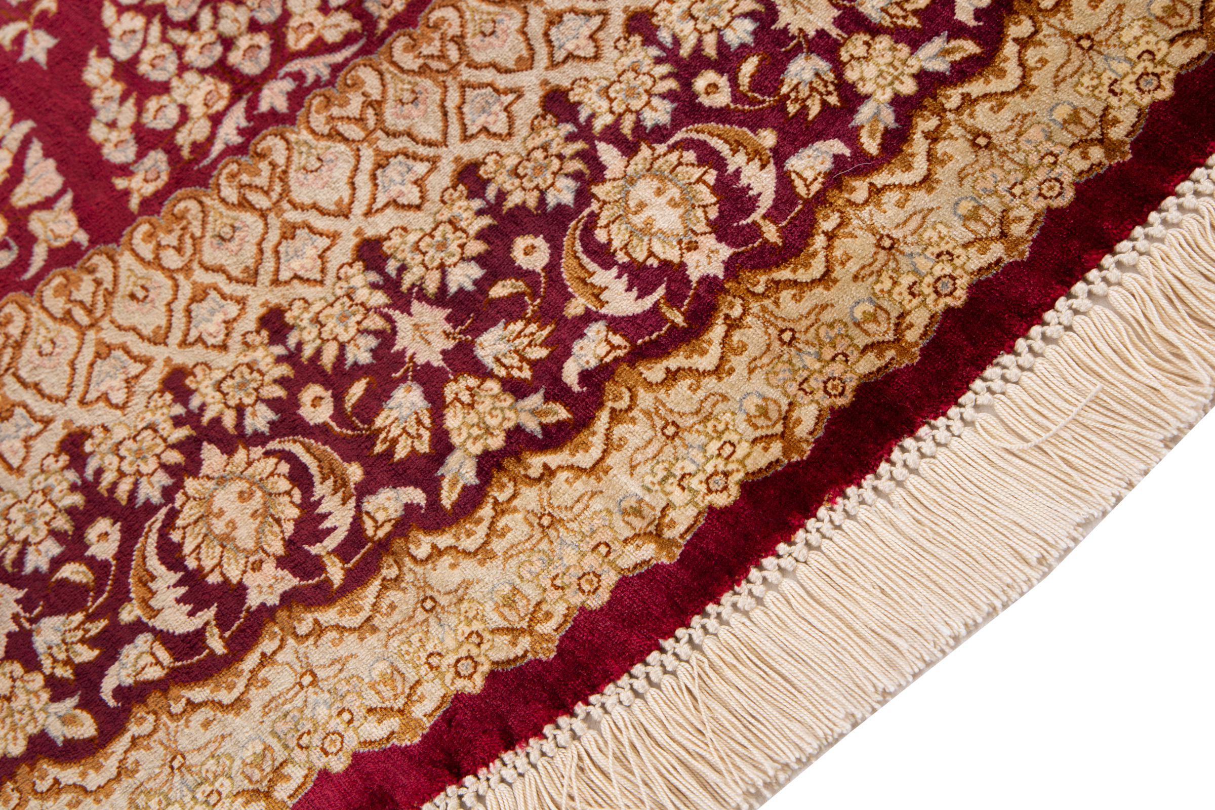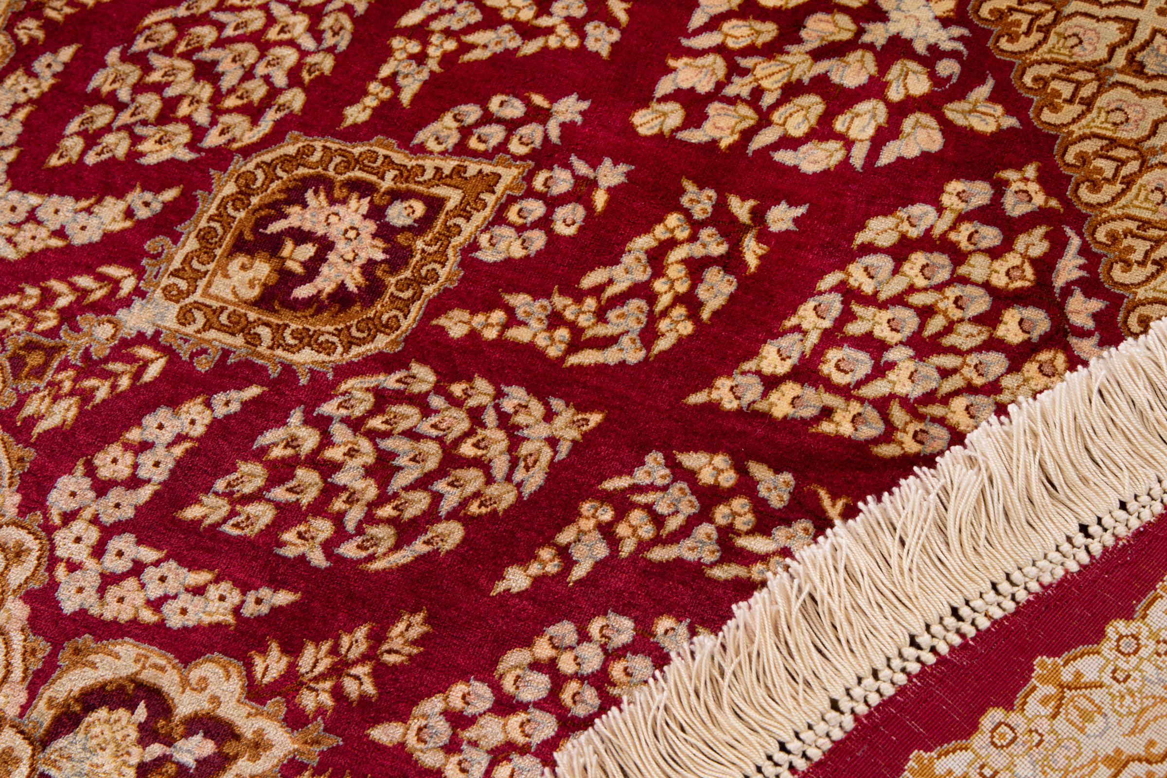 Esta alfombra de seda Ghom es puro lujo. Sus adornos y su pura seda natural lo dicen todo. Aquí encontrará Oriente en toda su perfección para su hogar. Una alfombra de seda de Ghom impresiona incluso a los coleccionistas de arte de alfombras persas. La seda permite que los colores brillen en las más diversas facetas según la incidencia de la luz. Esto convierte a esta alfombra persa en una atracción inolvidable y hará que su habitación brille en un ambiente acogedor y de gran calidad.
