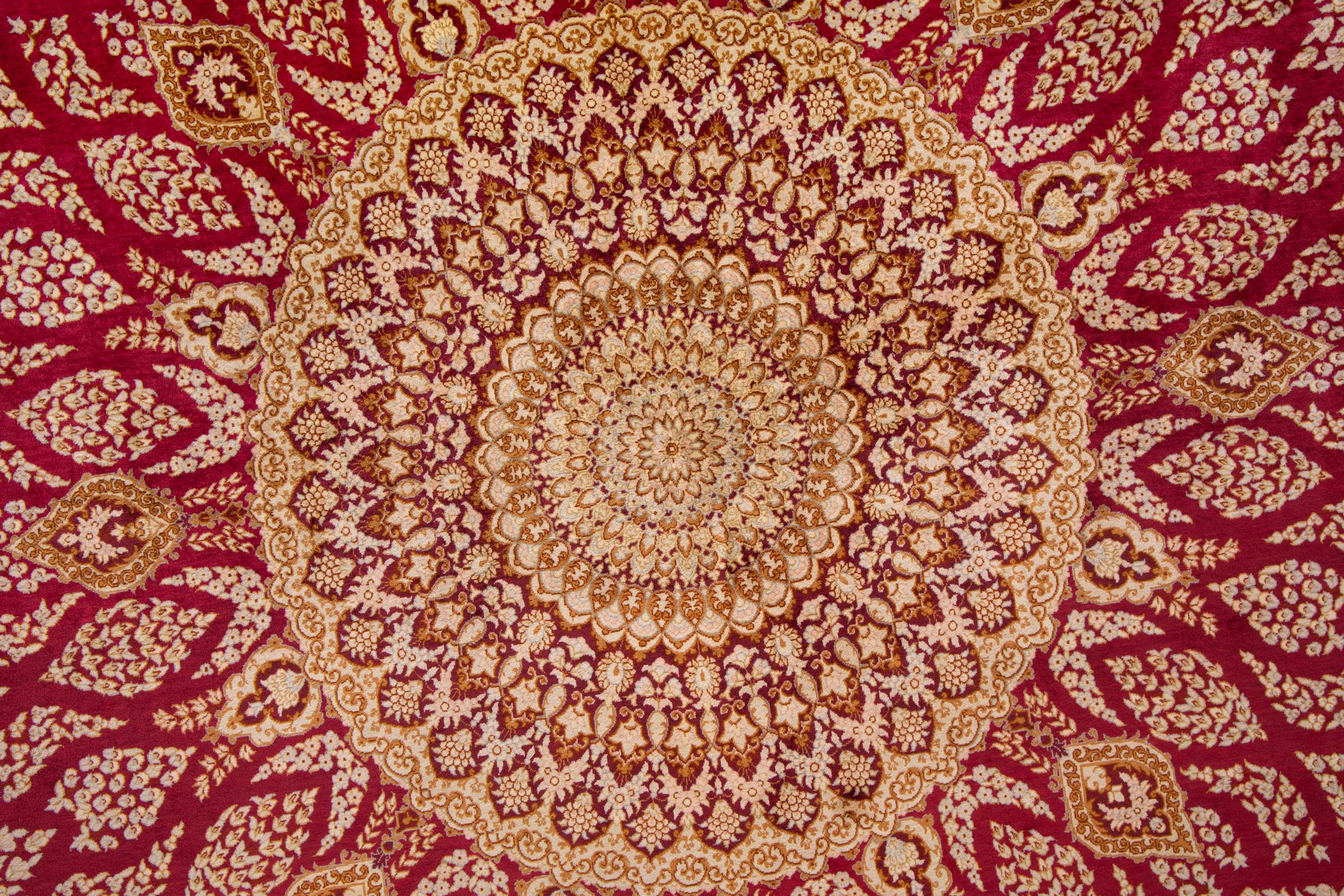 Alfombra número: 29271700967208 Tamaño: 196x193 cm Espesor: alrededor de 3 mm Nudos: 810 000 / m² Elaboración: Anudado a mano Crespón: Seda Urdimbre: Seda Origen: Persia / Iran Edad: Nuevo Peso: alrededor de 8 kg Cantidad en stock: Única - Solo 1 en stock