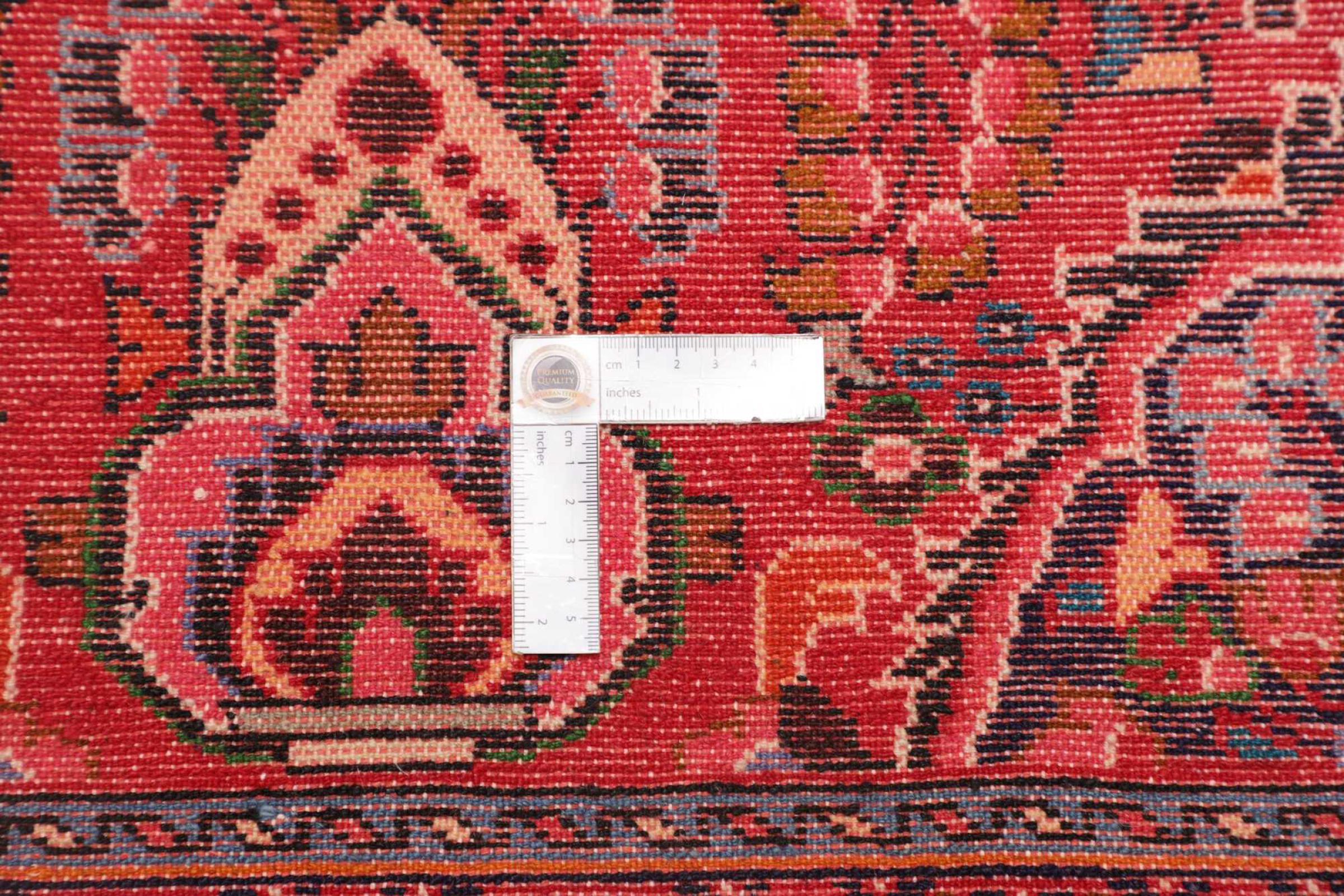 Esta alfombra está hecha de lana de oveja hilada a mano de la más alta calidad. Especialmente en Irán (antigua Persia), la lana de Afganistán y Pakistán sigue siendo hilada a mano antes de que comience el anudado de la alfombra. La lana ha demostrado ser un material natural y extremadamente resistente a lo largo de los siglos. Entre otras cosas, tiene propiedades repelentes de la suciedad y aislantes del calor. Al mismo tiempo, la lana es incomparablemente suave y tiene un brillo natural.