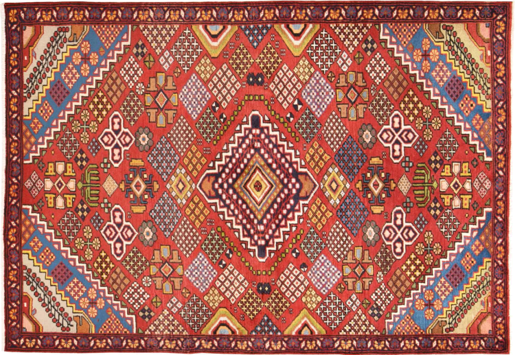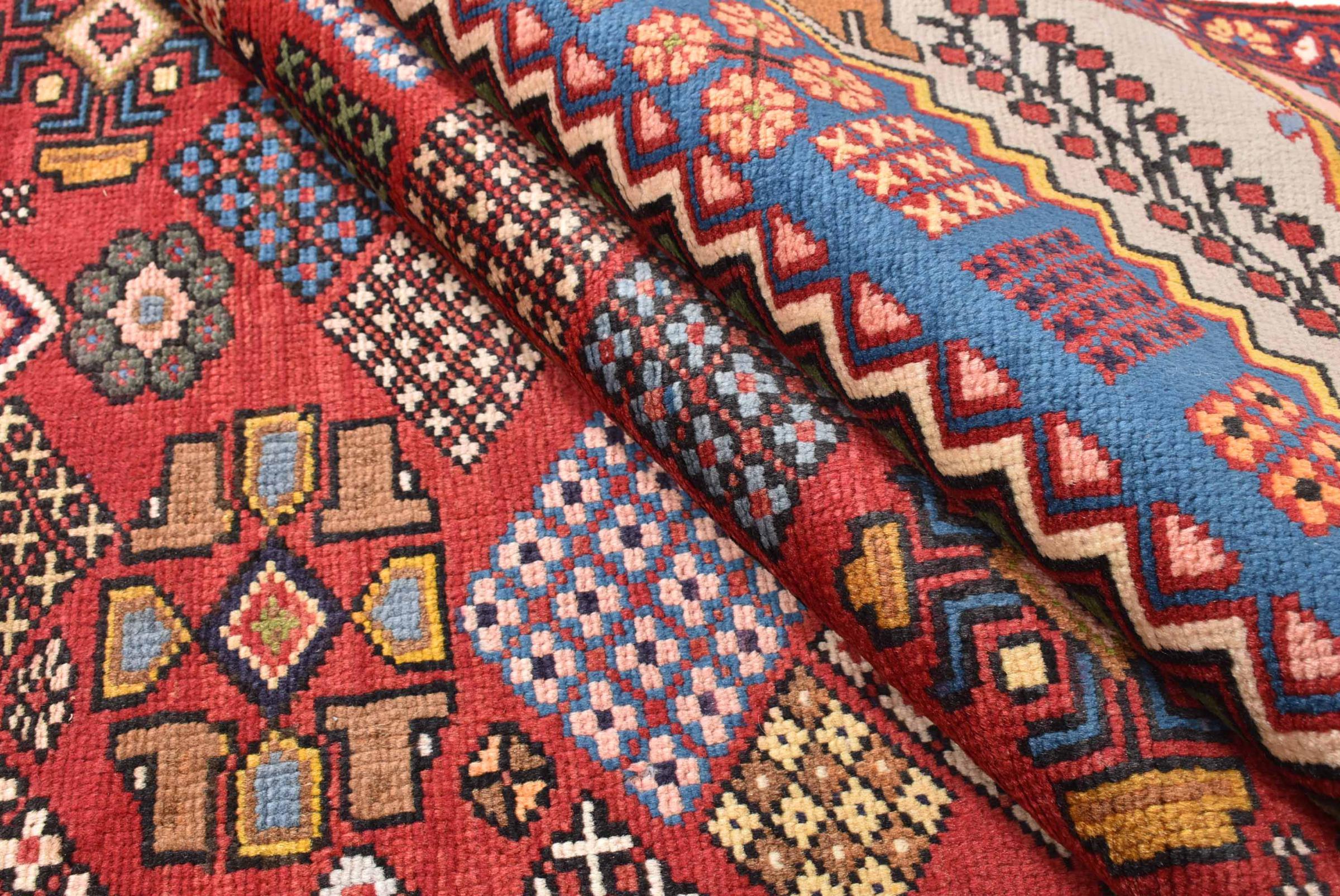 Esta alfombra pertenece a alfombras de pueblos y nómadas de Irán, antiguamente Persia. Este tipo de alfombra se anuda a mano en ciudades y pueblos más pequeños según la antigua tradición. Incluso los nómadas siguen anudando alfombras persas al aire libre. Las alfombras están anudadas sin un patrón y completamente desde la cabeza. Se caracterizan por los ornamentos clásicos, que están dispuestos en patrones rectos y geométricos. Gracias a su origen cultural-tradicional, estas alfombras tienen un carácter único que encarna la antigua Persia.