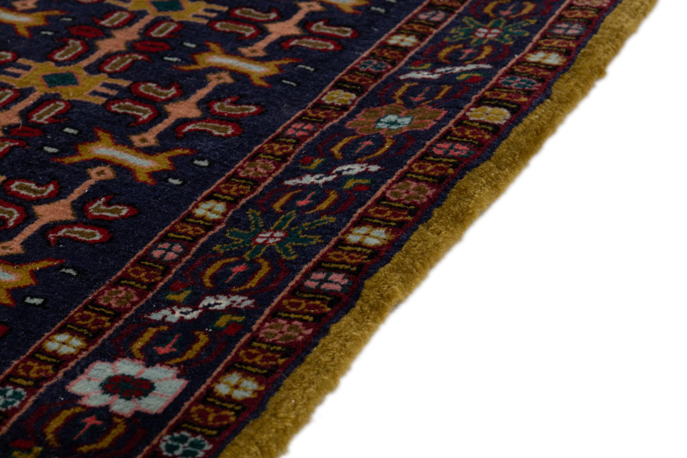 Esta alfombra pertenece a alfombras de pueblos y nómadas de Irán, antiguamente Persia. Este tipo de alfombra se anuda a mano en ciudades y pueblos más pequeños según la antigua tradición. Incluso los nómadas siguen anudando alfombras persas al aire libre. Las alfombras están anudadas sin un patrón y completamente desde la cabeza. Se caracterizan por los ornamentos clásicos, que están dispuestos en patrones rectos y geométricos. Gracias a su origen cultural-tradicional, estas alfombras tienen un carácter único que encarna la antigua Persia.