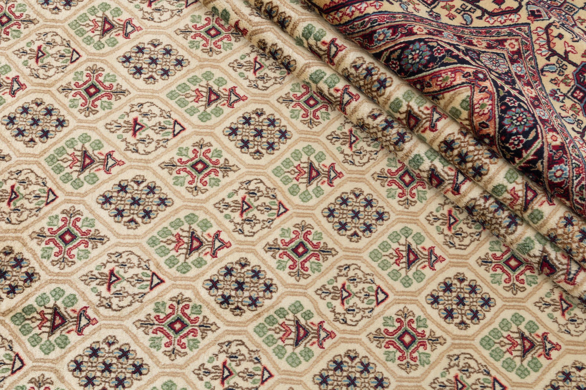 Alfombra número: 245962001187 Tamaño: 370x290 cm Espesor: alrededor de 12 mm Nudos: 640 000 / m² Elaboración: Anudado a mano Crespón: Lana de corcho Urdimbre: Algodón Origen: Persia / Iran Edad: Nuevo Peso: alrededor de 43 kg También conocido como Huseinabad Cantidad en stock: Única - Solo 1 en stock