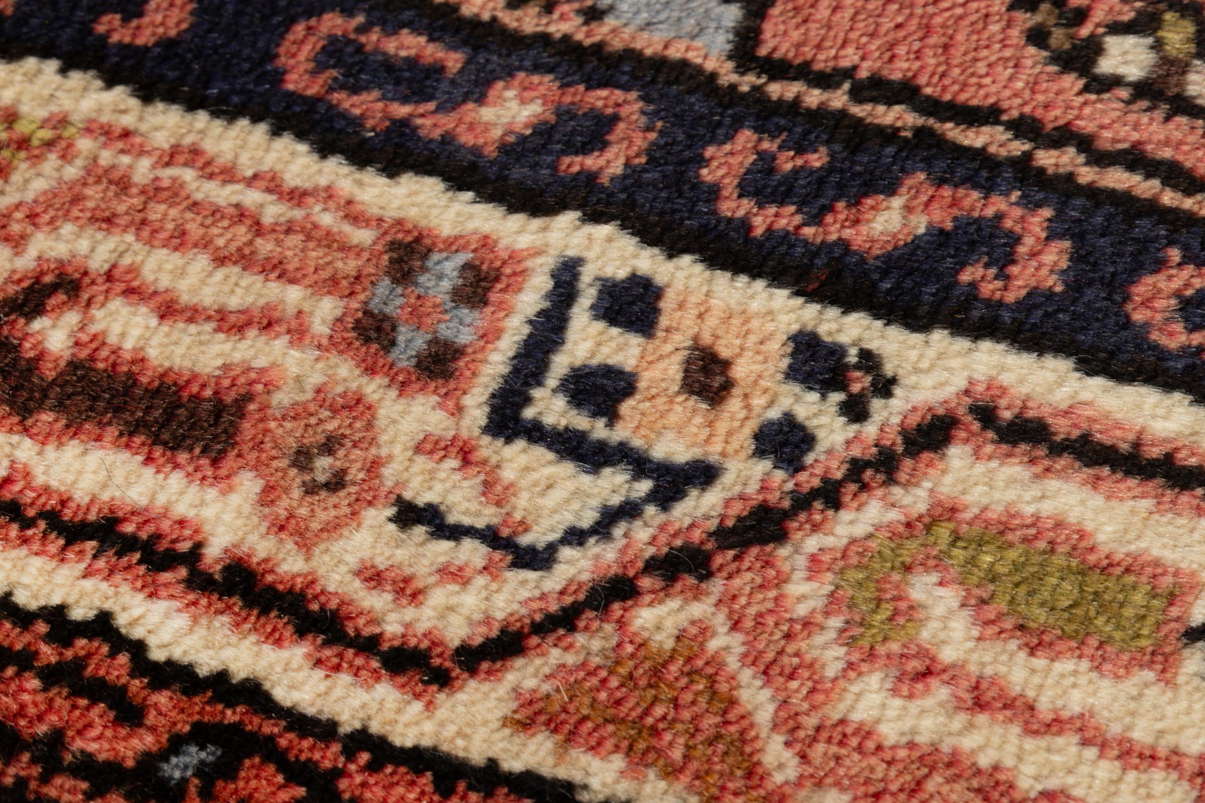 Esta alfombra pertenece a alfombras de pueblos y nómadas de Irán, antiguamente Persia. Este tipo de alfombra se anuda a mano en ciudades y pueblos más pequeños según la antigua tradición. Incluso los nómadas siguen anudando alfombras persas al aire libre. Las alfombras están anudadas sin un patrón y completamente desde la cabeza. Se caracterizan por los ornamentos clásicos, que están dispuestos en patrones rectos y geométricos. Gracias a su origen cultural-tradicional, estas alfombras tienen un carácter único que encarna la antigua Persia.
