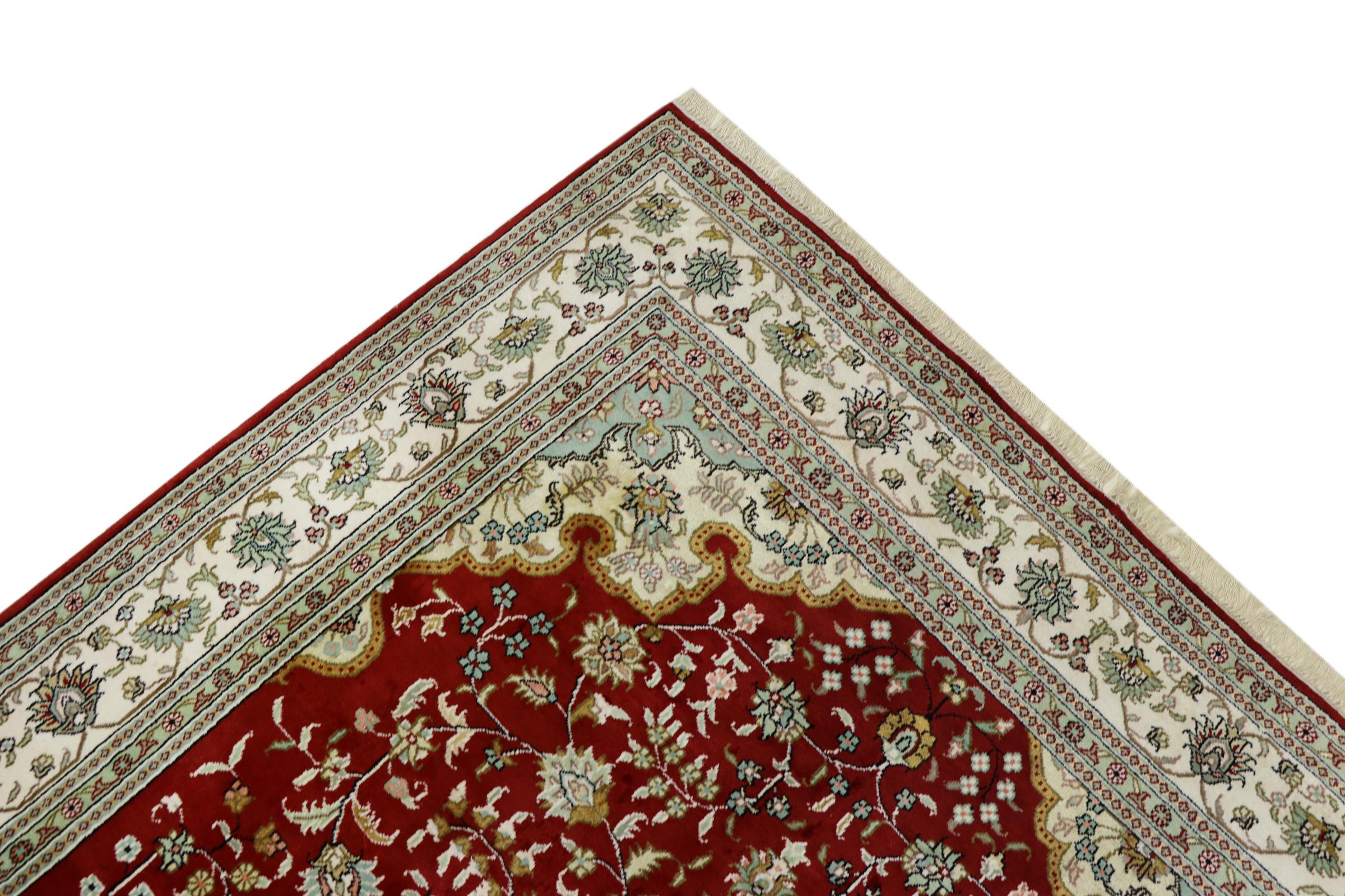 Esta alfombra china está hecha de seda y anudada a mano. Es capaz de cautivar a cualquier admirador con sus hermosos hilados y diseños. Ésta es una verdadera porción de China para su hogar.