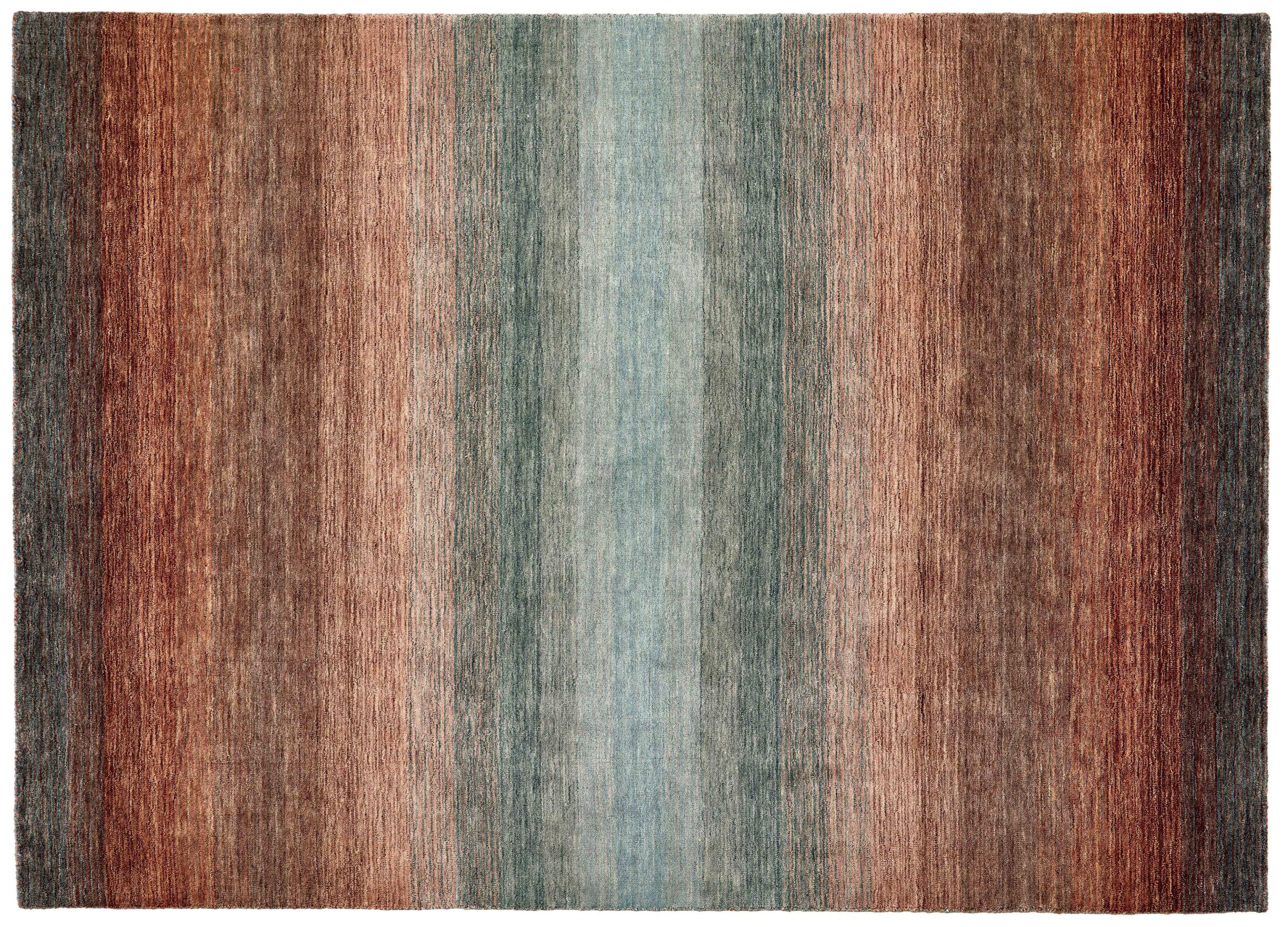 Esta alfombra de diseño hecha a mano recoge deliberadamente sutiles gradaciones de un determinado espectro de colores. Esto crea un diseño tranquilo y al mismo tiempo moderno. Se ha utilizado lana natural junto con viscosa para crear un hermoso brillo. Esto hace que la gama de colores sea realmente impresionante.