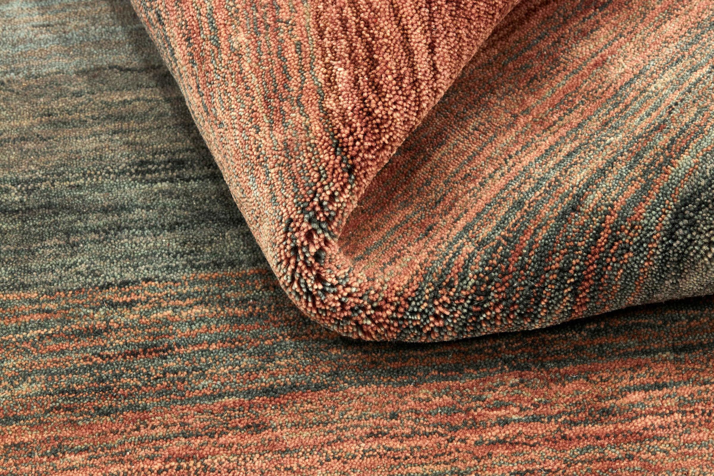 Esta alfombra de diseño hecha a mano recoge deliberadamente sutiles gradaciones de un determinado espectro de colores. Esto crea un diseño tranquilo y al mismo tiempo moderno. Se ha utilizado lana natural junto con viscosa para crear un hermoso brillo. Esto hace que la gama de colores sea realmente impresionante.