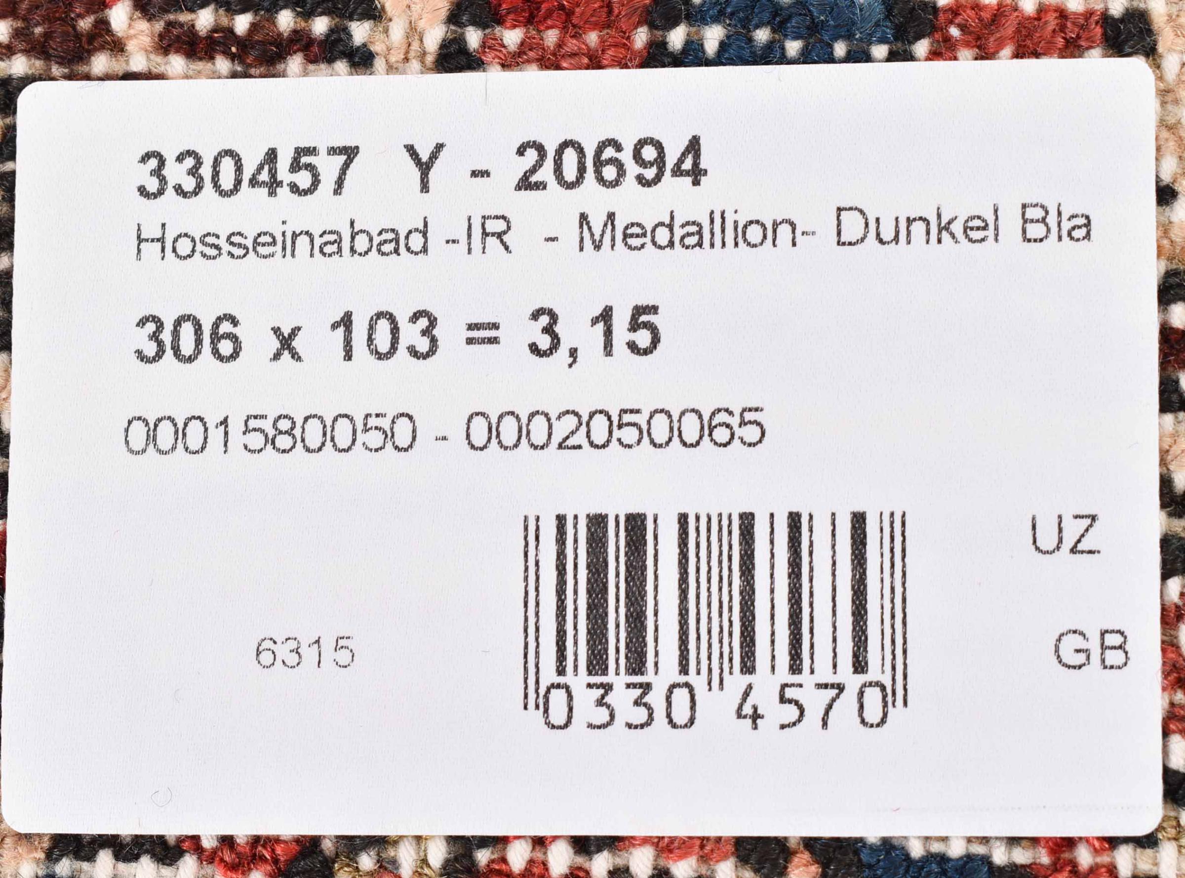 Alfombra número: 300889001729925 Tamaño: 305x102 cm Espesor: alrededor de 12 mm Nudos: 128 000 - 160 000 / m² Elaboración: Anudado a mano Crespón: Lana hilada a mano Urdimbre: Algodón Origen: Persia / Iran Edad: Nuevo Peso: alrededor de 11 kg También conocido como Huseinabad Cantidad en stock: Única - Solo 1 en stock