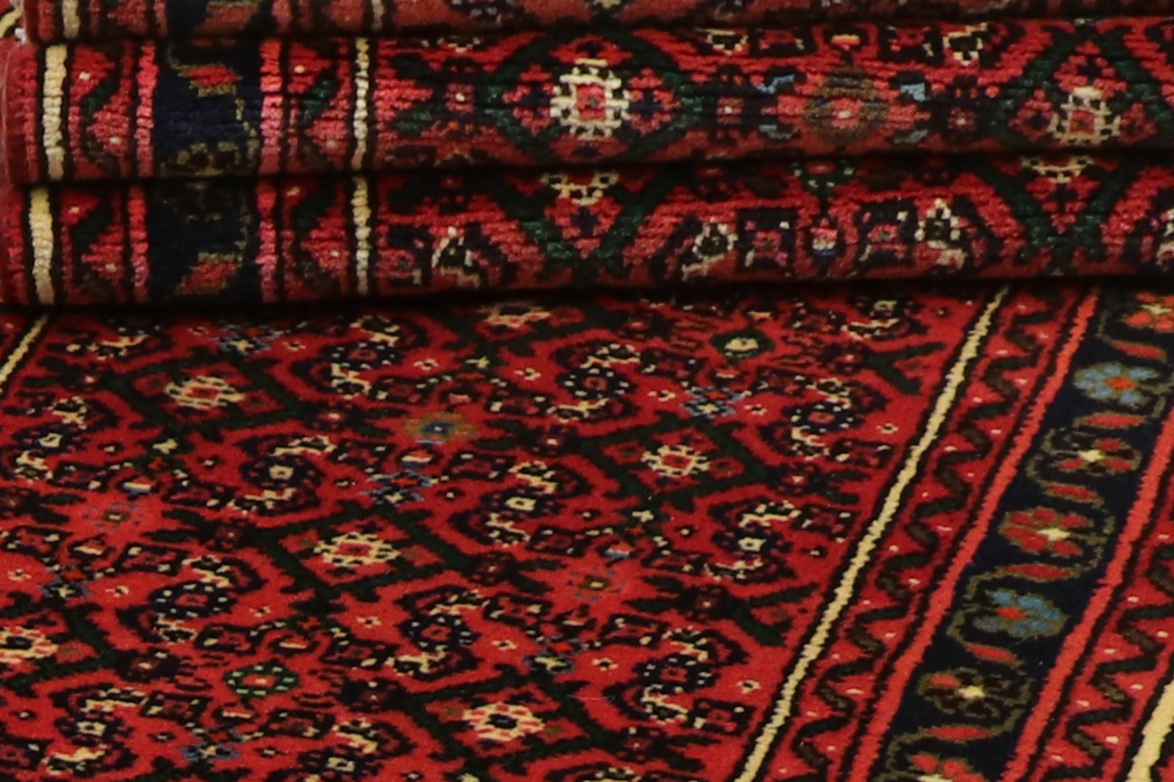 Esta Hosseinabad anudada a mano le ofrece el arte tradicional de la alfombra persa. Fue anudada a mano en la pequeña ciudad de Hosseinabad cerca de Hamadán. La alta calidad de las alfombras de esta región es característica. Experimente la sensación de una de estas alfombras orientales de Hosseinabad bajo sus propios pies.