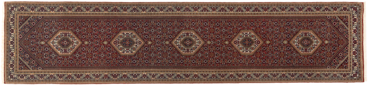 Alfombra número: 263329001614698 Tamaño: 368x83 cm Espesor: alrededor de 15 mm Nudos: 200 000 - 250 000 / m² Elaboración: Anudado a mano Crespón: Lana hilada a mano Urdimbre: Algodón Origen: India Edad: Nuevo Peso: alrededor de 15 kg Cantidad en stock: Única - Solo 1 en stock
