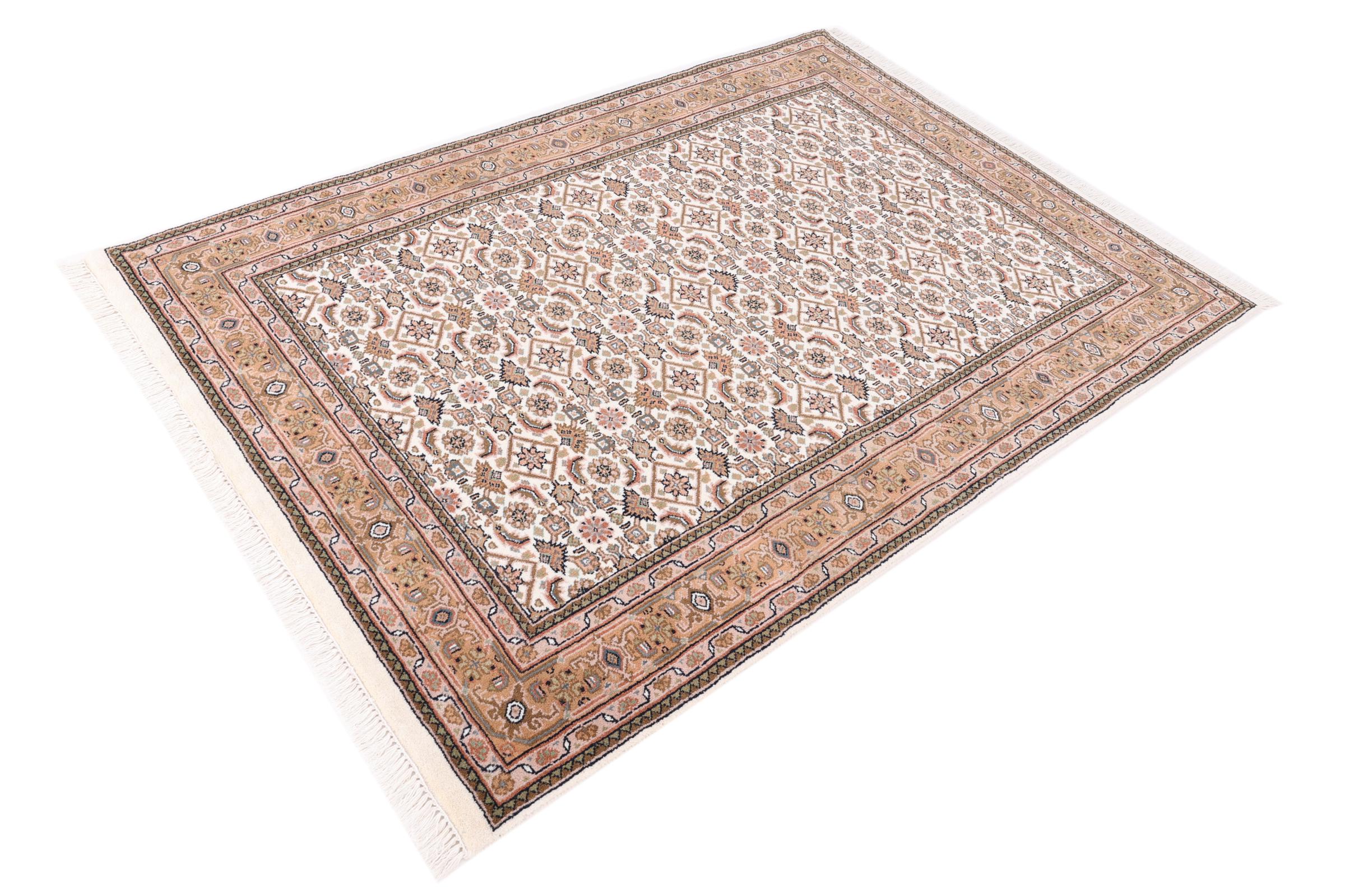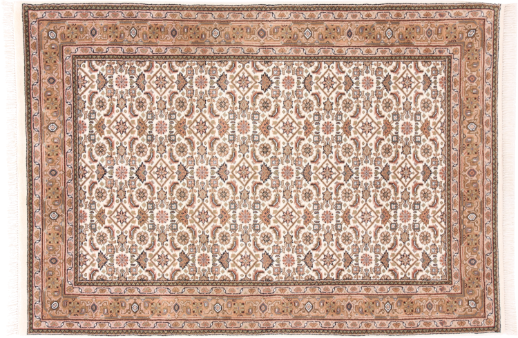 Alfombra número: 198155003996620 Tamaño: 180x122 cm Espesor: alrededor de 15 mm Nudos: 128 000 - 160 000 / m² Elaboración: Anudado a mano Crespón: Lana hilada a mano Urdimbre: Algodón Origen: India Edad: Nuevo Peso: alrededor de 11 kg Cantidad en stock: Única - Solo 1 en stock