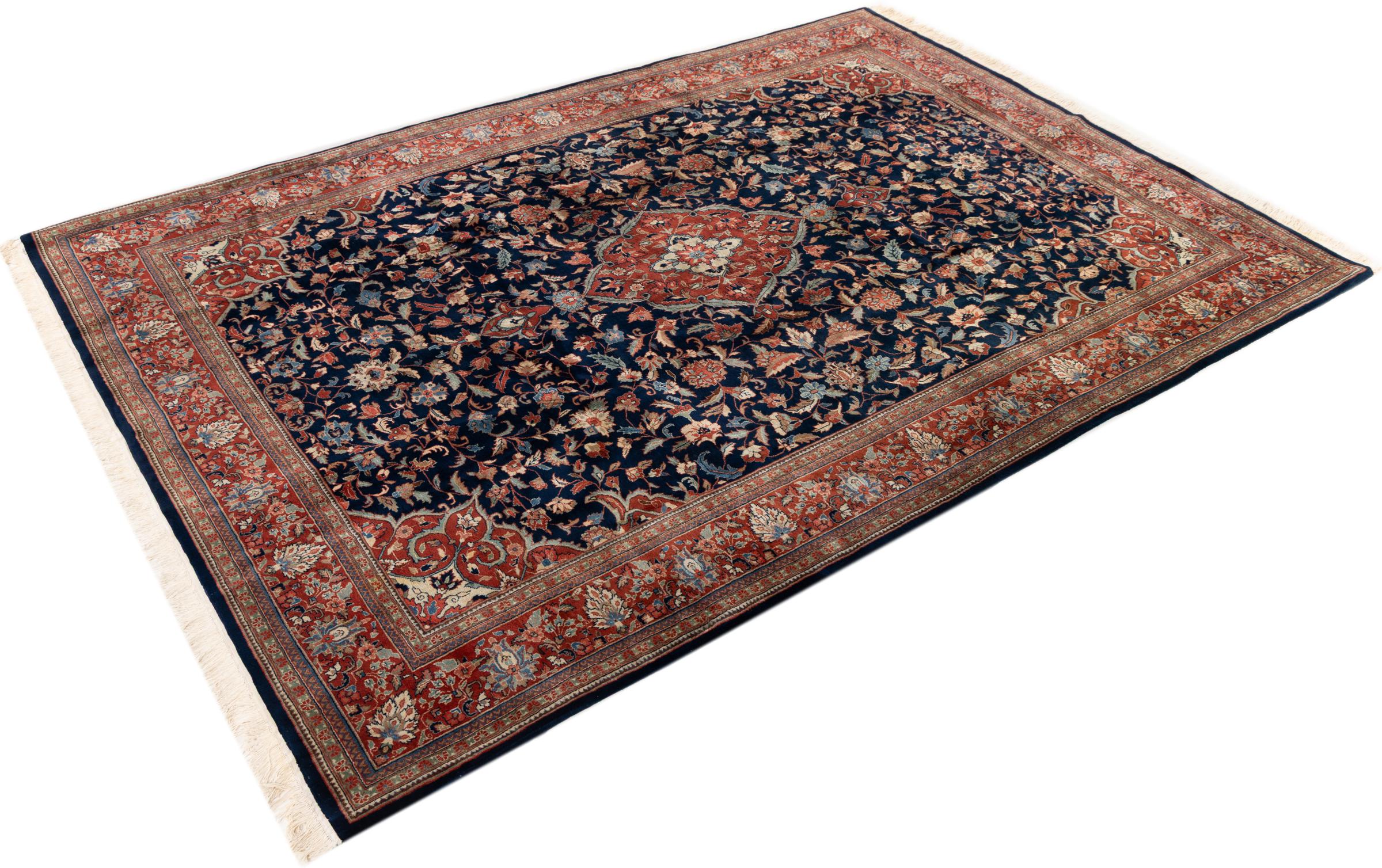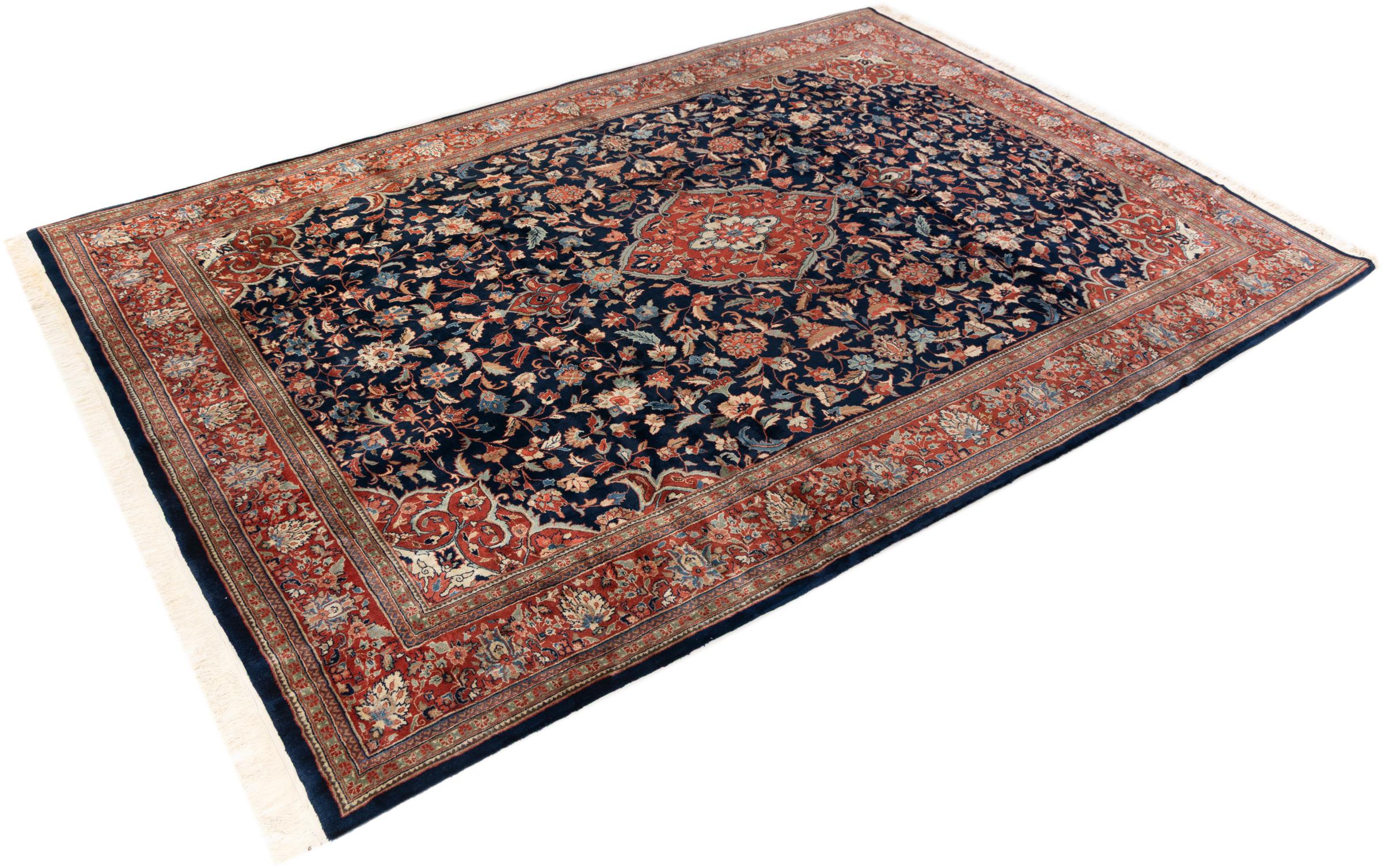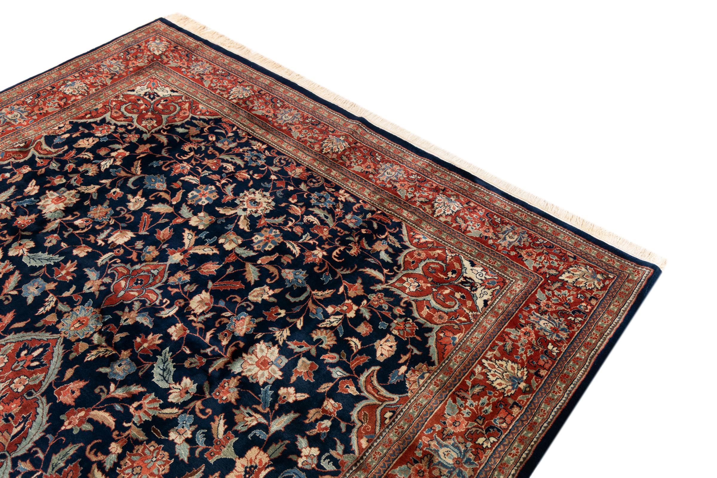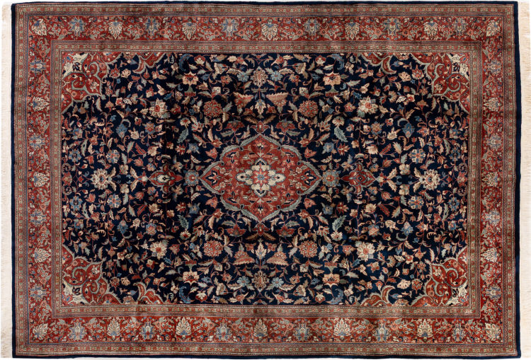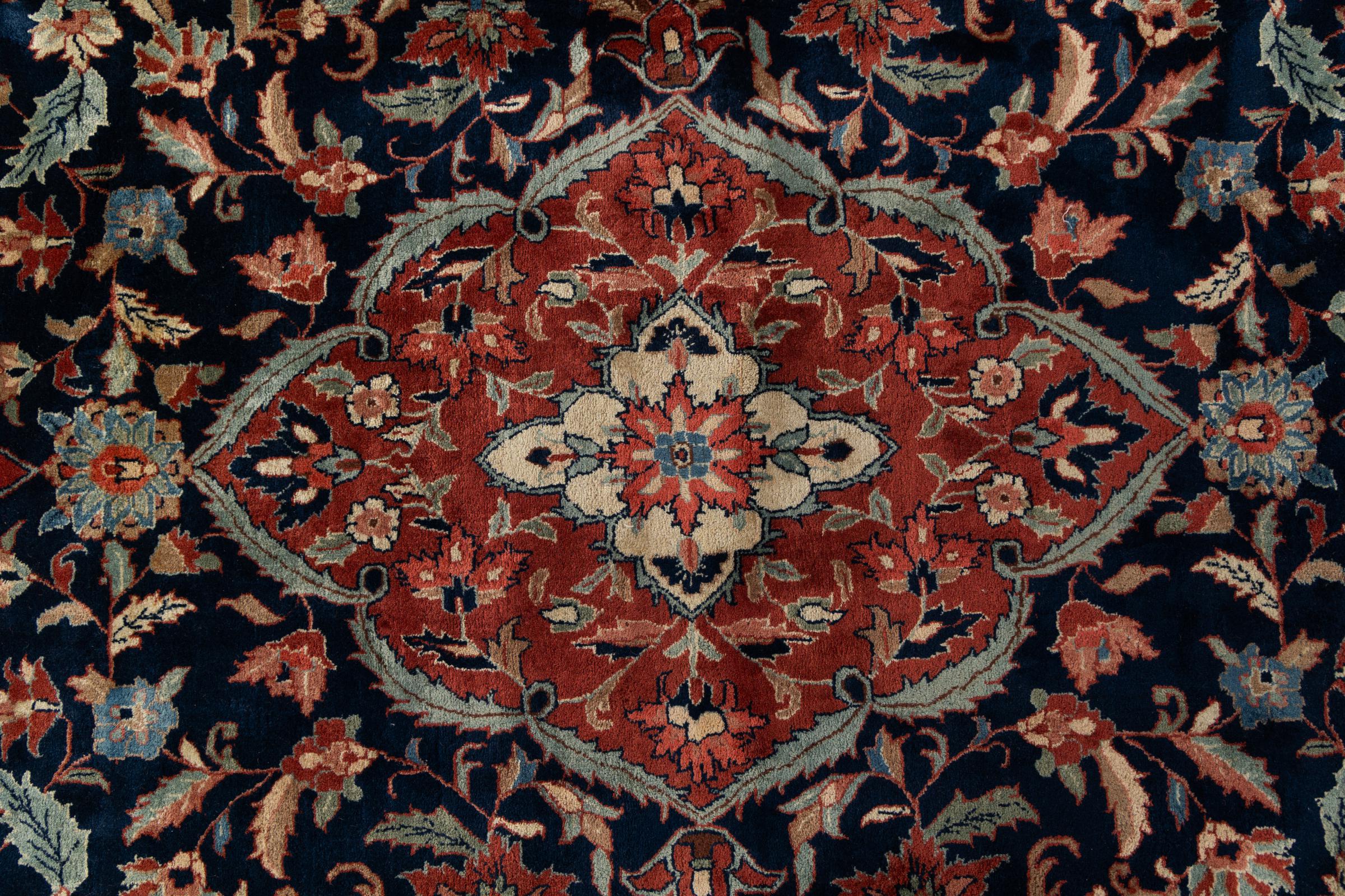 Esta alfombra Indo Sarough se anuda a mano de manera tradicional en la India. Es de alta calidad. Esta es una alfombra oriental a un precio inigualable, su diseño está inspirado en las alfombras persas de Sarough.