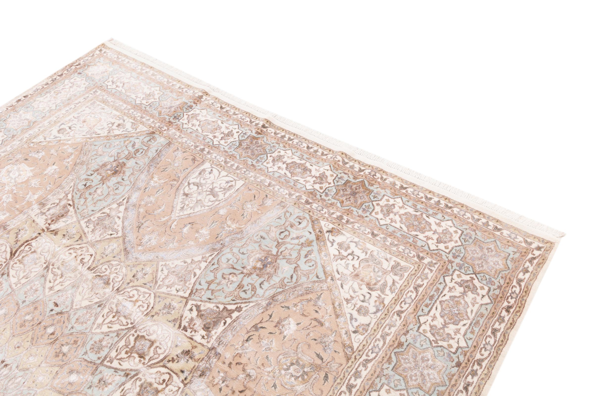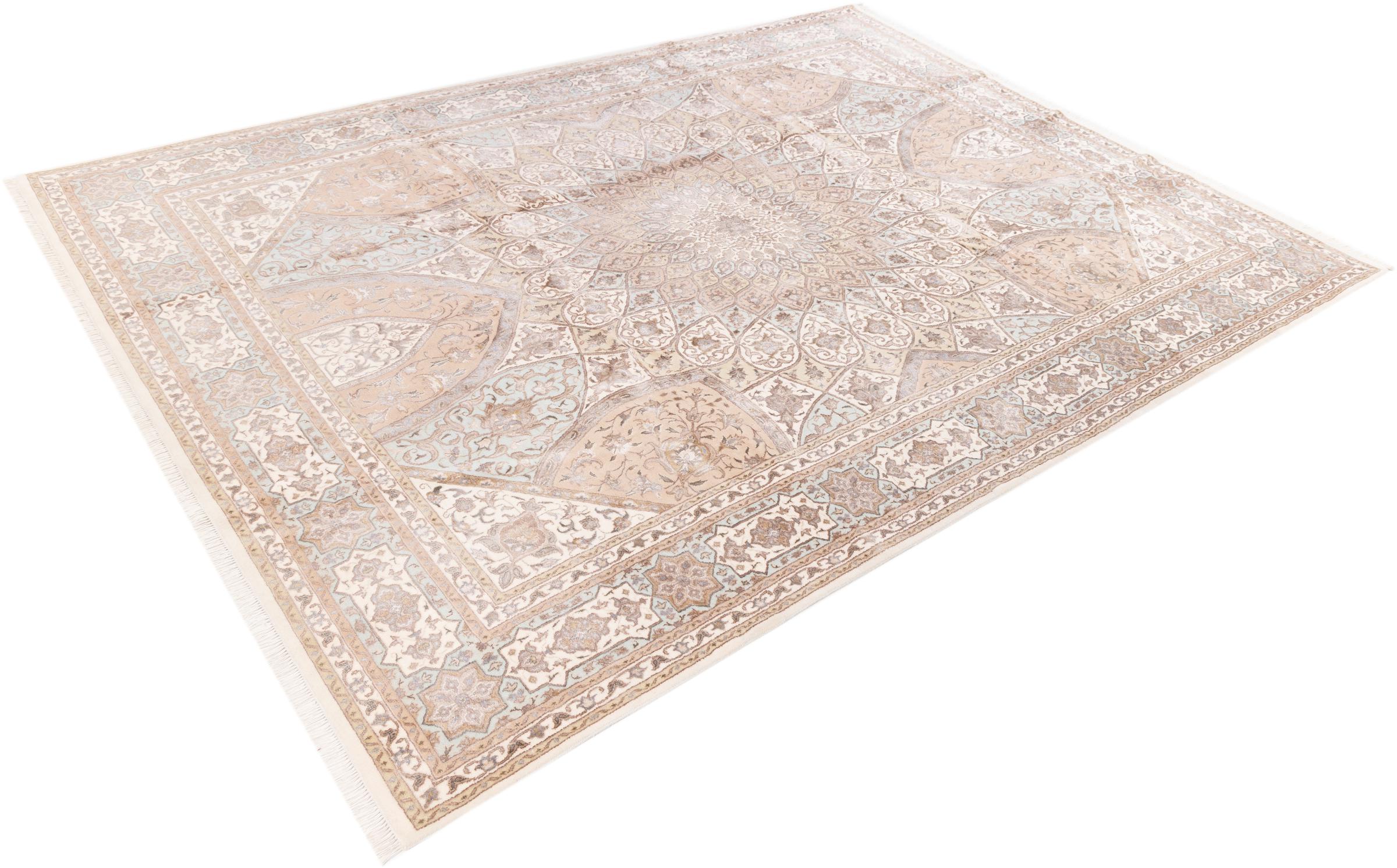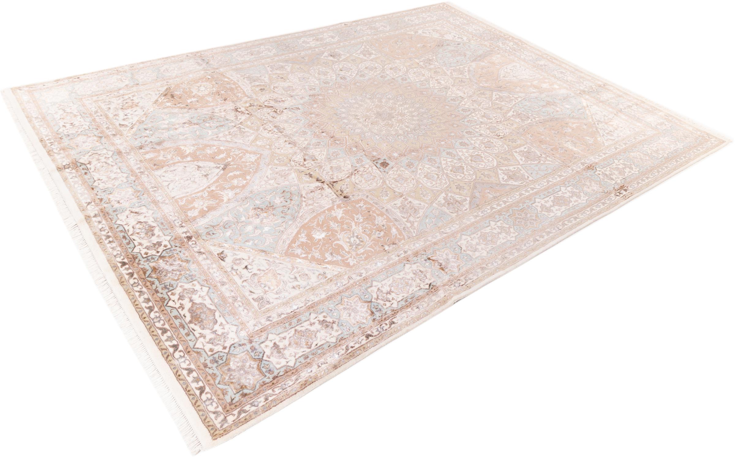 Alfombra número: 17487006 Tamaño: 360x270 cm Espesor: alrededor de 12 mm Nudos: 200 000 - 250 000 / m² Elaboración: Anudado a mano Crespón: Lana de oveja Urdimbre: Algodón Origen: India Edad: Nuevo Peso: alrededor de 39 kg También conocido como Indo Täbriz Cantidad en stock: Única - Solo 1 en stock
