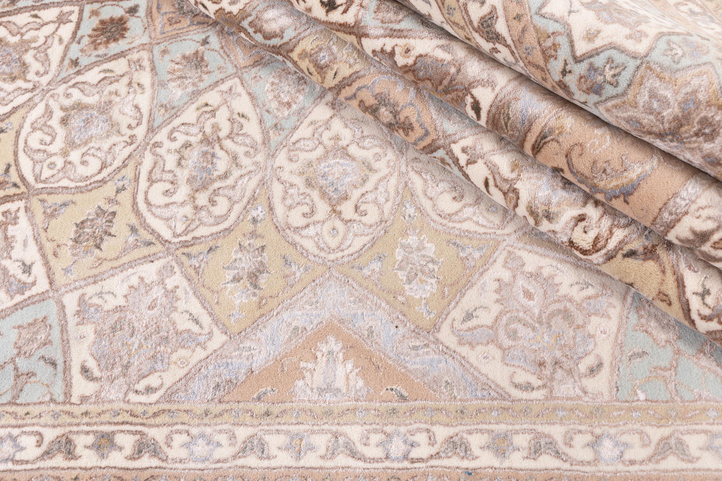 Este Indo Tabriz es un bello ejemplo de la artesanía india. Anudada a mano y fabricada con lana de alta calidad, le acompañará durante décadas. Como su nombre indica, sigue el modelo de las alfombras Tabriz persas originales. Esta alfombra es un fascinante trabajo de meses de anudado y artesanía.