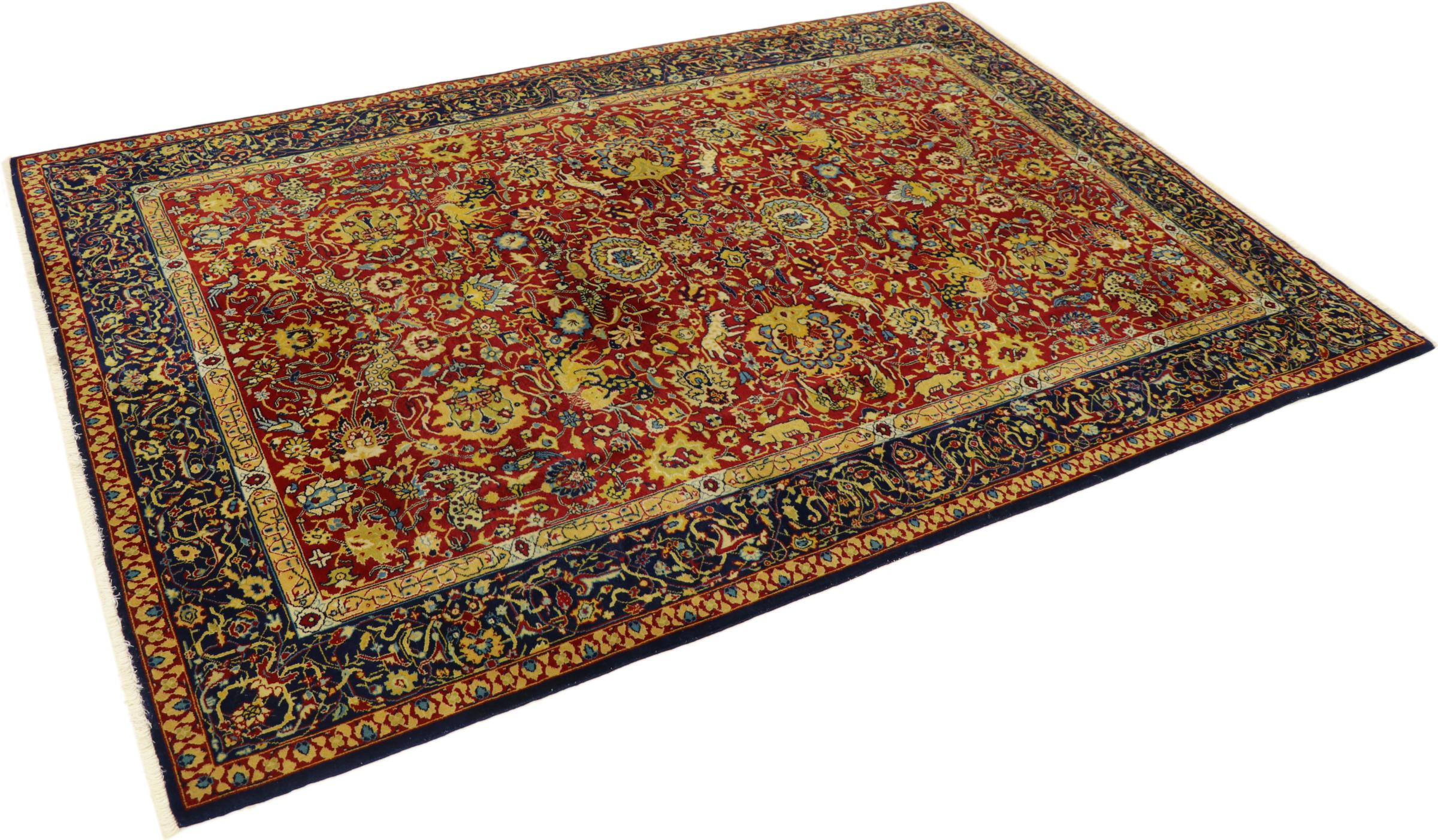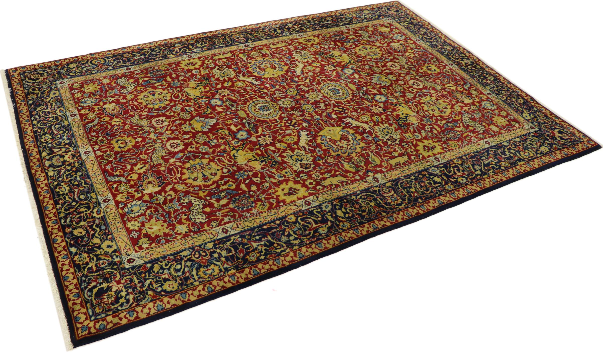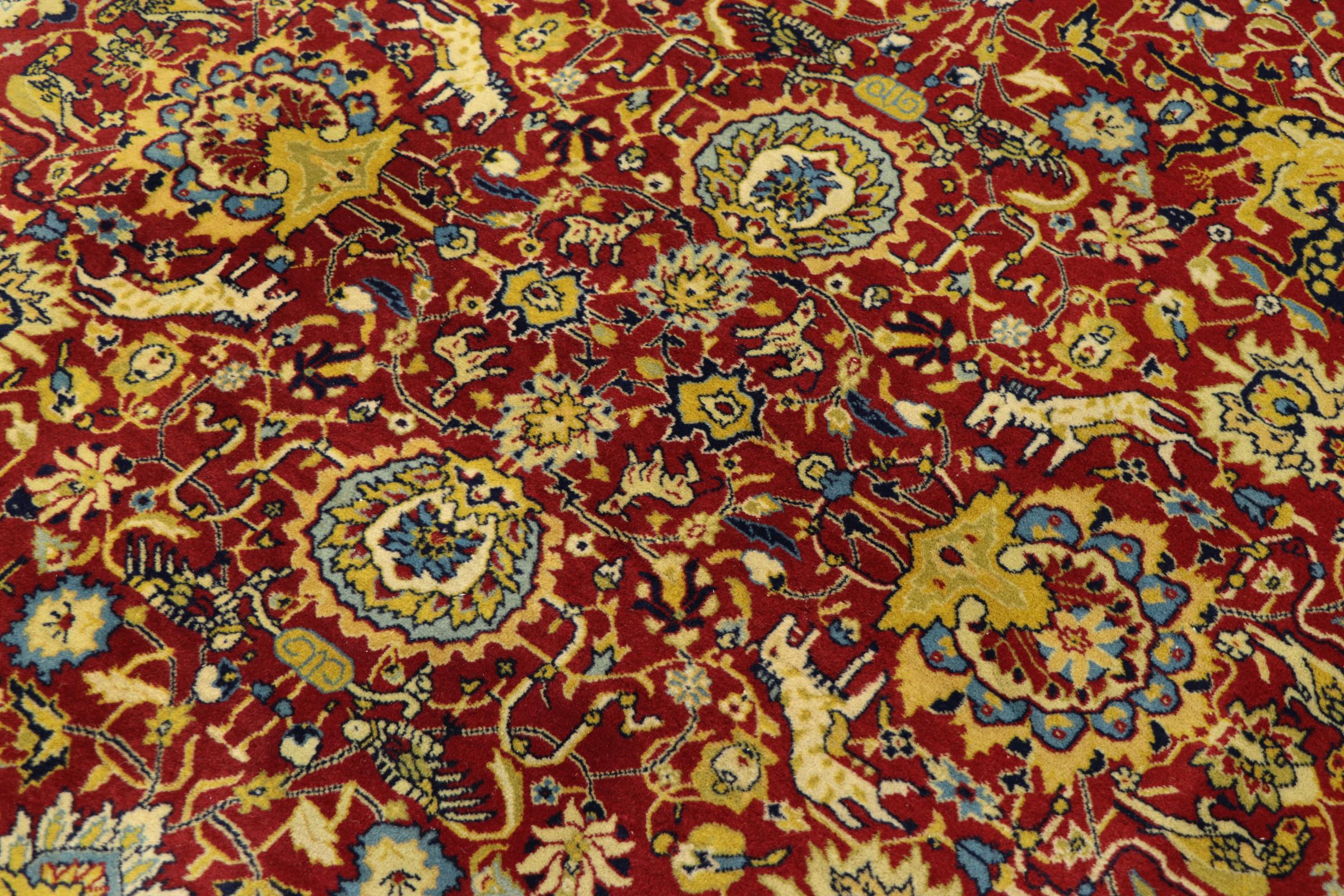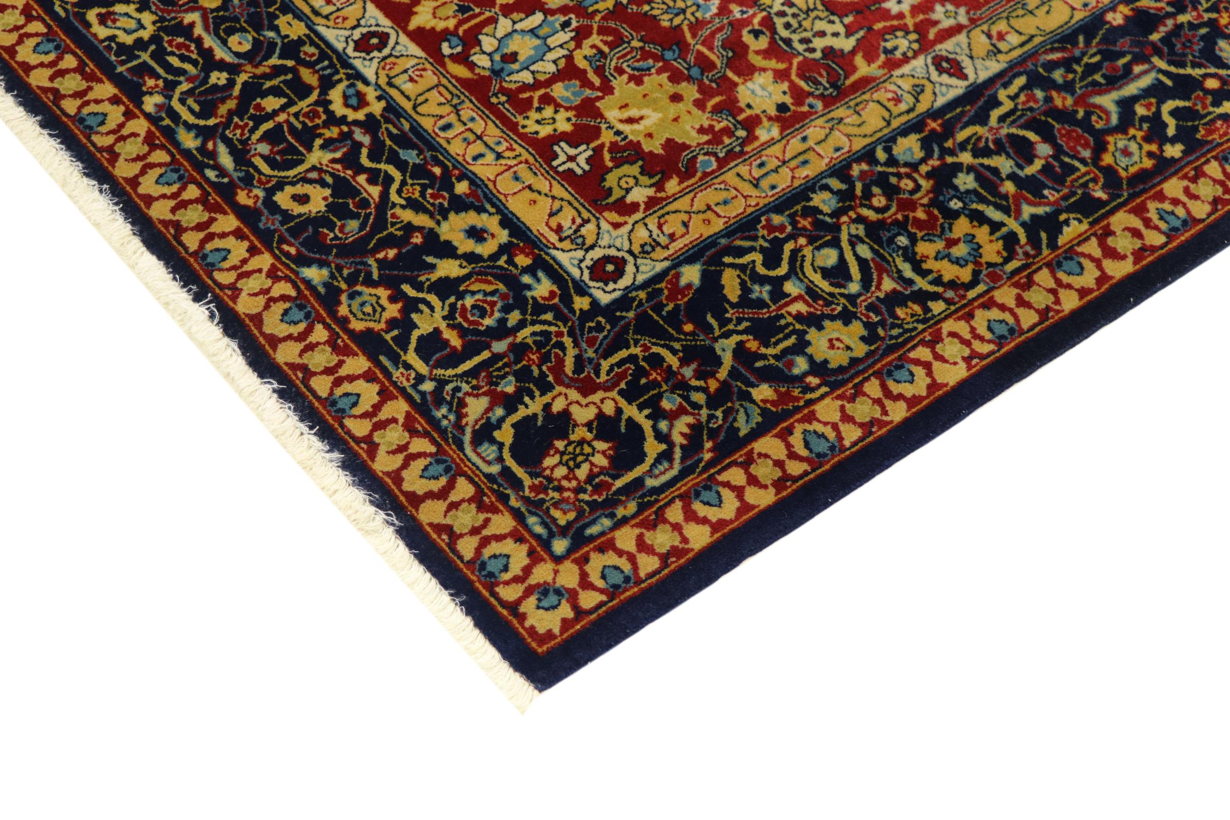 Esta alfombra china está hecha de seda y anudada a mano. Es capaz de cautivar a cualquier admirador con sus hermosos hilados y diseños. Ésta es una verdadera porción de China para su hogar.