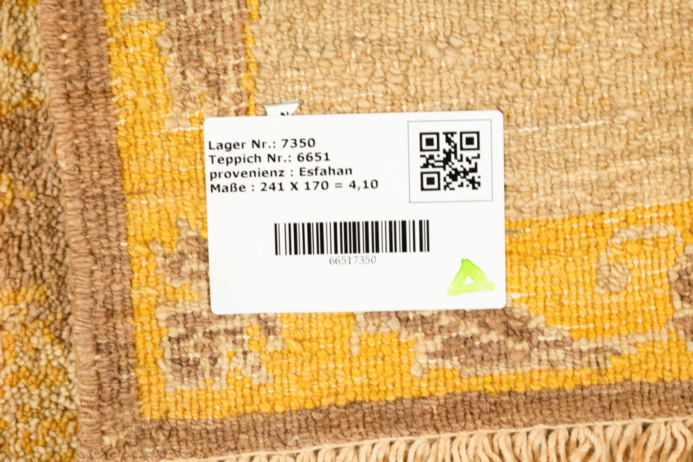 Alfombra número: 316701001109077 Tamaño: 242x169 cm Espesor: alrededor de 6 mm Nudos: 128 000 - 160 000 / m² Elaboración: Anudado a mano Crespón: Lana hilada a mano Urdimbre: Algodón Origen: Persia / Iran Edad: Nuevo Peso: alrededor de 12 kg Cantidad en stock: Única - Solo 1 en stock