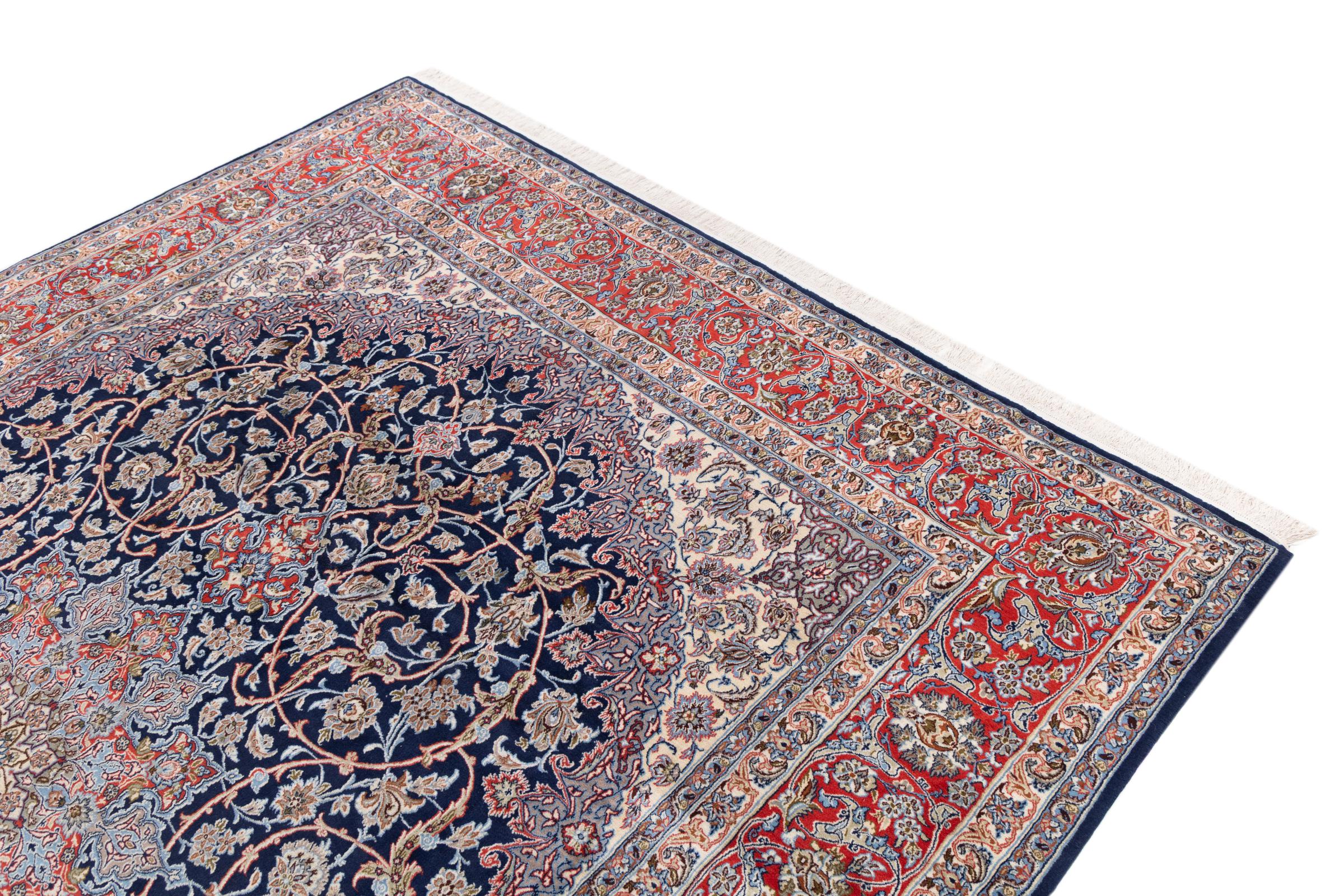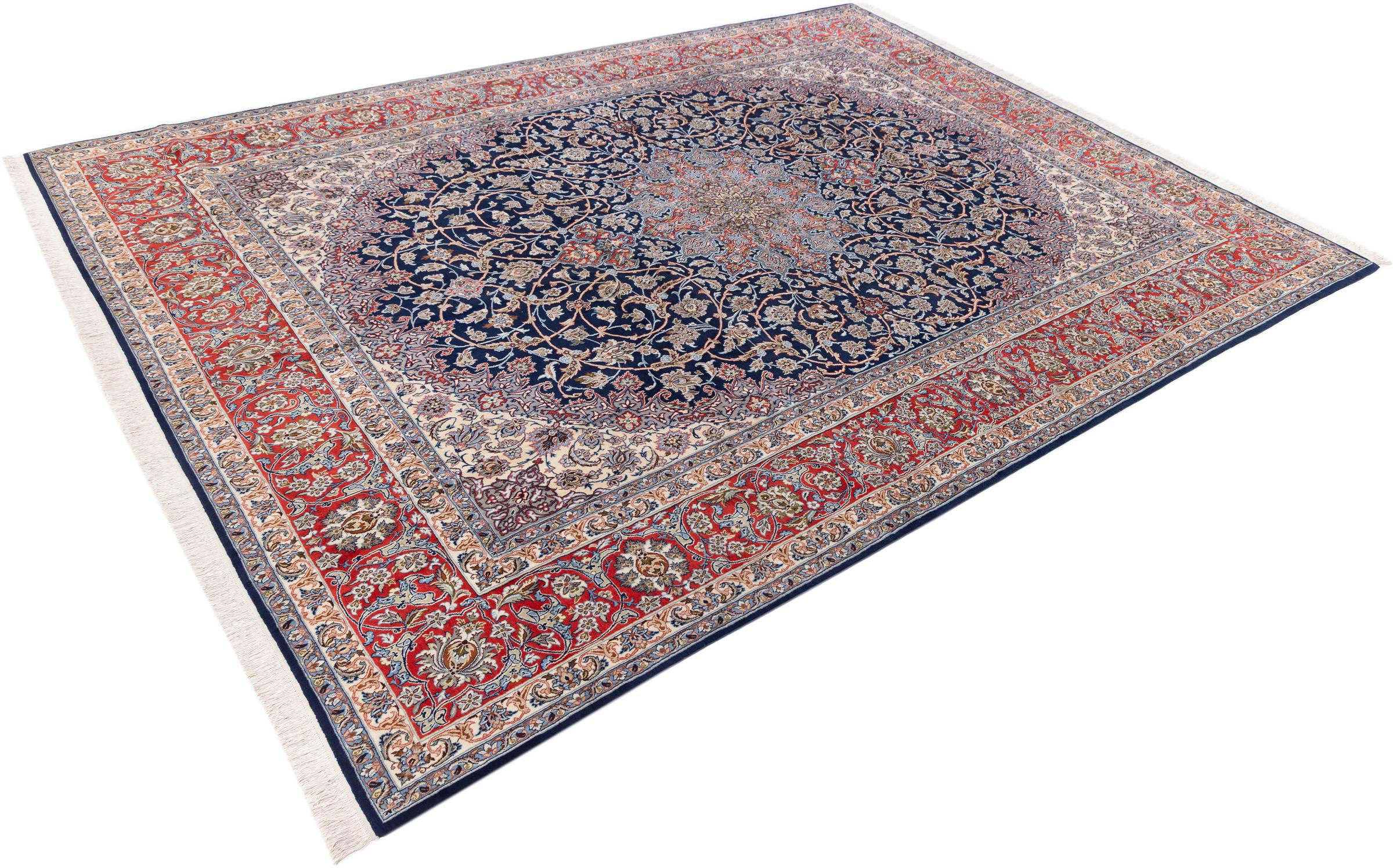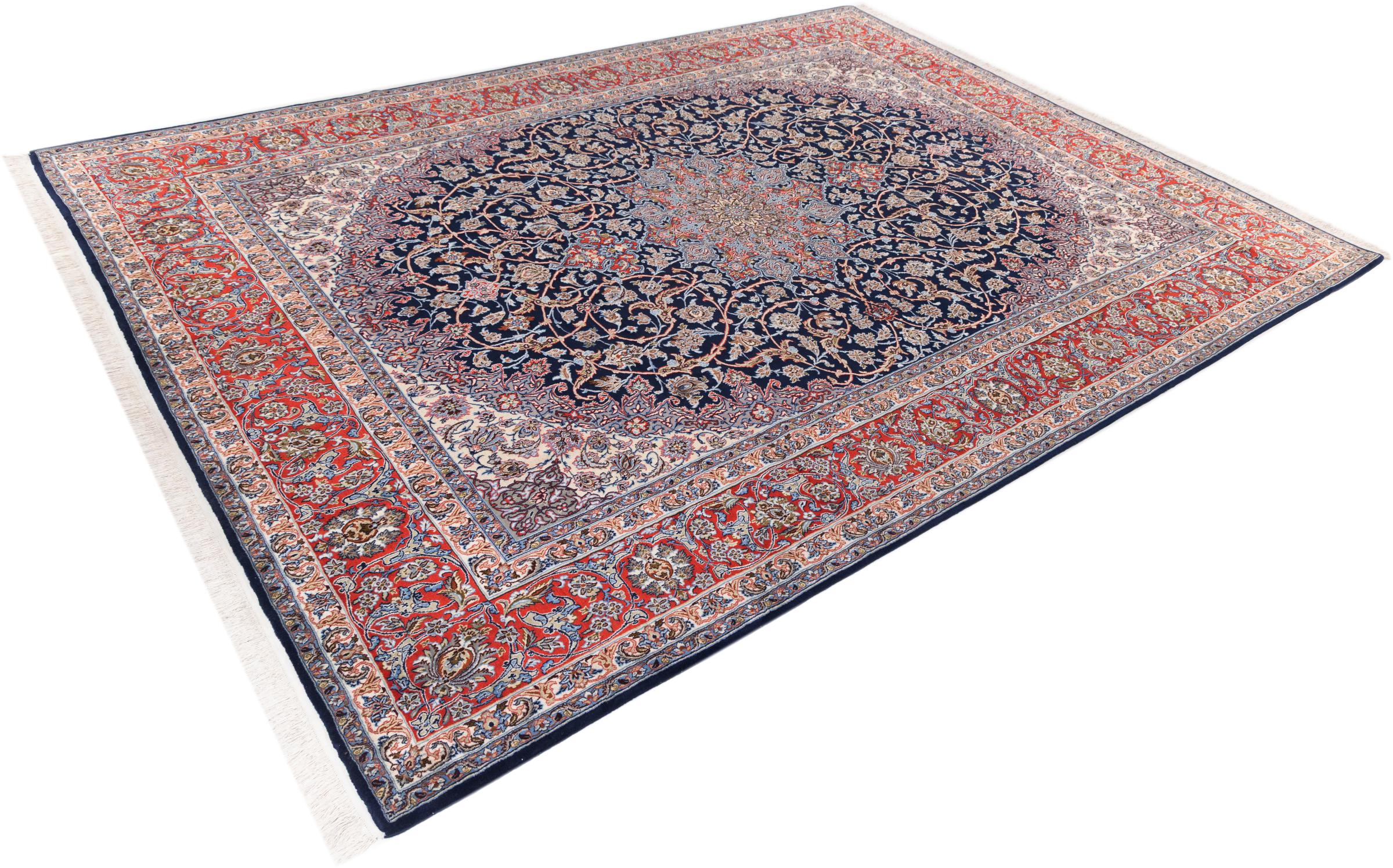 Esta alfombra de Ispahán está hecha con el arte del anudado más tradicional y elevado. Está magistralmente elaborada y decorada con fascinantes ornamentos. La alfombra persa fue anudada a mano en Isfahan, probablemente la ciudad más bella de Irán, a partir de los hilos más finos. Las alfombras de Isfahán se encuentran entre las persas más valiosas y pueden ser una verdadera inversión.