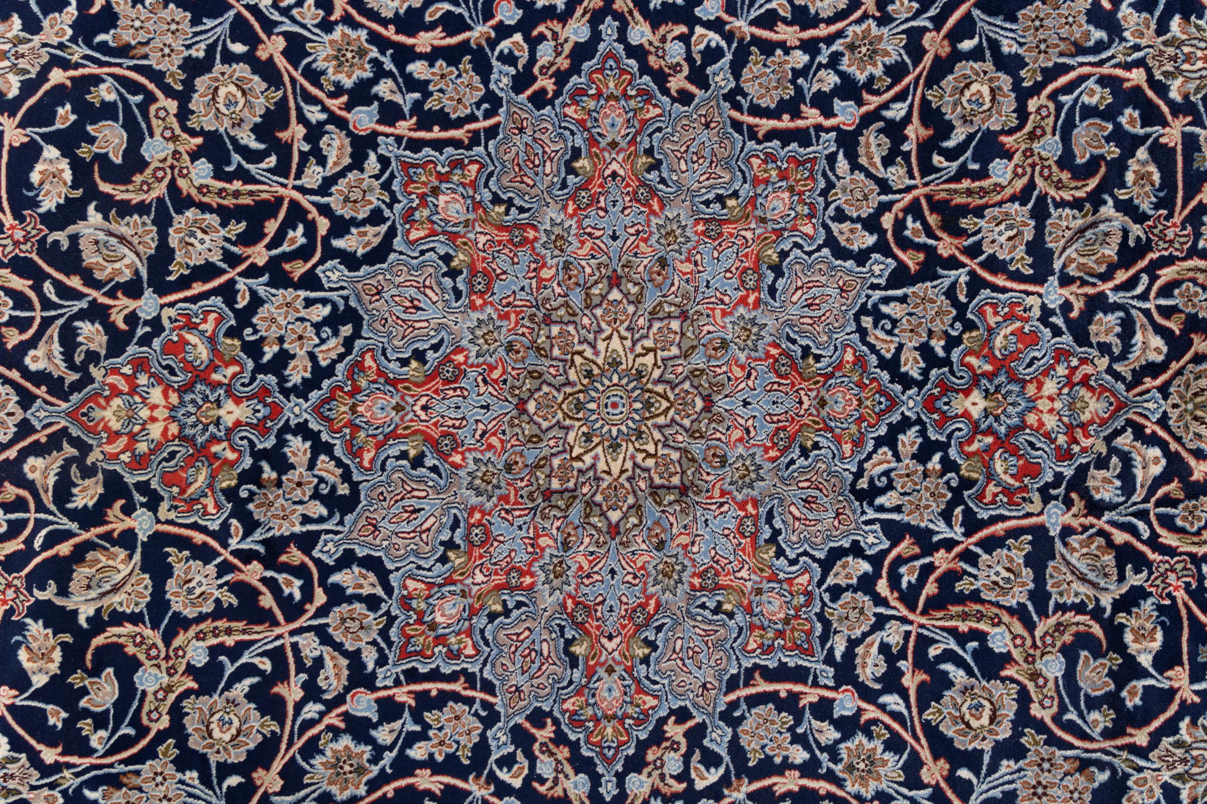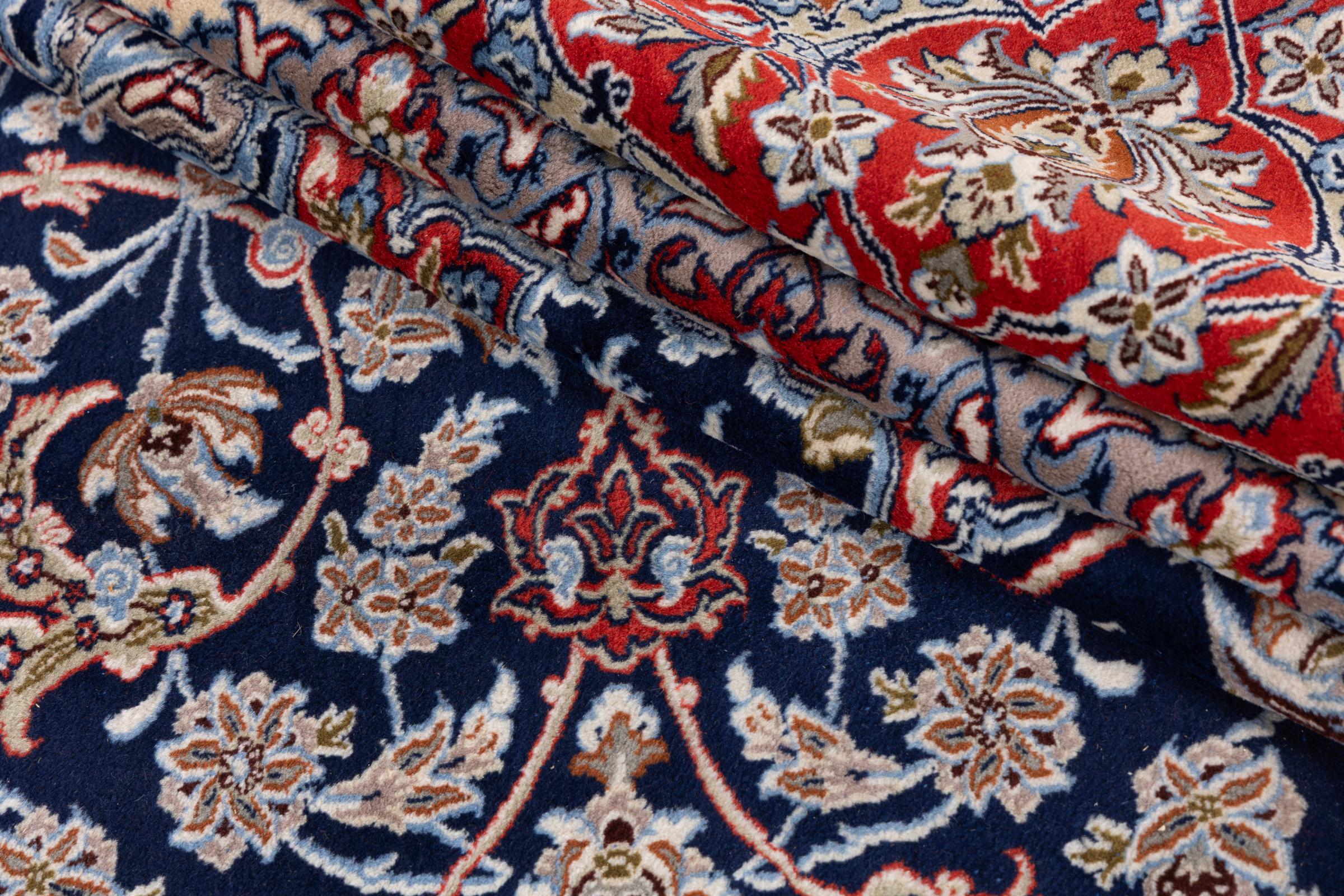 Las alfombras de esta ciudad pertenecen a las probablemente más valiosas alfombras persas anudadas a mano en todo el mundo. Las alfombras muy finas de Isfahán provienen de los estudios de maestros tejedores de fama mundial que logran una densidad de nudos de más de un millón de nudos por metro cuadrado. Poseer un Isfahan significa tener una alfombra persa de arte de anudar largo y alto. El diseño de estas alfombras se inspira en gran medida en las impresionantes mezquitas y plazas de la ciudad del mismo nombre.