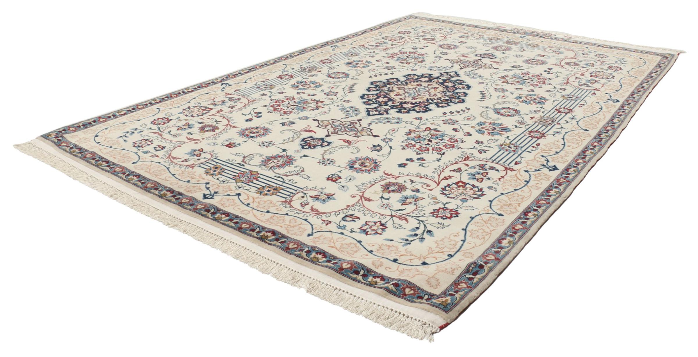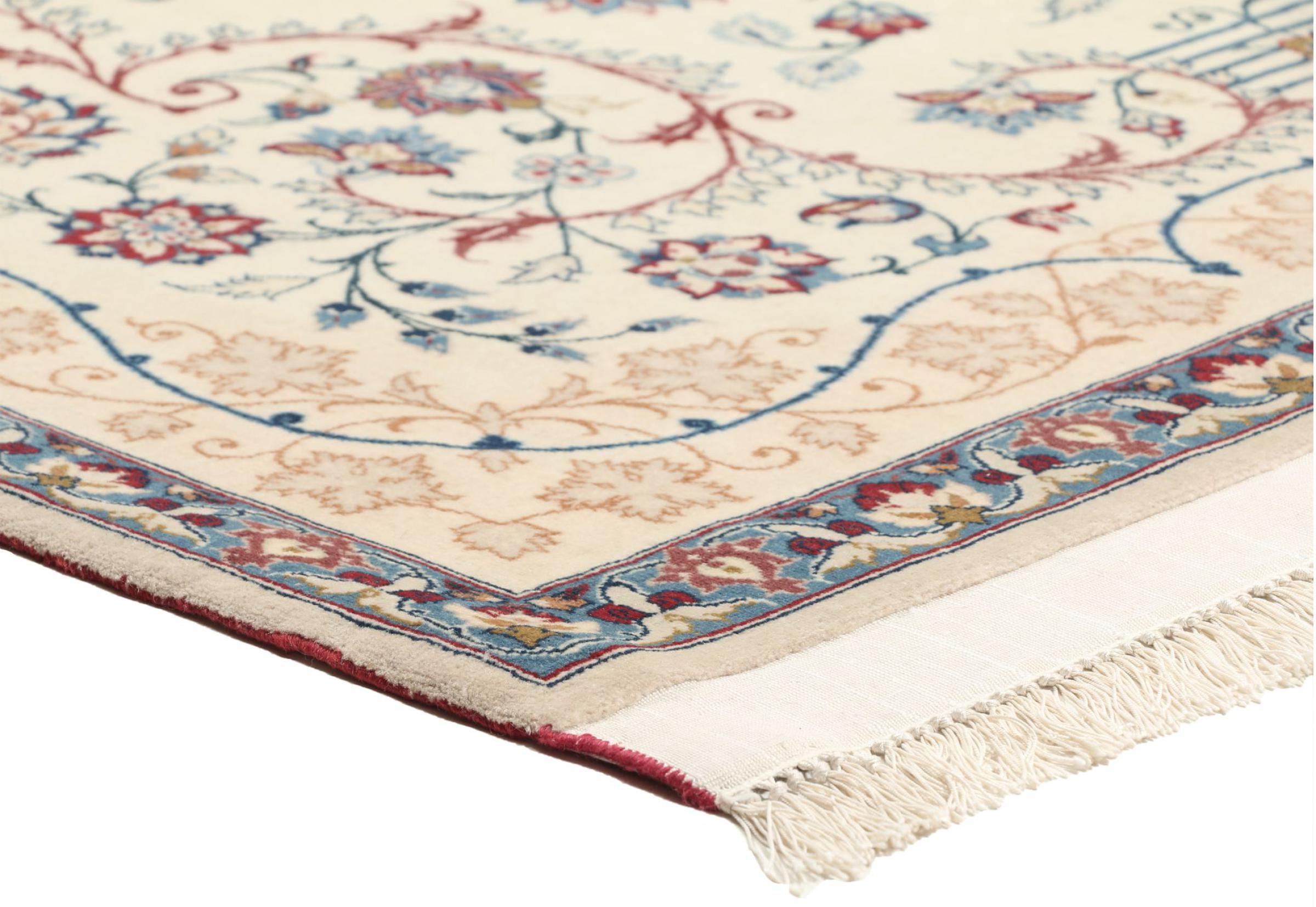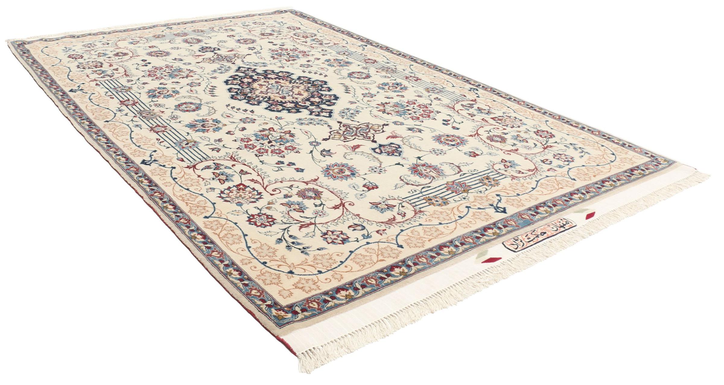 Esta alfombra de Ispahán está hecha con el arte del anudado más tradicional y elevado. Está magistralmente elaborada y decorada con fascinantes ornamentos. La alfombra persa fue anudada a mano en Isfahan, probablemente la ciudad más bella de Irán, a partir de los hilos más finos. Las alfombras de Isfahán se encuentran entre las persas más valiosas y pueden ser una verdadera inversión.