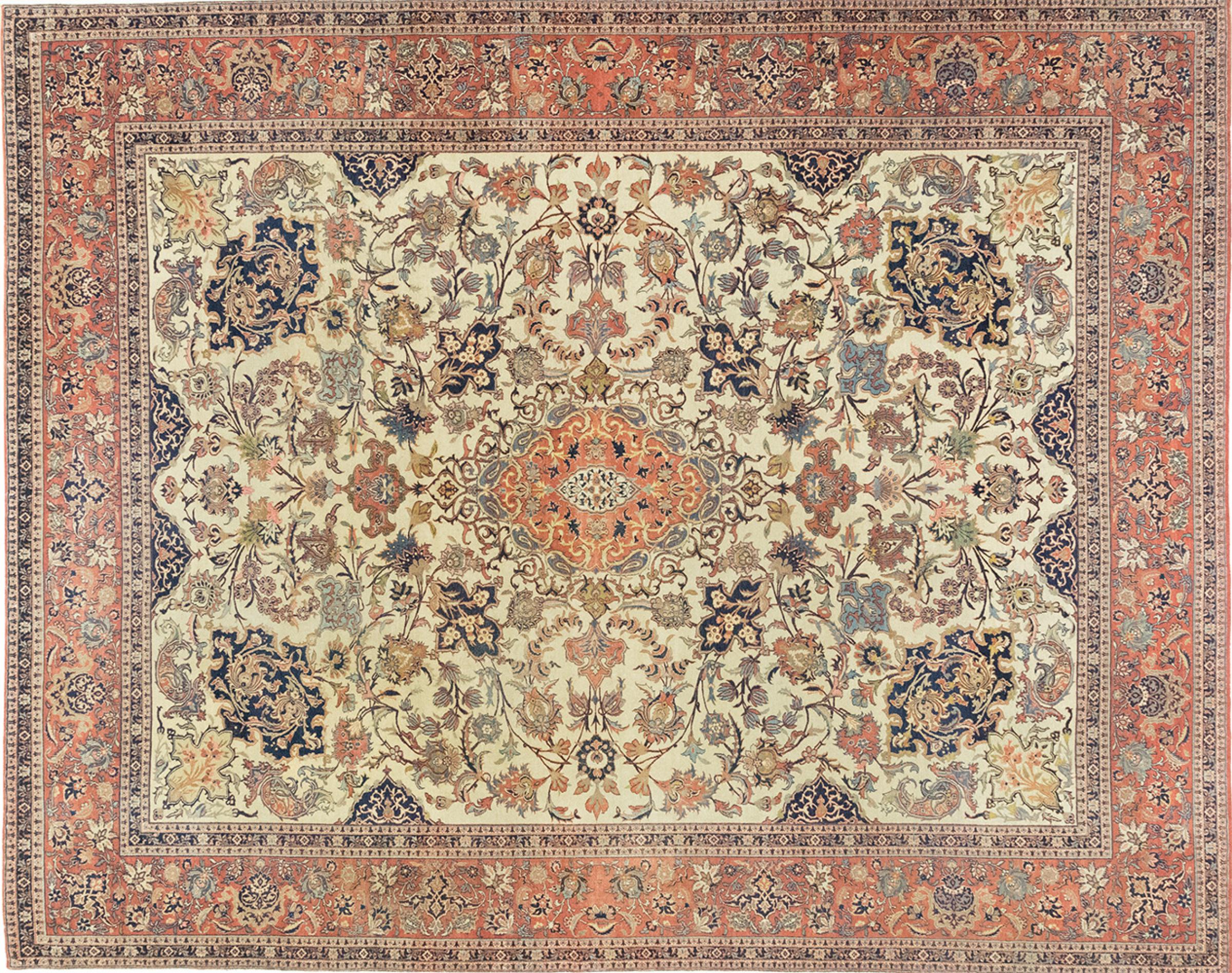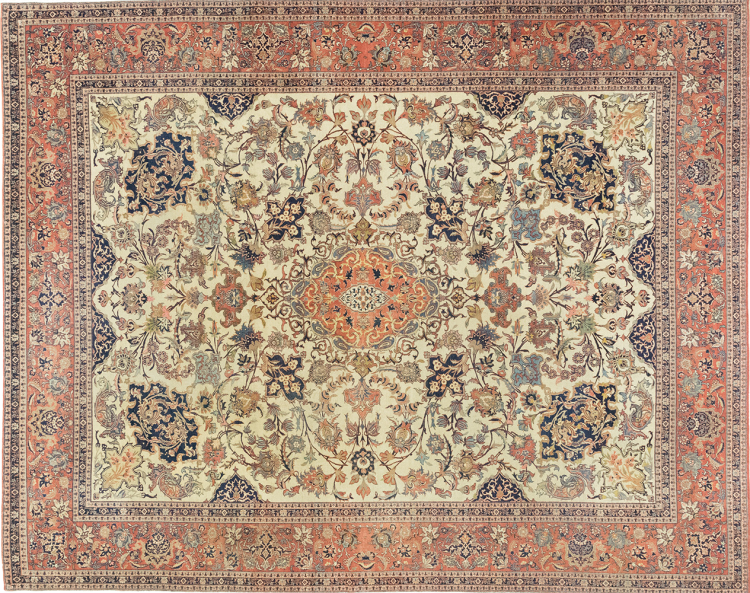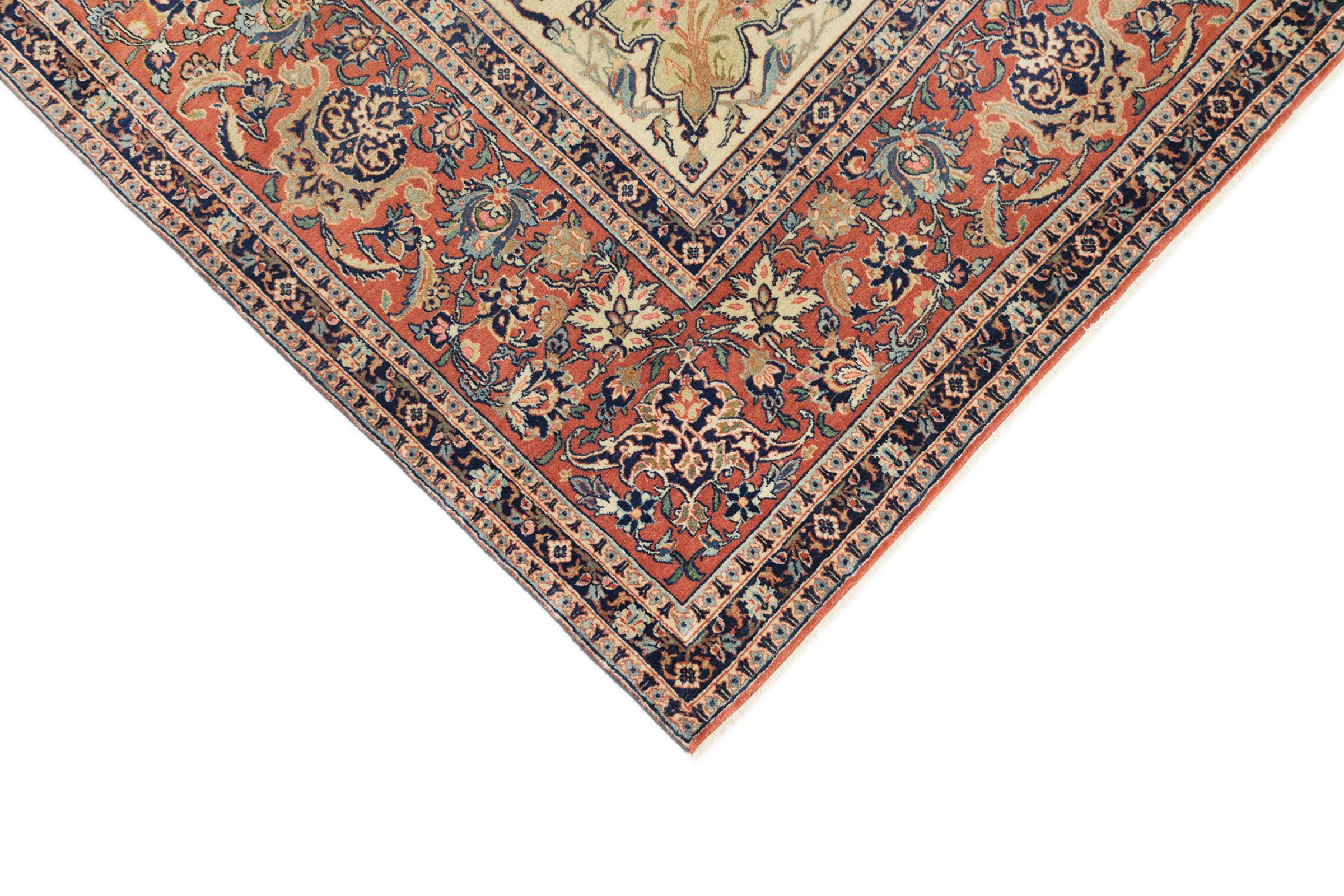 Alfombra número: 316626007984690 Tamaño: 391x313 cm Espesor: alrededor de 8 mm Nudos: 810 000 / m² Elaboración: Anudado a mano Crespón: Lana hilada a mano Urdimbre: Algodón Estado / Conservación Perfecta Origen: Persia / Iran Edad: Antigua, mayor de 80 años Peso: alrededor de 31 kg Cantidad en stock: Única - Solo 1 en stock