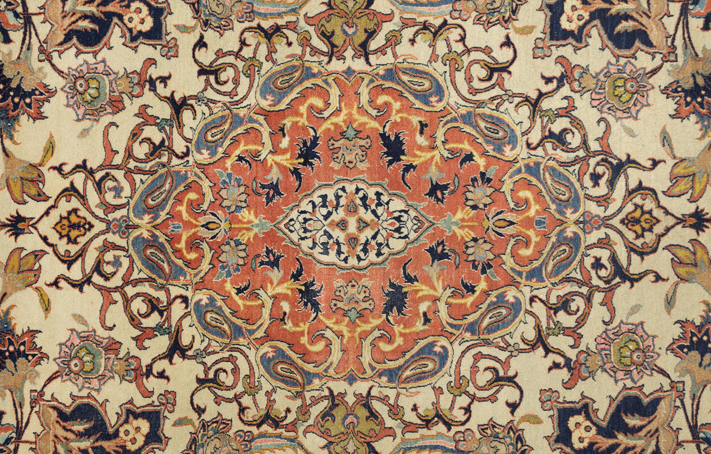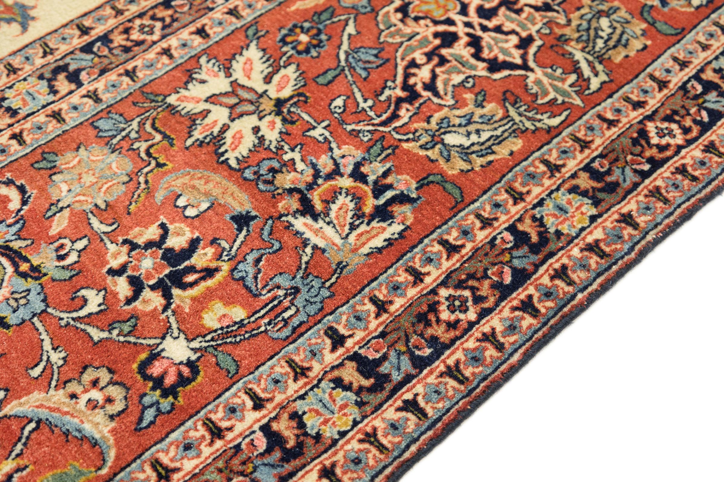 Esta alfombra de Ispahán está hecha con el arte del anudado más tradicional y elevado. Está magistralmente elaborada y decorada con fascinantes ornamentos. La alfombra persa fue anudada a mano en Isfahan, probablemente la ciudad más bella de Irán, a partir de los hilos más finos. Las alfombras de Isfahán se encuentran entre las persas más valiosas y pueden ser una verdadera inversión.