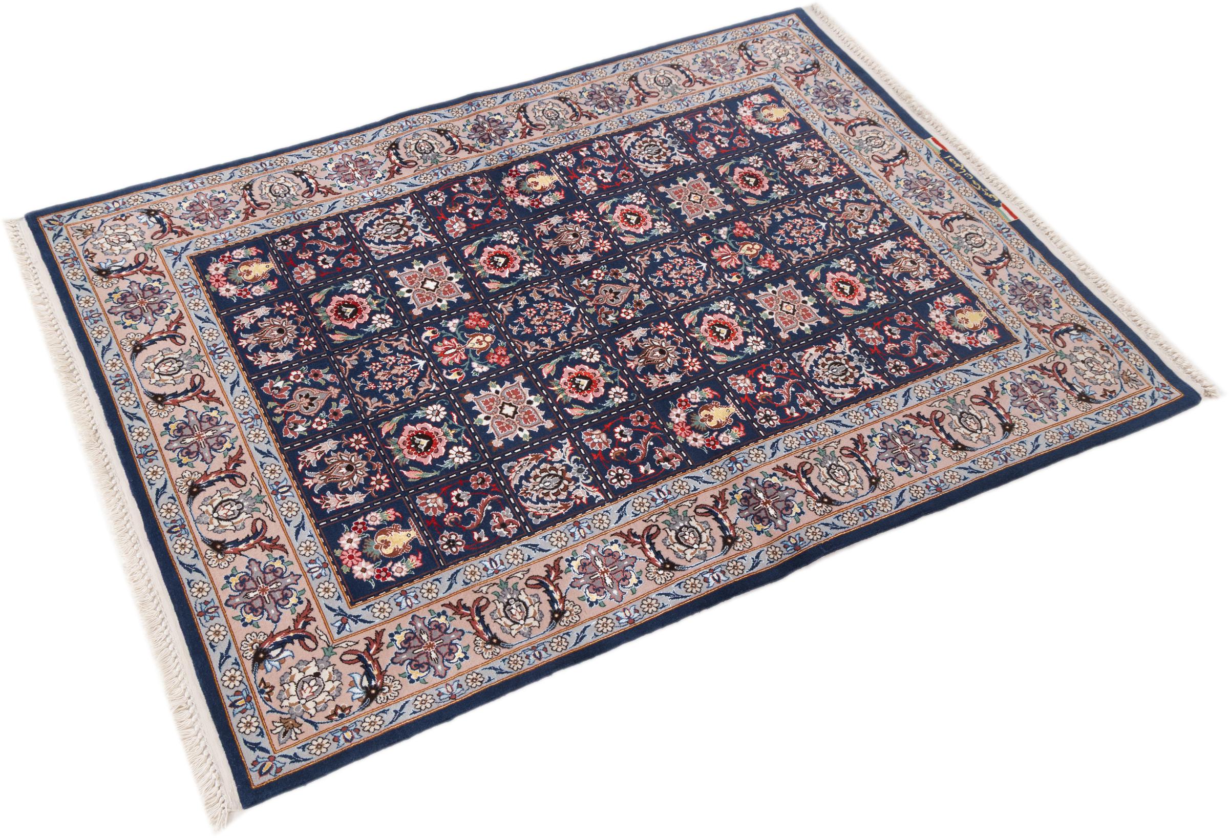Alfombra número: 298193004536 Tamaño: 145x103 cm Espesor: alrededor de 6 mm Nudos: 810 000 / m² Elaboración: Anudado a mano Crespón: Lana con seda Urdimbre: Seda Origen: Persia / Iran Edad: Nuevo Peso: alrededor de 4 kg Cantidad en stock: Única - Solo 1 en stock