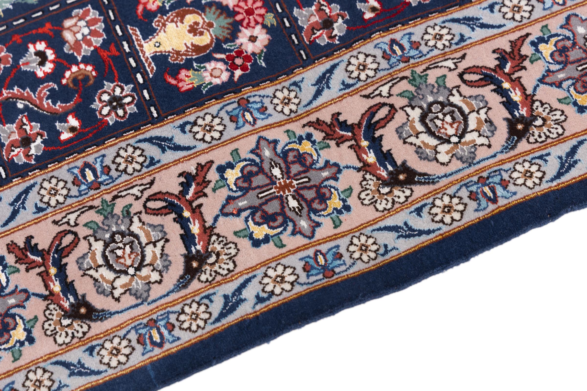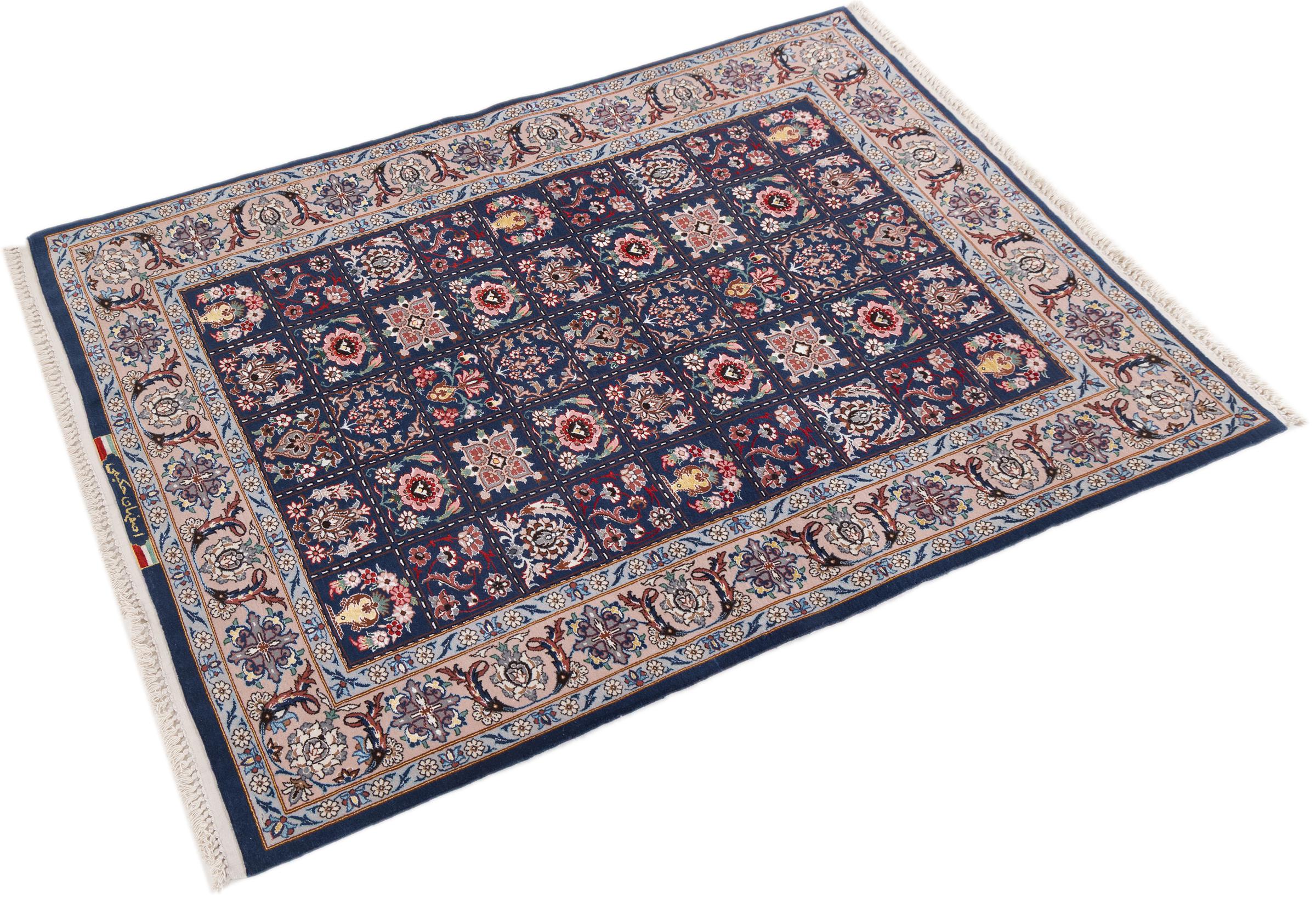 Esta alfombra de Ispahán está hecha con el arte del anudado más tradicional y elevado. Está magistralmente elaborada y decorada con fascinantes ornamentos. La alfombra persa fue anudada a mano en Isfahan, probablemente la ciudad más bella de Irán, a partir de los hilos más finos. Las alfombras de Isfahán se encuentran entre las persas más valiosas y pueden ser una verdadera inversión.