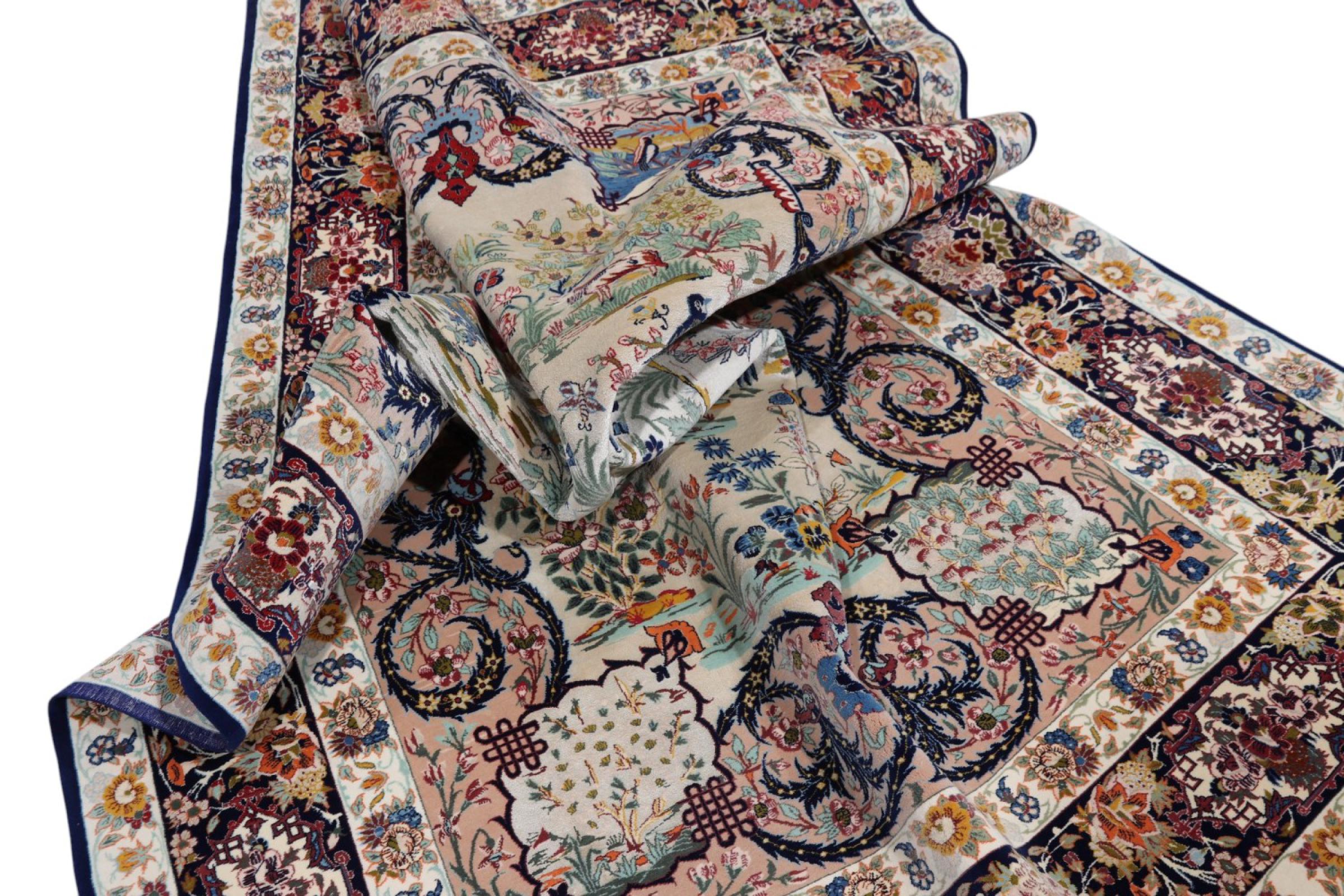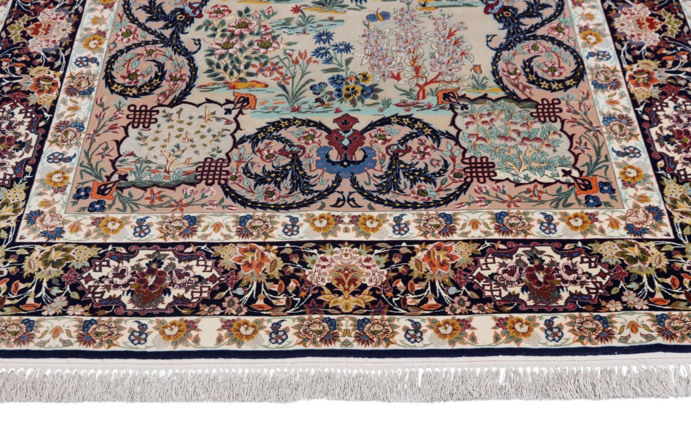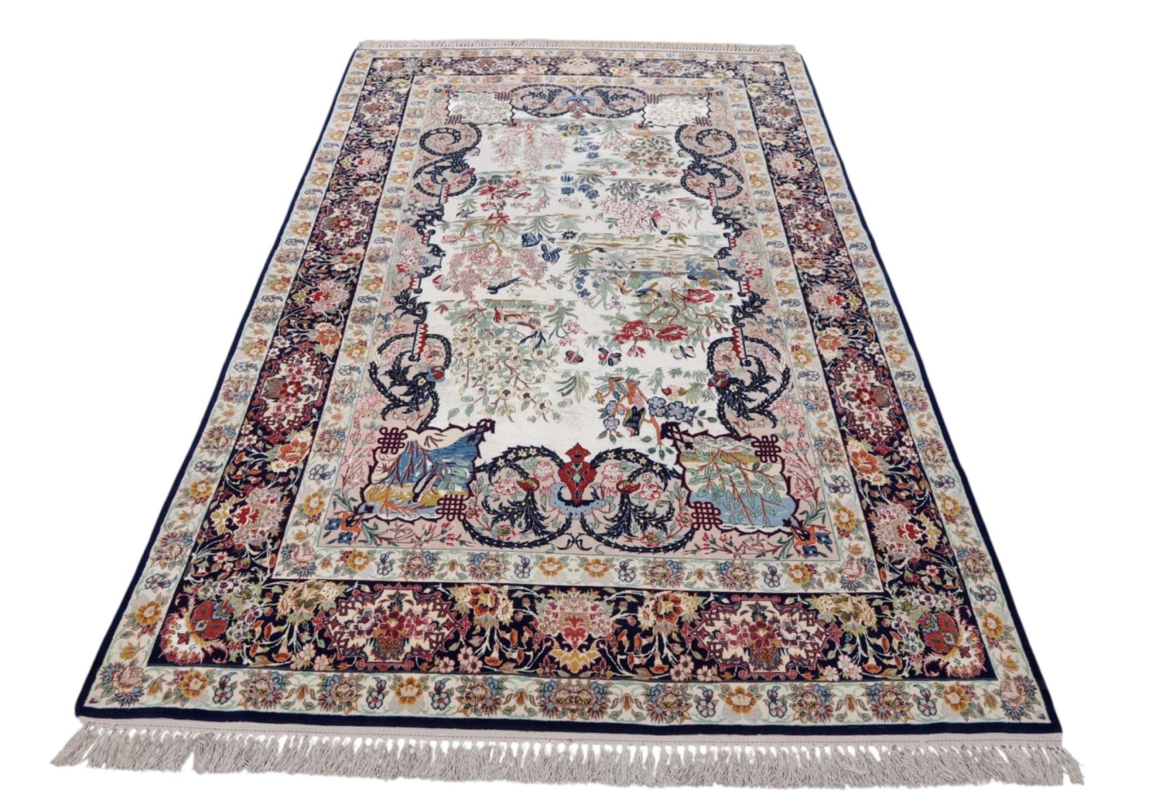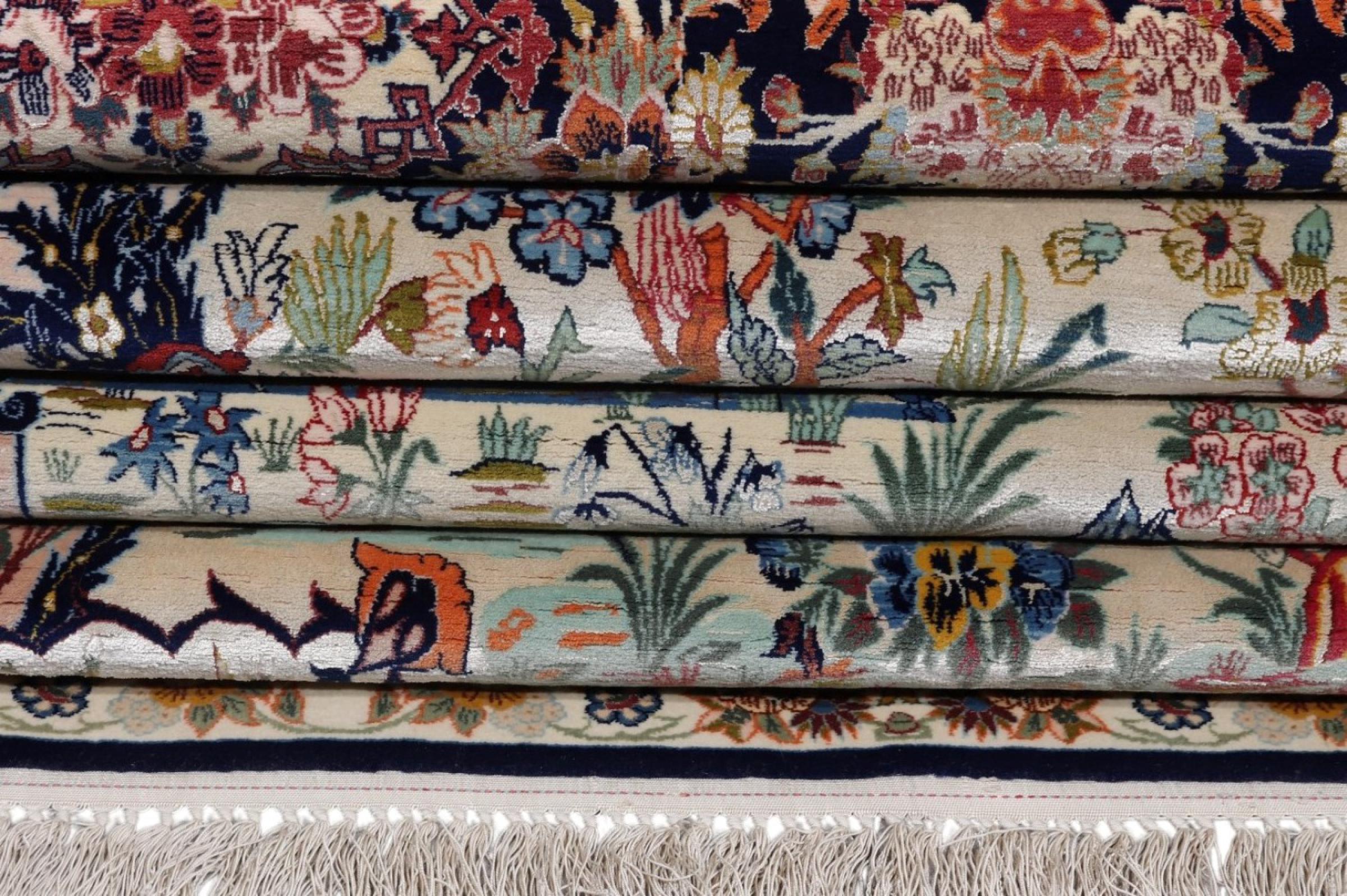Alfombra número: 278621007157317 Tamaño: 241x151 cm Espesor: alrededor de 5 mm Nudos: 750 000 / m² Elaboración: Anudado a mano Crespón: Lana con seda Urdimbre: Seda Origen: Persia / Iran Edad: Nuevo Peso: alrededor de 13 kg Cantidad en stock: Única - Solo 1 en stock